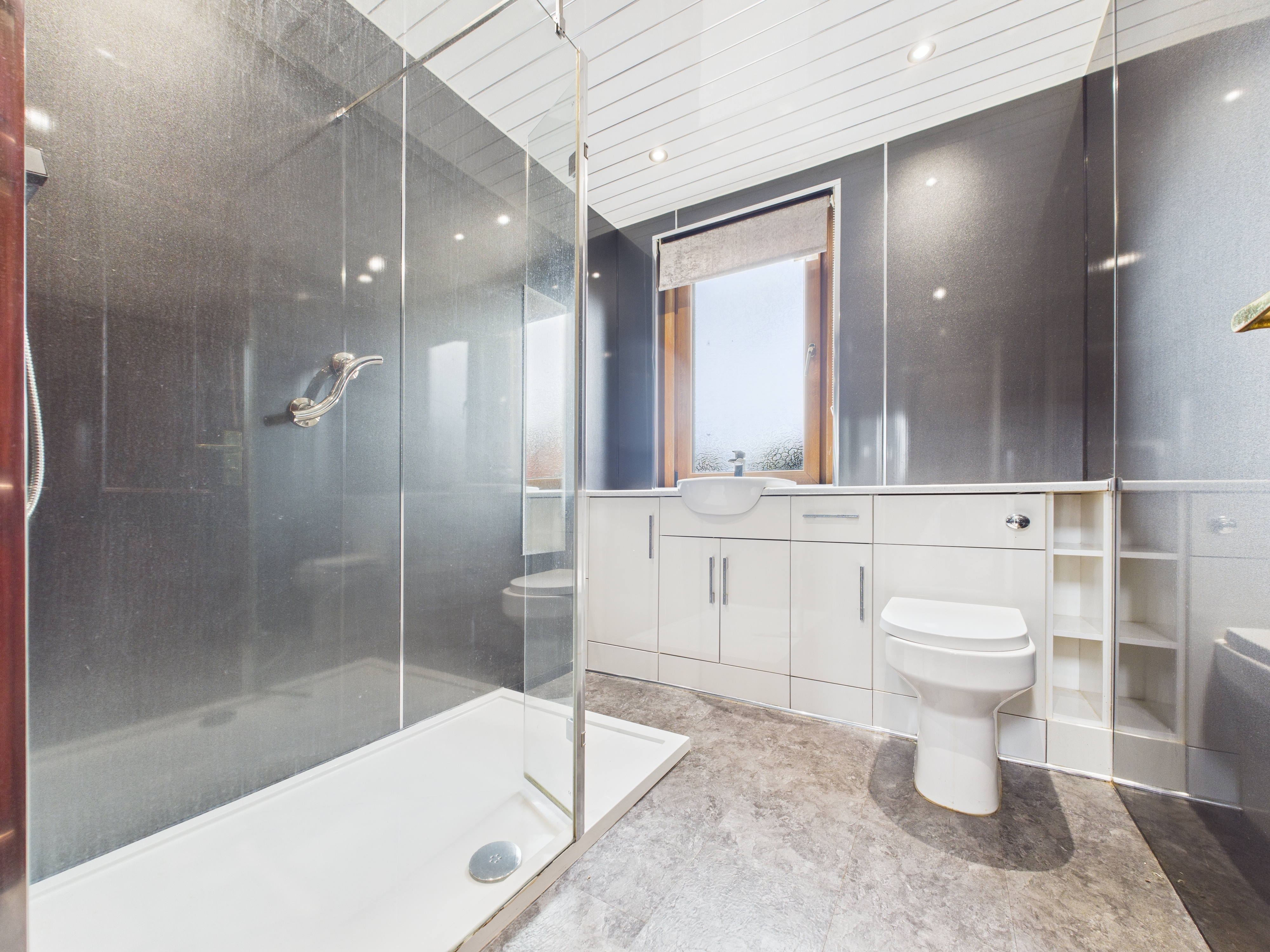 Deceptively spacious, three bedroom mid-terrace villa situated in a popular location within the rural village of Forth, nestled in the South Lanarkshire countryside. The property offers flexible living accommodation arranged over two floors with the ground floor comprising; spacious entrance hallway, well-proportioned lounge and good size dining kitchen which has been recently re-modelled with a stylish range of base and wall mounted units and a rear vestibule which provides access to the back garden. The ground floor is completed by a large shower room which has again been modernised with a suite comprising, W.C and wash hand basin set within a vanity unit and large walk-in shower cubicle with mixer shower. On the first floor there are three generously proportioned bedrooms.