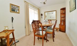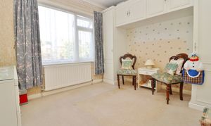 The good size master bedroom has a window to the front and fitted wardrobes along one wall. Bedroom two also faces the front and has fitted wardrobes and cupboards, whilst the third bedroom (which is currently being used as dining room), has a window facing the front porch.