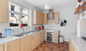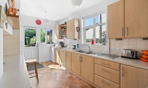 Continuing through the property, the well-appointed kitchen is located to the rear, offering a delightful space for culinary enthusiasts. Fitted with modern storage cabinets and ample worktop space, the kitchen provides functionality without compromising on style. The addition of a conservatory offers a tranquil retreat to enjoy the beauty of the garden throughout the changing seasons. The first-floor comprises three well-proportioned bedrooms, two of which feature integrated storage space for added convenience. The shower room provides a walk-in shower, WC, and basin with drawer storage beneath.