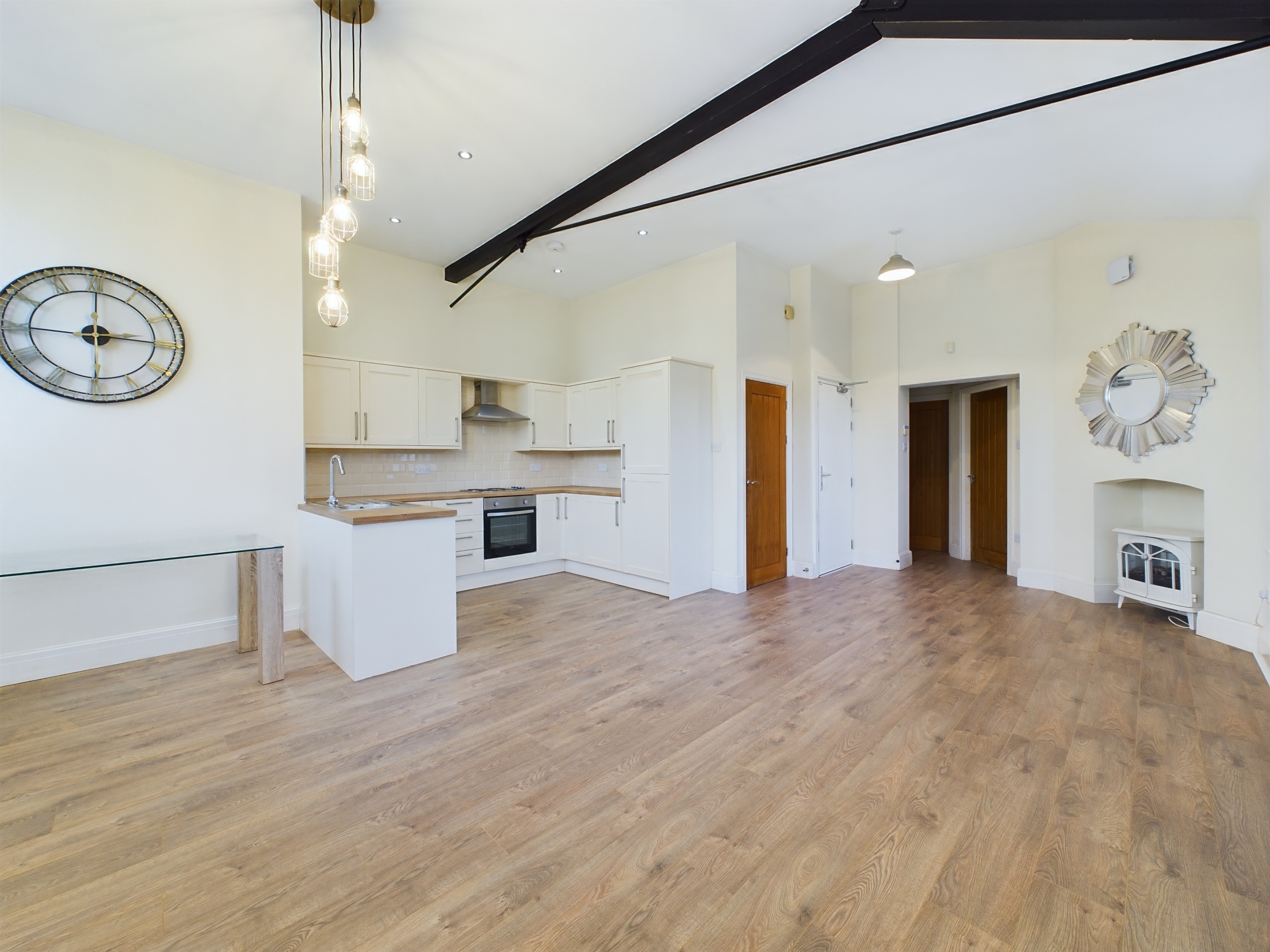 Nestled in the heart of the highly sought-after LOWER GREEN area, this traditional, TWO BEDROOM first-floor APARTMENT offers a charming blend of elegance and modern convenience. Boasting a PICTURESQUE VIEW overlooking the serene canal, this beautiful residence is a true gem. Step inside to discover a large, light-filled LOUNGE that invites relaxation and entertaining. The modern FITTED KITCHEN/BREAKFAST AREA, complete with integrated appliances, is ideal for preparing meals, while the separate UTILITY ROOM adds practicality to this impressive space. TWO spacious DOUBLE BEDROOMS are complemented by a contemporary FAMILY SHOWER ROOM. The apartment has been enhanced with new flooring and fresh decor throughout. QUIRKY FEATURES such as large windows and high beams ADD CHARACTER and UNIQUNESS to this stunning property.