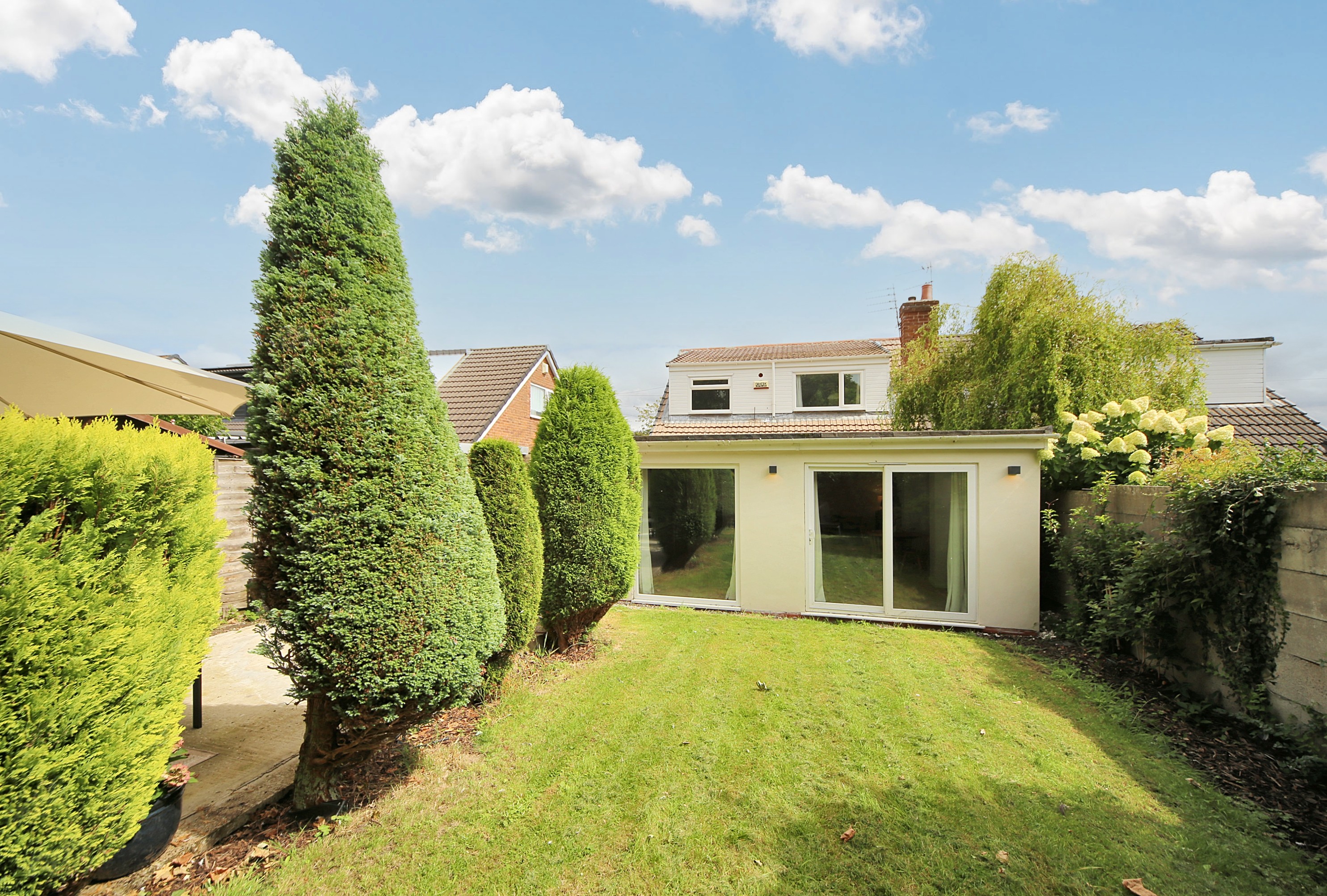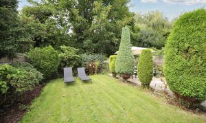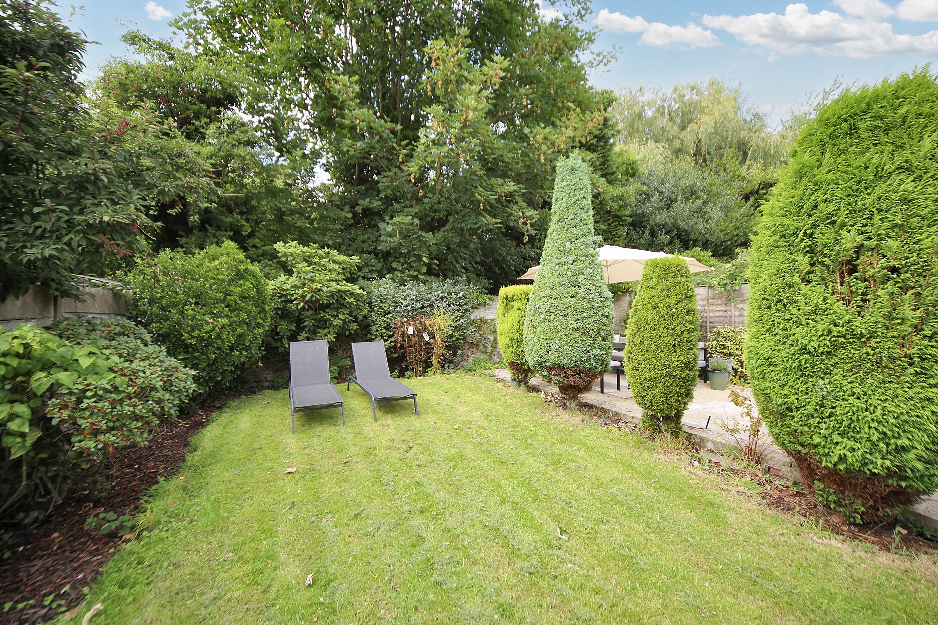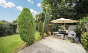 The front of the property is complemented by a neat garden and a long driveway offering ample off-street parking. To the rear, the fully enclosed back garden is a wonderful outdoor retreat with a well-maintained lawn, bordered by mature plants and featuring dedicated seating areas, perfect for alfresco dining, relaxing, or family playtime.
