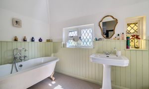 There are two staircases leading to the first floor from the snug or the study, where three double bedrooms and a further single bedroom can be found. A dressing room adjoins the principal bedroom, providing additional storage or a potential nursery space and a family bathroom serves the upstairs rooms.