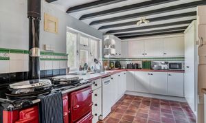 The house offers an abundance of original features, including exposed beams and a welcoming inglenook fireplace with woodburning stove, whilst also providing the practicality of modern family living.
