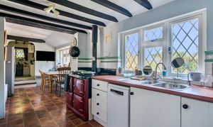 - Kitchen with Rayburn, conventional oven, space for fridge / freezer and breakfast table