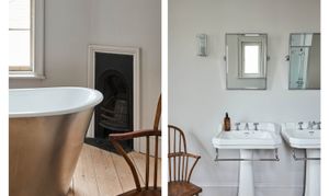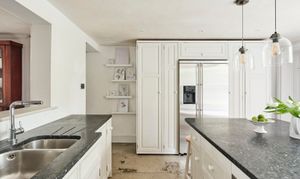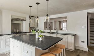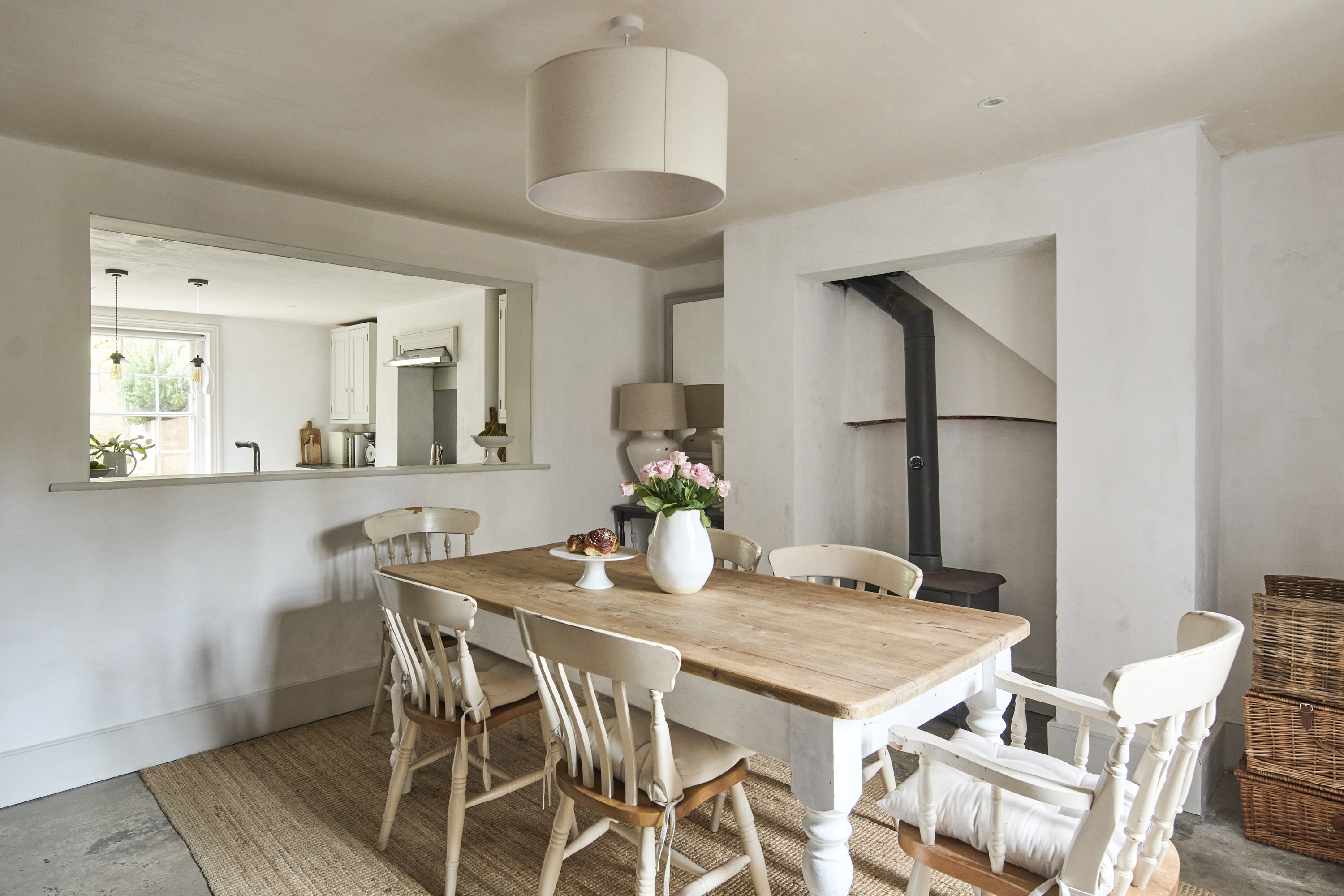 Inside, the current owners have sympathetically revealed the structure's soul rather than reinvented it, preserving and restoring many original features. Every surface tells a story — the worn flagstones, gently lime-waxed floorboards, and the fanlight above the front door that has witnessed nearly two centuries of comings and goings. The tone is gentle and luminous. It's wabi-sabi with impeccable manners.