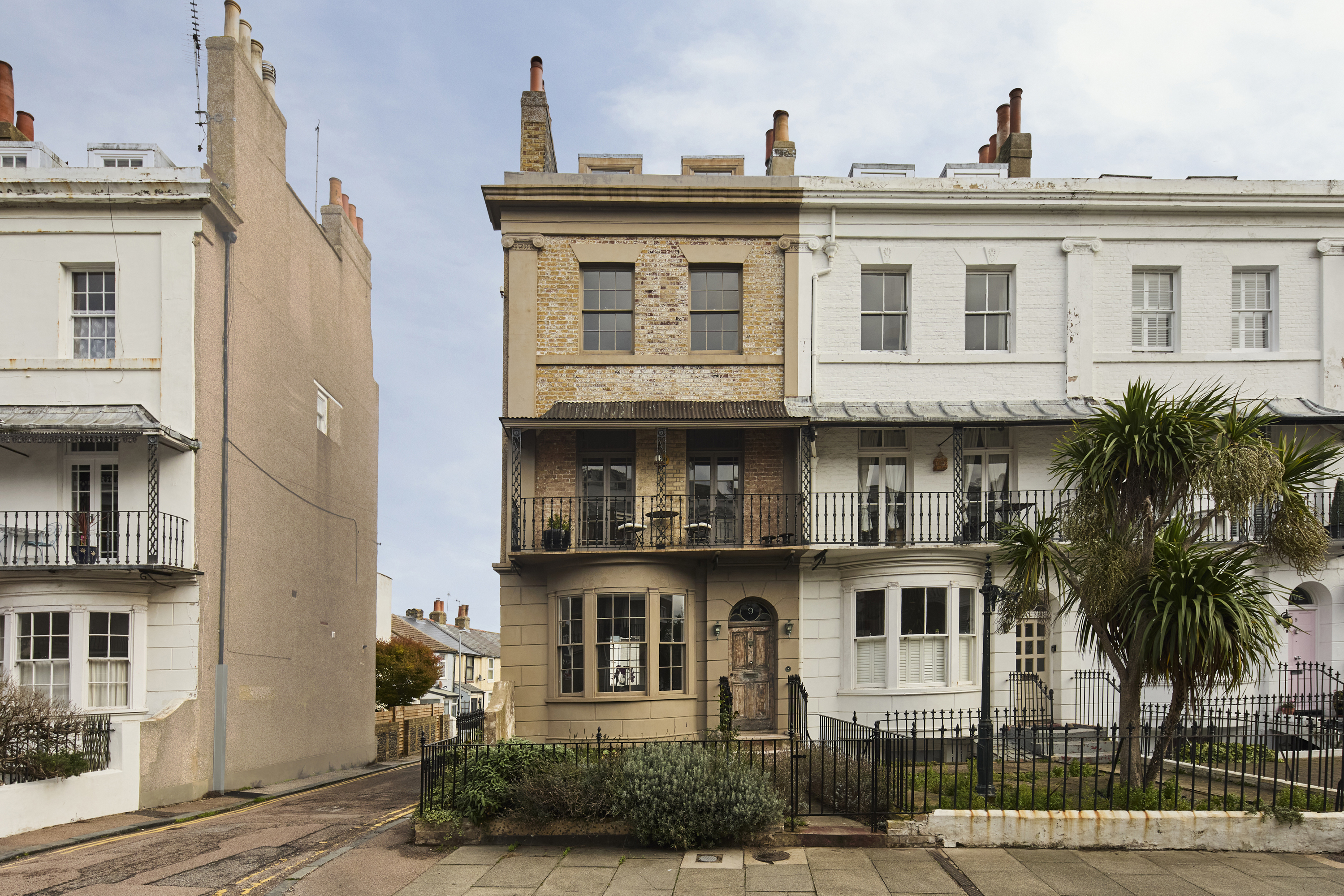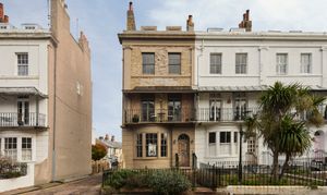 This venerable six-bedroom, four-reception-room Regency house in Ramsgate was designed by the pioneering female architect Mary Townley, and it clearly reflects her vision. The building, set over five storeys, proudly wears its Ionic influences: pillars, capitals, and pediments embellish the terrace, while stucco details trace the lower floors with understated grandeur.