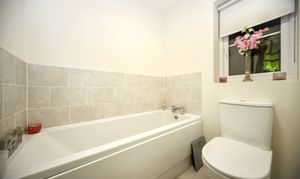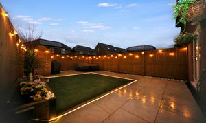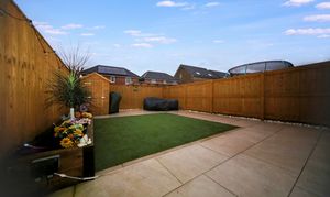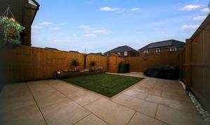 - Newly landscaped garden with porcelain tiles and artificial lawn