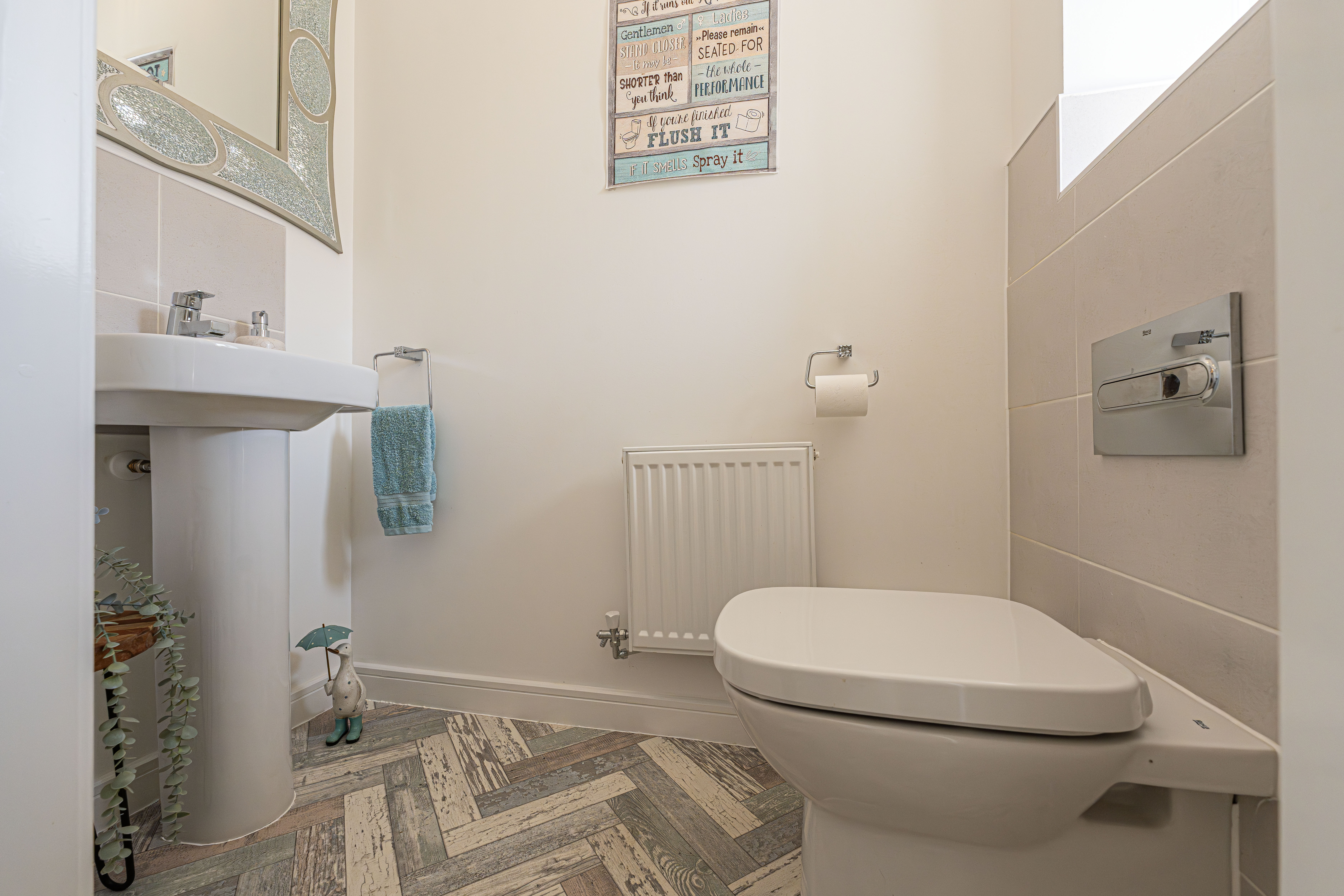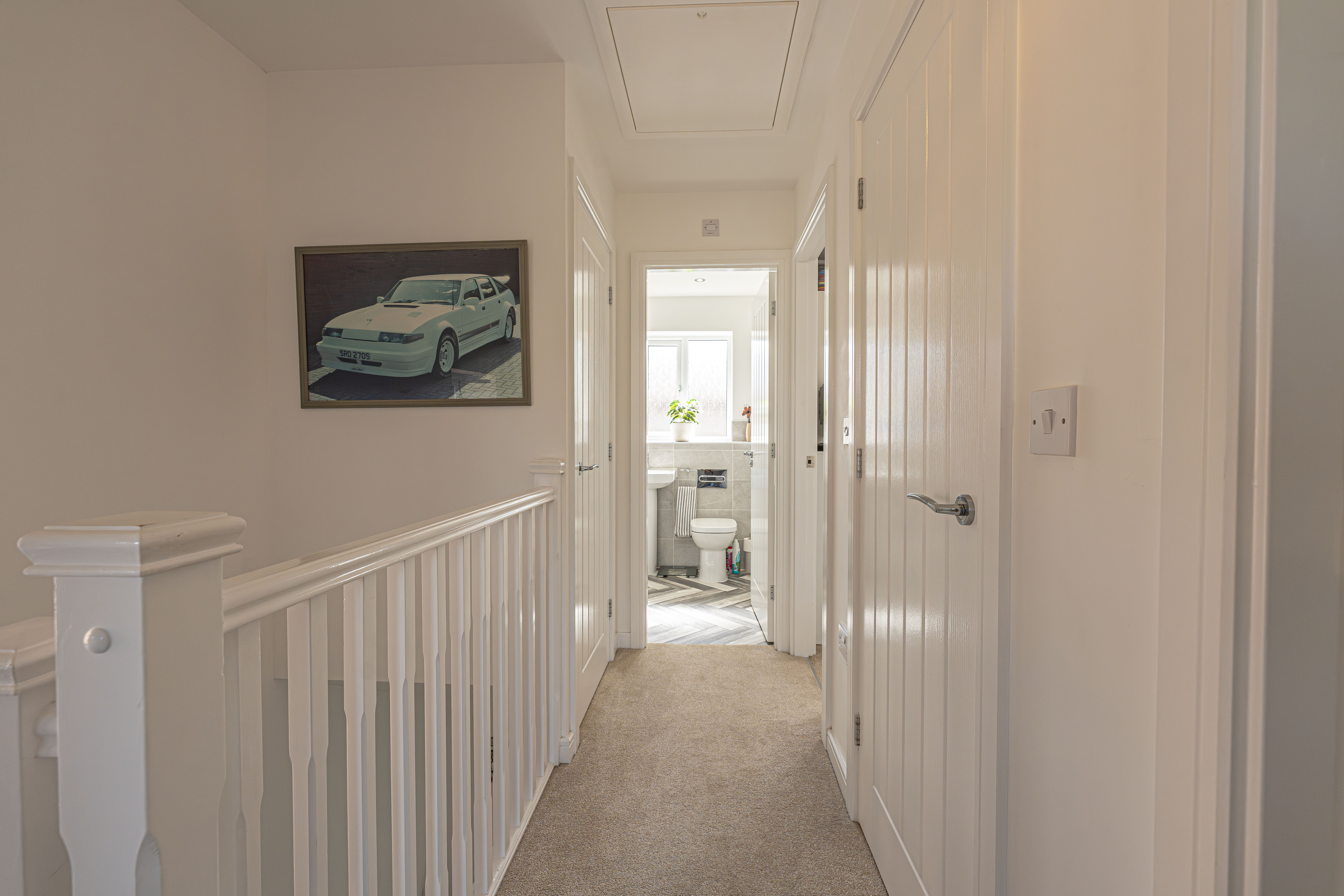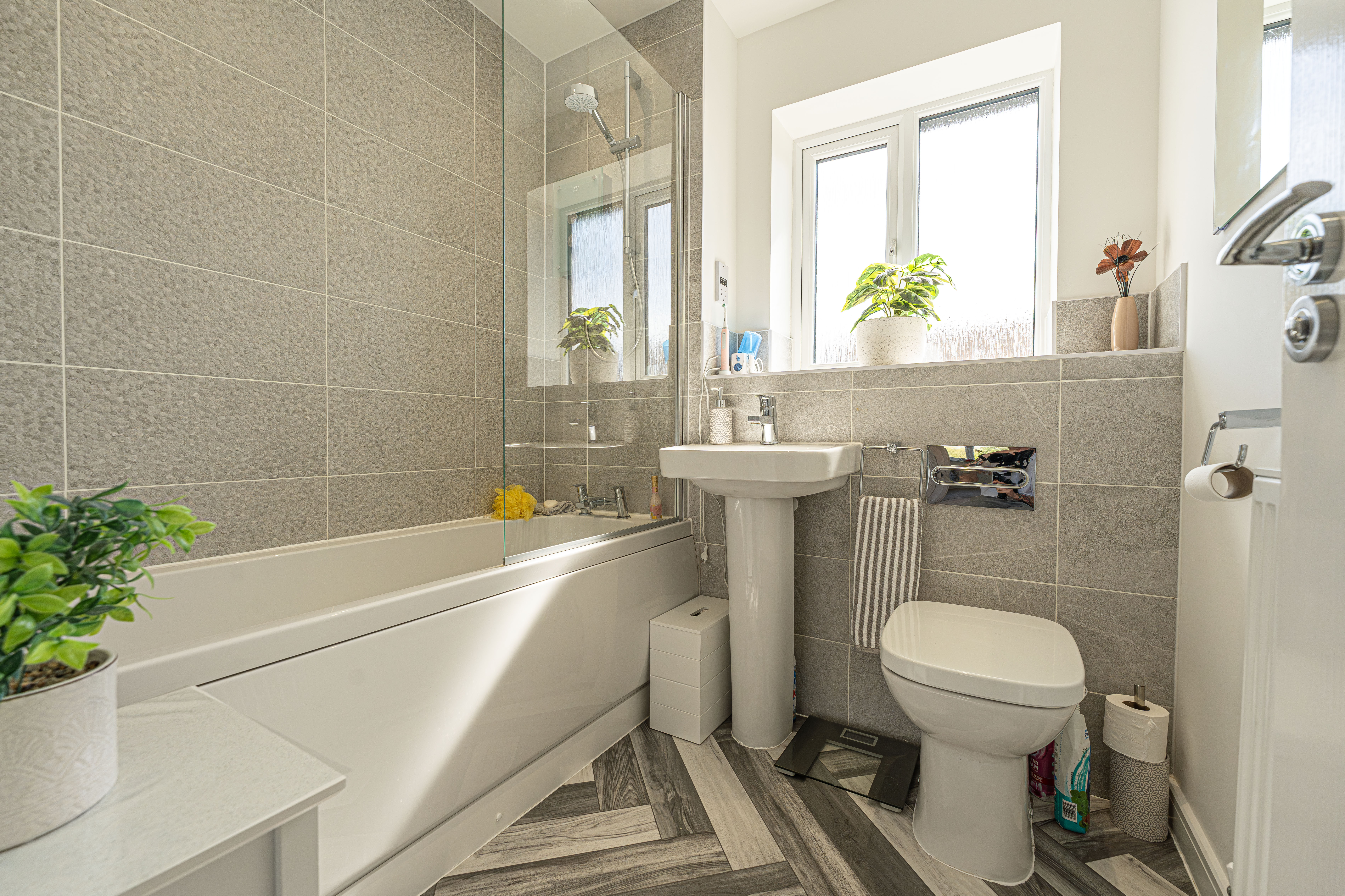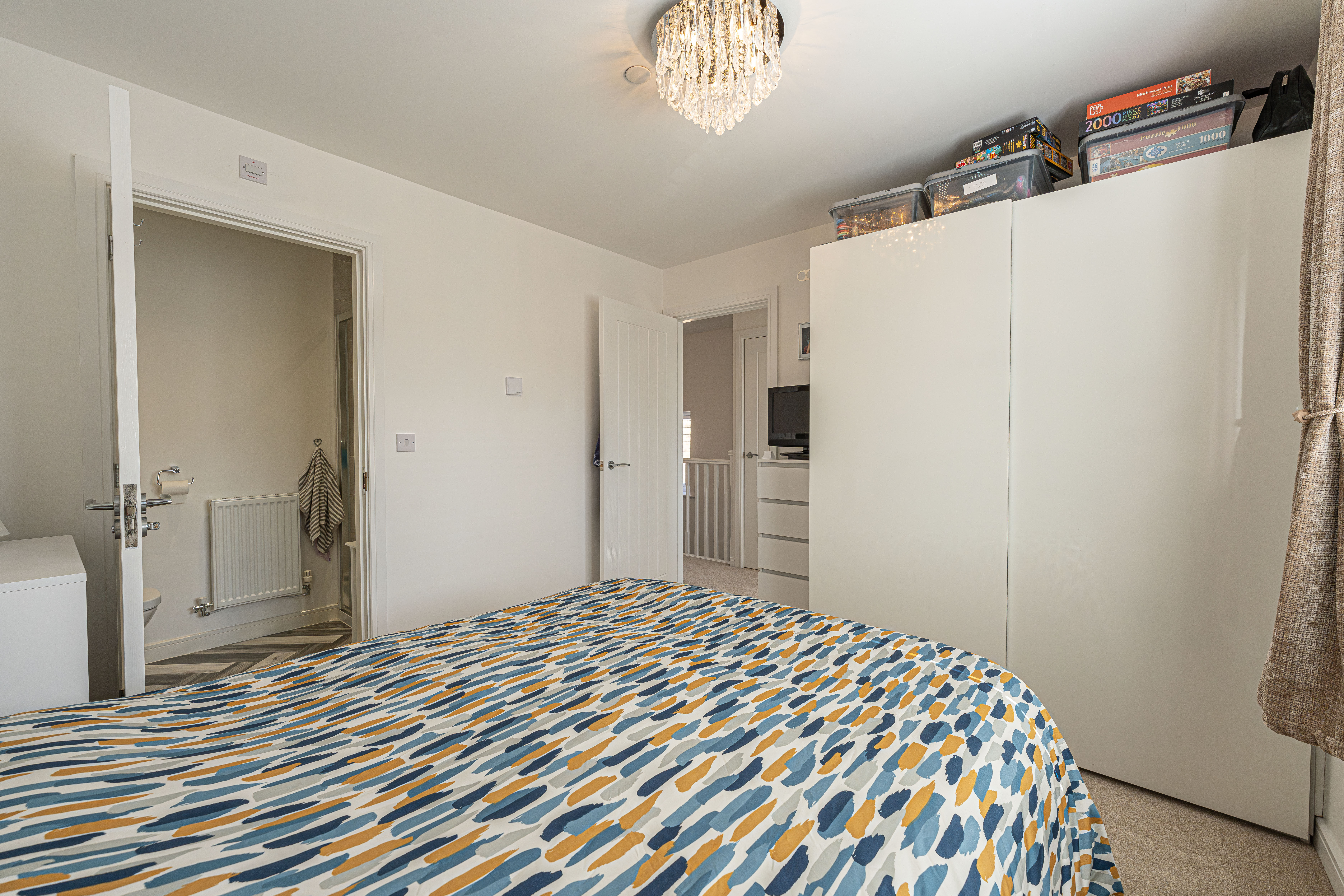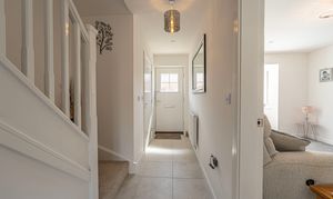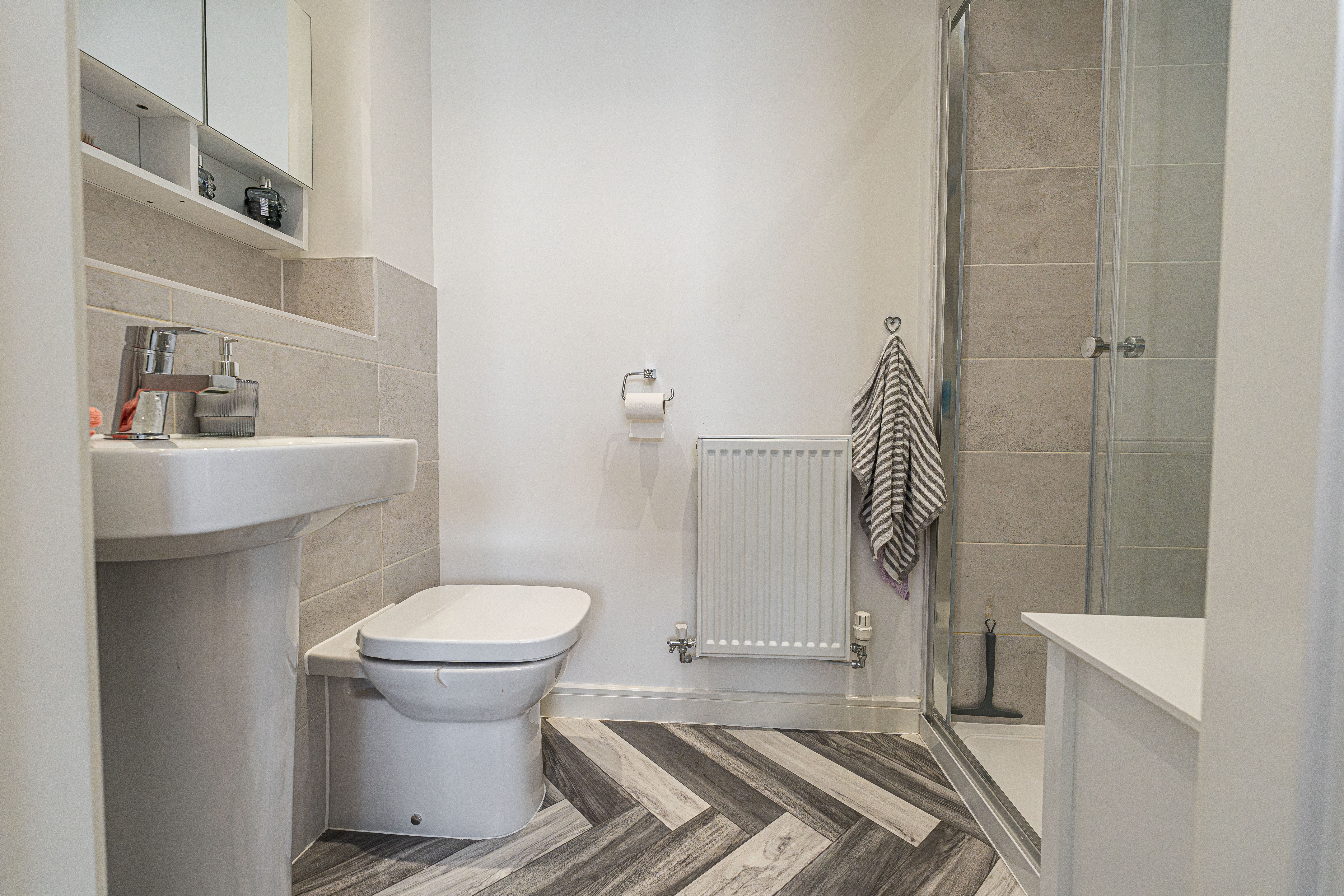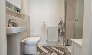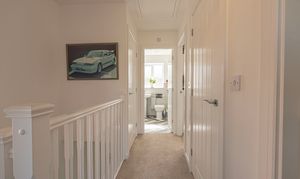 To the first floor we have three bedrooms - two of which are double in size while the third is a comfortable single room, which presents great potential for repurpose into a home office, dressing room or nursery. The primary bedroom has the added benefit of a private en-suite shower room, whilst the stylish family bathroom is found just outside with a toilet, bath suite and overhead shower. From the landing we can also find two fitted cupboards for added storage and airing space.