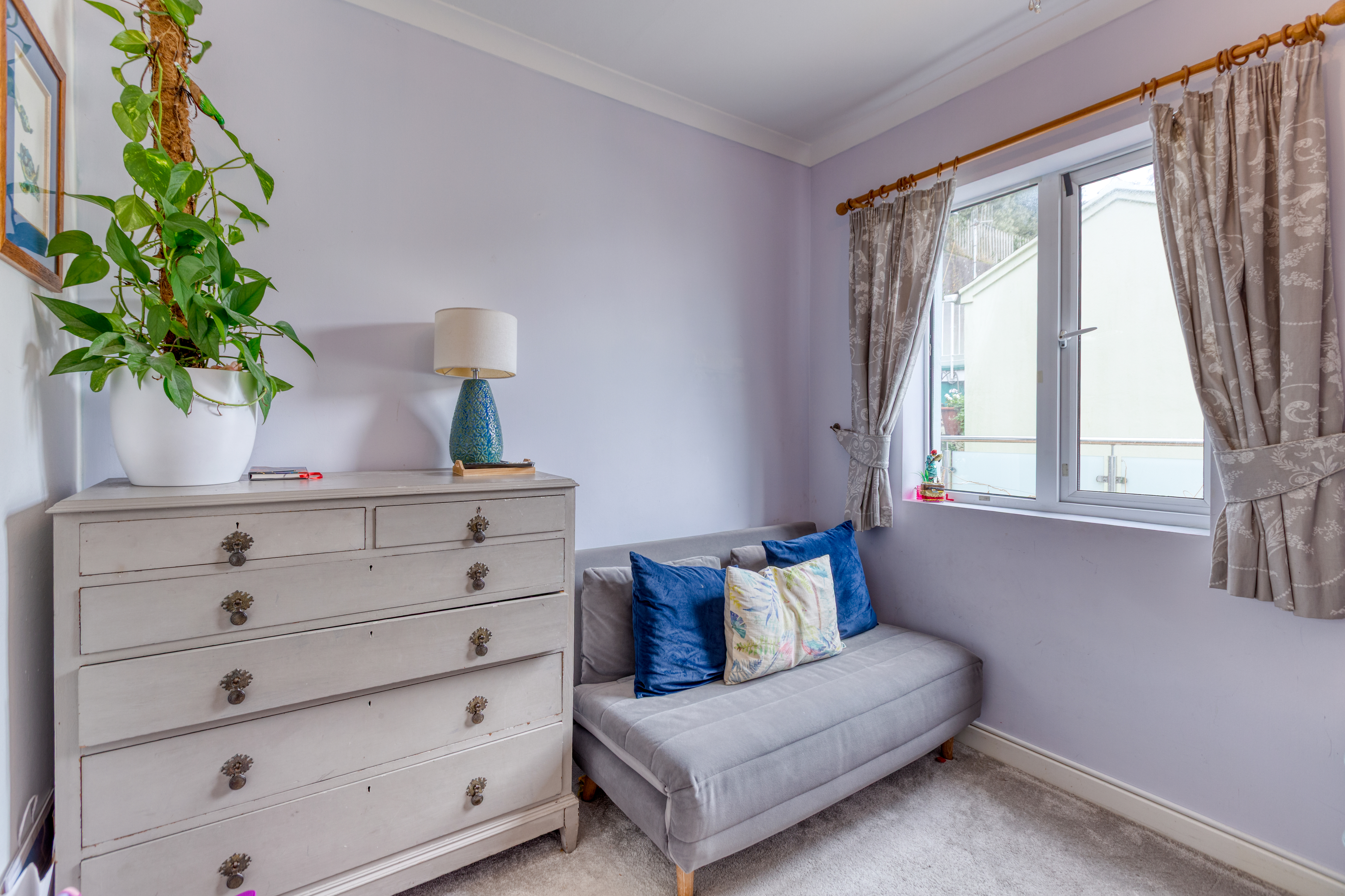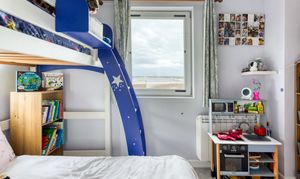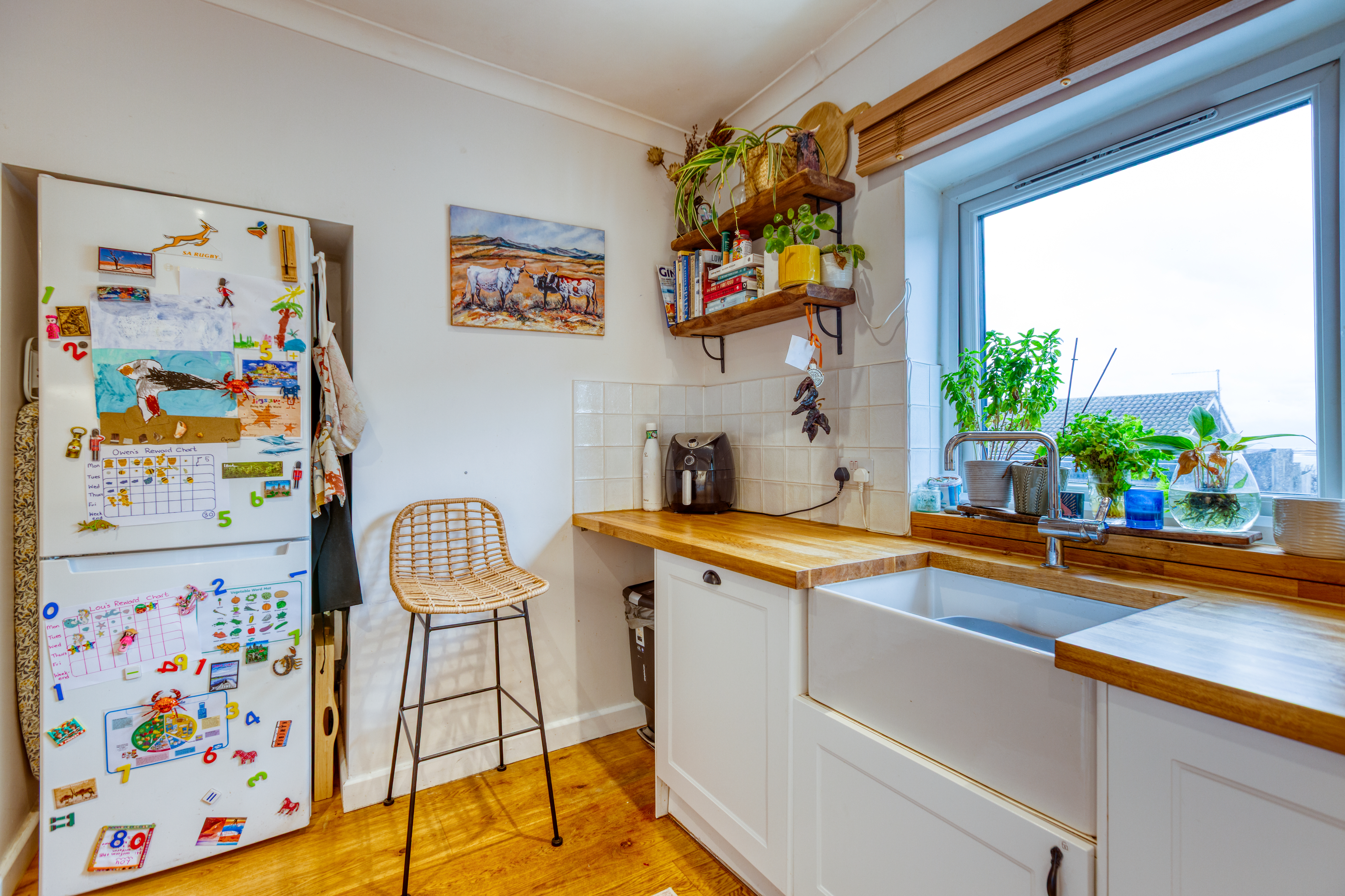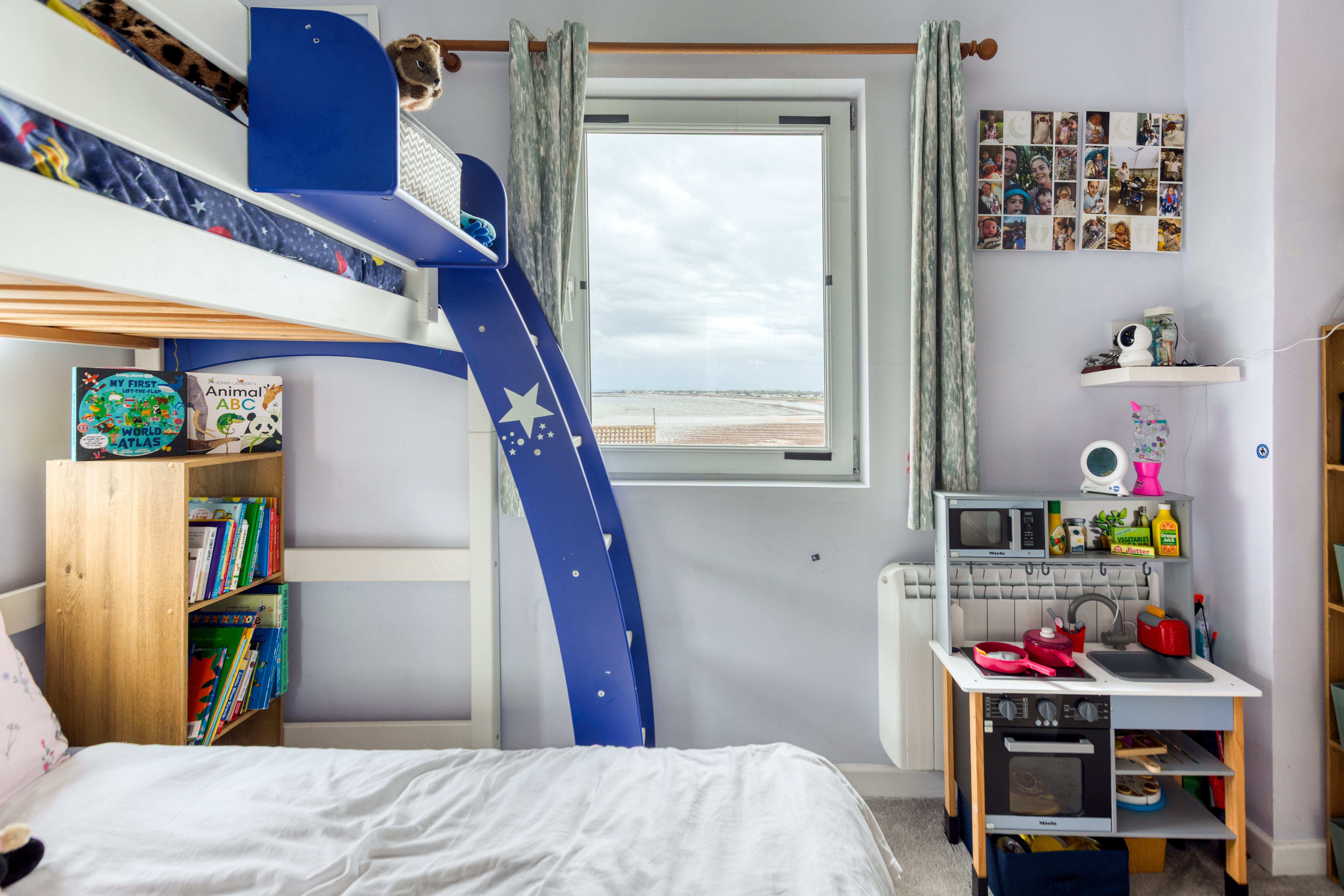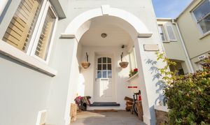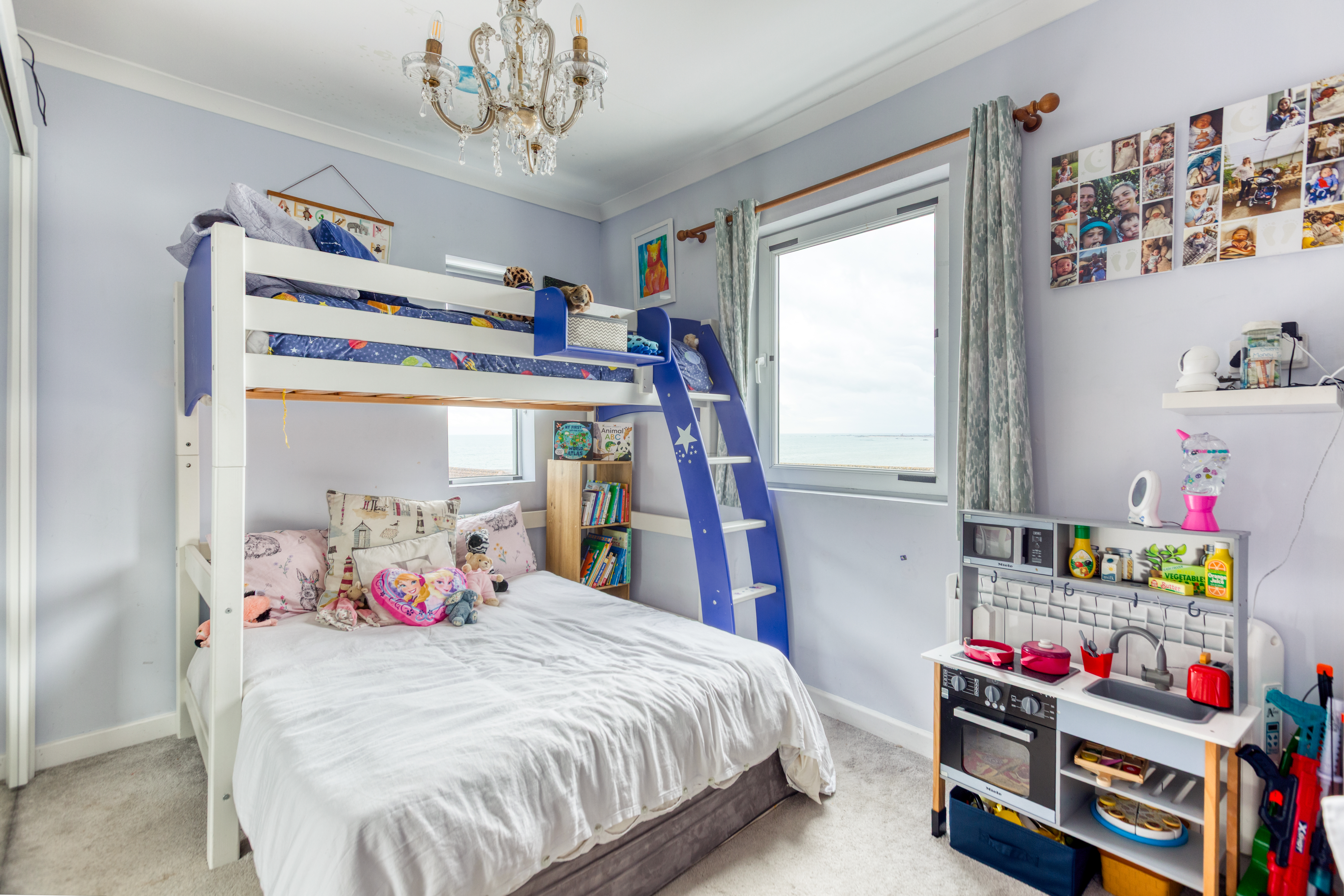 Upon entering the hallway, the ground floor features a spacious lounge and dining area with a working fireplace and picture windows framing the coastal outlook. The separate kitchen also benefits from sea views, while a convenient cloakroom completes this level. The current owners have carried out extensive renovations, thoughtfully updating the home while retaining its period charm.