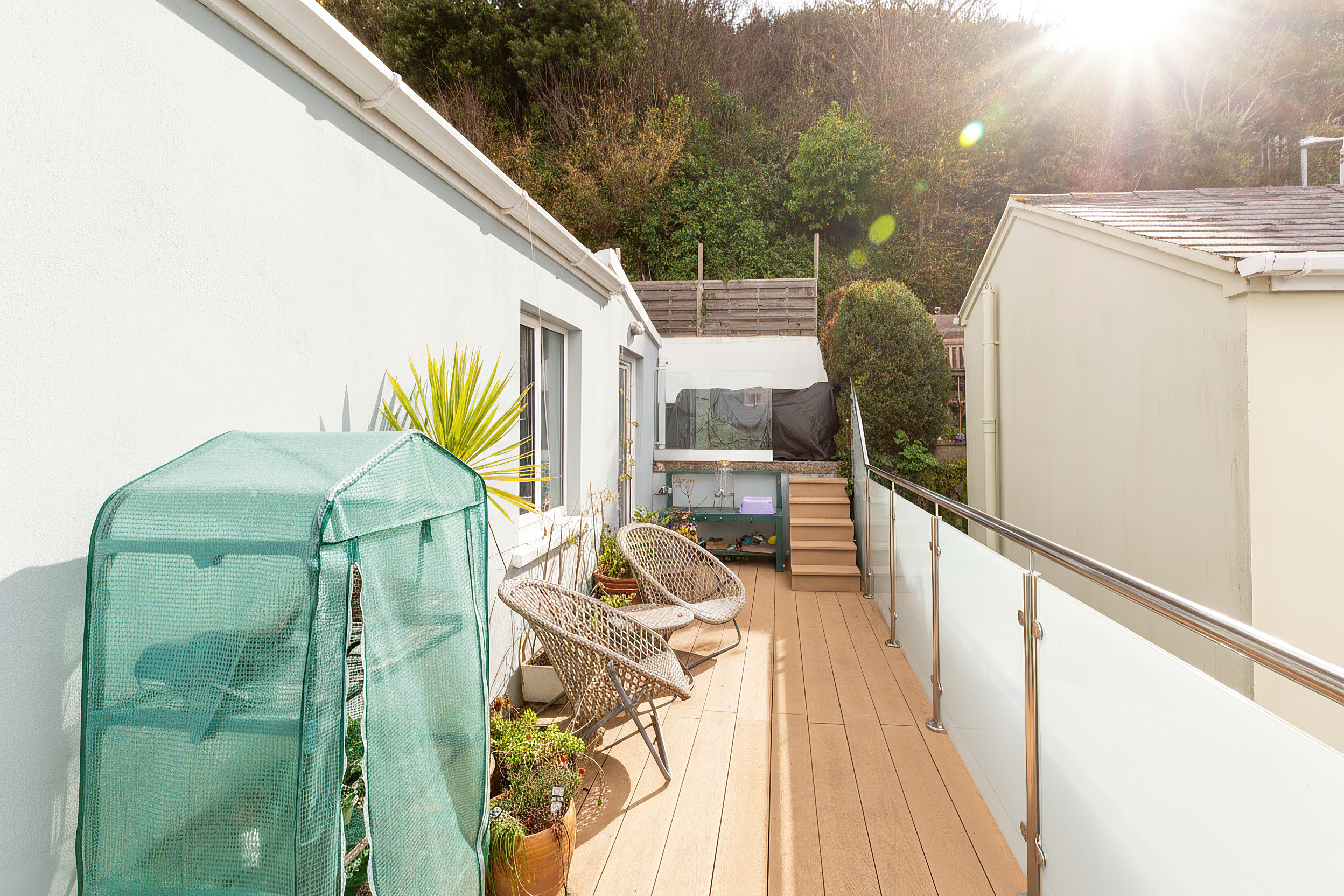 - Private rear garden with elevated seating and a decked terrace to enjoy the afternoon sun.