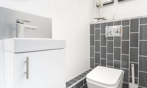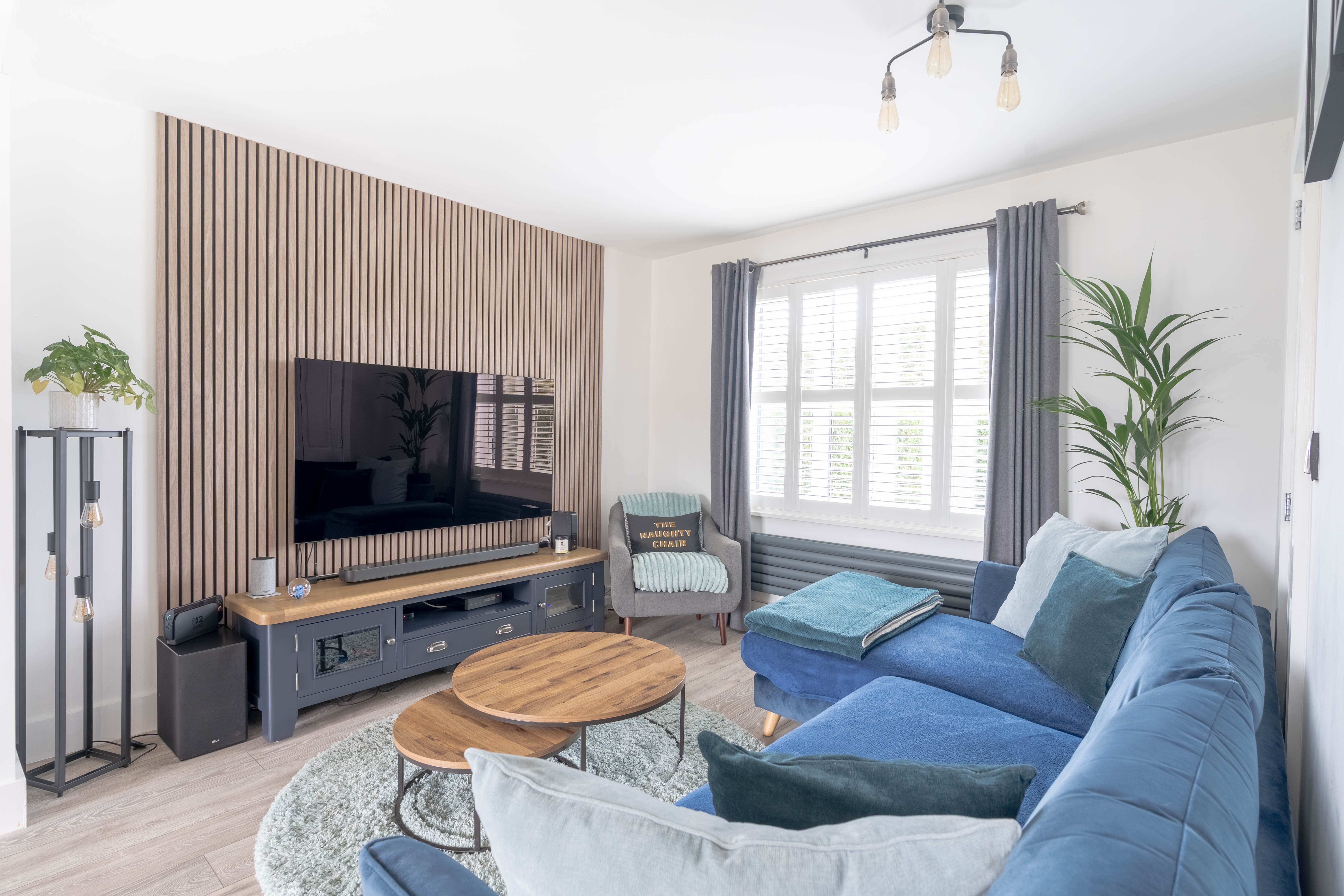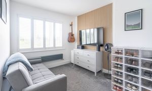 The first floor comprises three bedrooms, the main bedroom is a generous double, features a wood panelled wall and benefits from having a modern, first-floor WC and hand basin. The second is again a double and features acoustic wood panelling and overlooks the wonderful garden to the rear. The third, currently used as a dressing room but could easily be a single bedroom/nursery or home office.