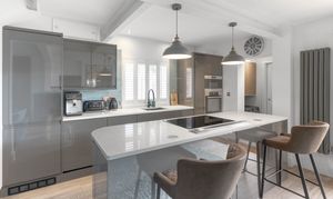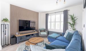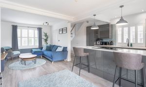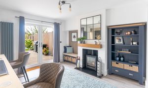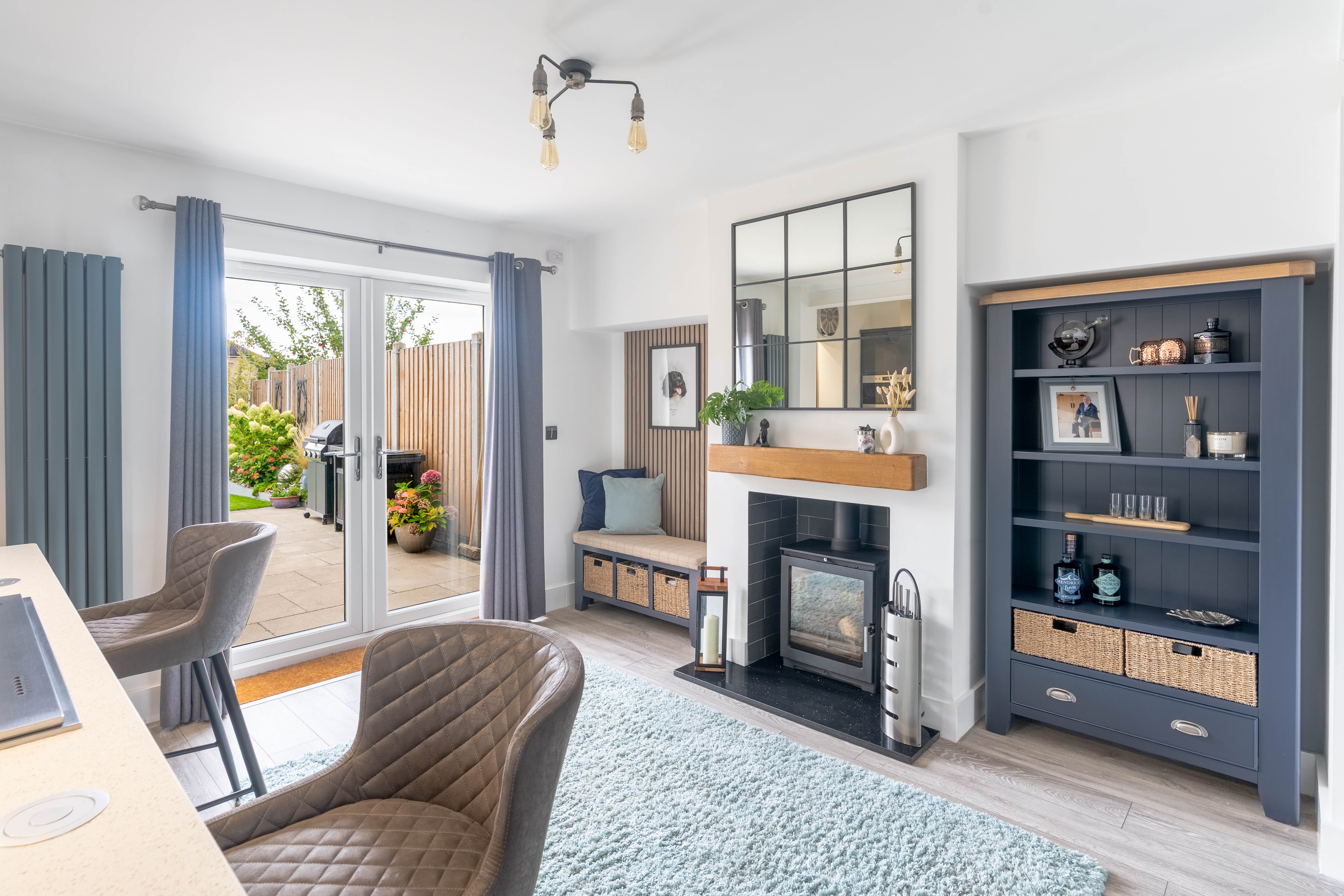 Leading into the property via the entrance hall, which includes a range of bespoke storage cupboards/drawers, a contemporary oak staircase which leads to the first floor. The impressive open plan kitchen/dining/area is both well-planned, modern and a stylish space, comprising a comprehensive range of wall and base units in a grey gloss finish with quartz worktops and integrated appliances, a popular island provides seating and fruit storage, plus houses the induction hob, with an anthracite grey radiator and open plan to the dining area. A separate utility area provides space for the washing machine and tumble dryer and leads to the attractive, modern ground-floor shower room, which features a wetroom-style walk-in shower cubicle and high-quality fittings. Offering access to the garden via French doors and a log burning stove, and open plan to the cosy sitting area, with acoustic wood panelling featured in both areas.