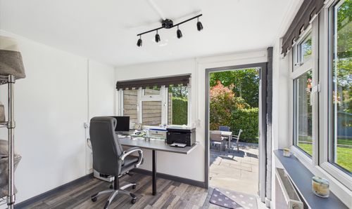 This garage conversion/3rd bedroom is currently used as an office, accessed by a separate hallway which includes a shower room, utility room and internal access to the garage. This has the potential to become a separate annexe. Benefits from dual aspect windows and door to the garden.