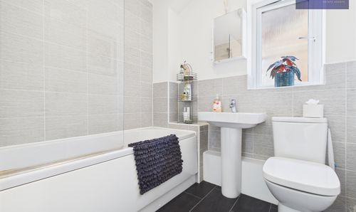 Nestled in a serene residential estate, this stunning four-bedroom detached house offers the epitome of modern living. Upon entering, a welcoming hallway leads to a convenient downstairs WC and a spacious lounge boasting bay windows adorned with elegant shutter blinds, creating a cozy ambience. The heart of the home lies in the stylish kitchen/dining room, featuring a new porcelain tiled floor, integrated appliances including a fridge, freezer, and dishwasher, a double oven, and a 5-ring gas hob. The patio door leads out to the rear garden, perfect for al fresco dining and entertaining.
