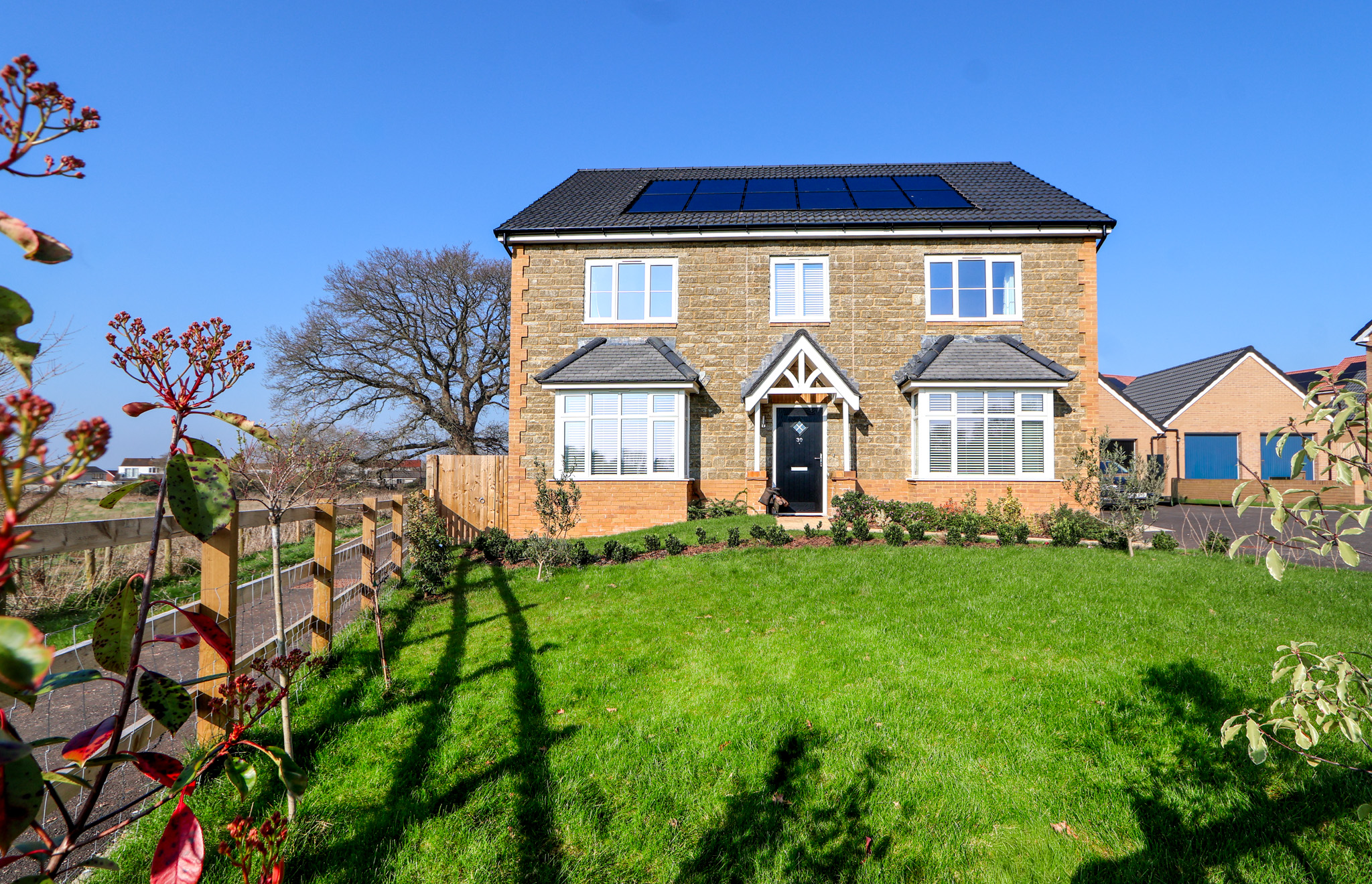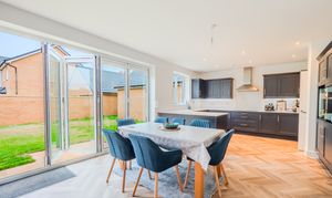 Completed in April 2025, this outstanding five-bedroom detached home is situated at the end of a peaceful cul-de-sac, offering privacy, space, and modern living in an attractive setting with beautiful countryside views. With a double-bay fronted design, owned solar panels, a double garage with power, an EV charging point, and parking for four cars, this nearly new property combines energy efficiency with high quality specification and elegant style.