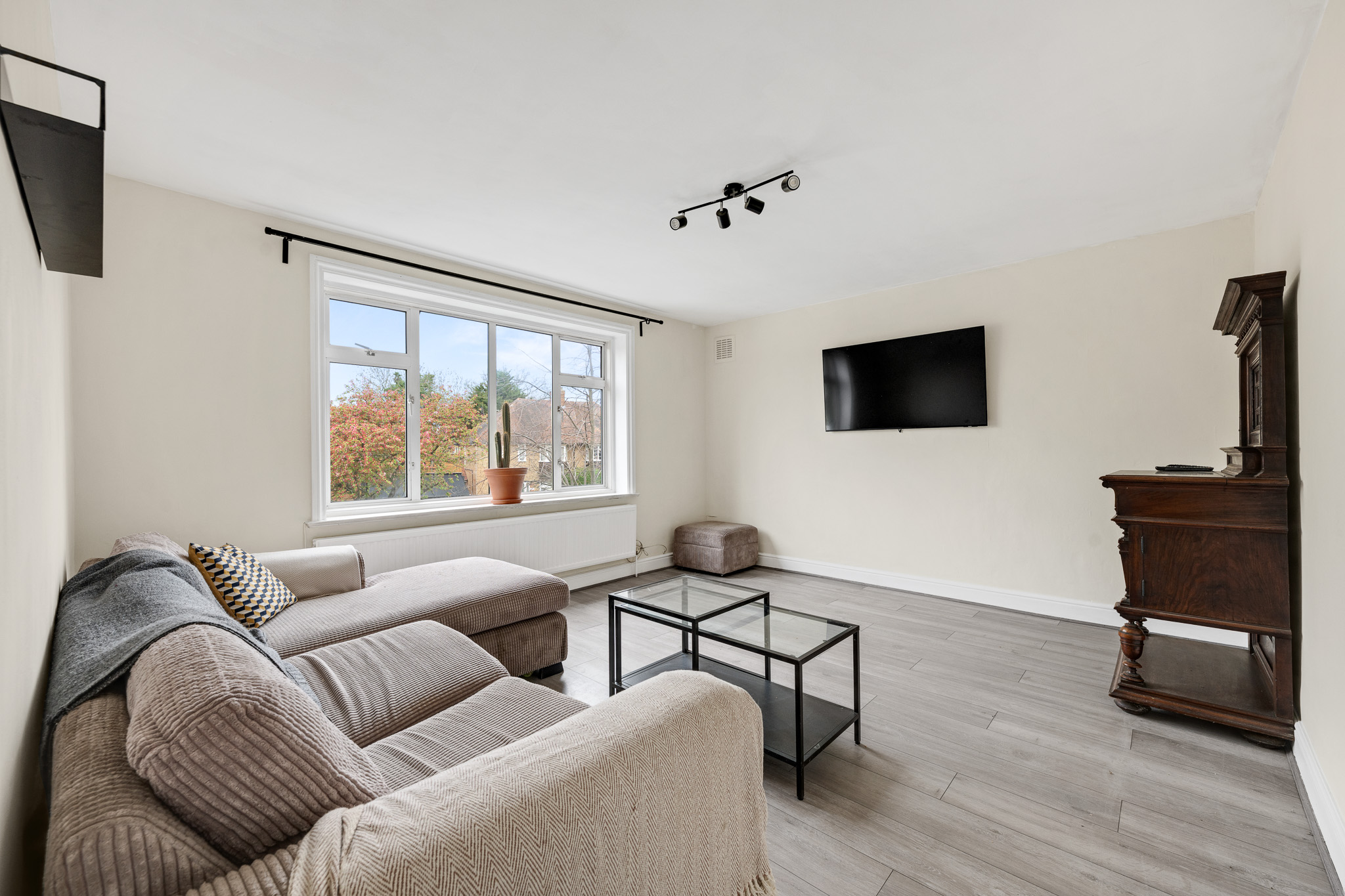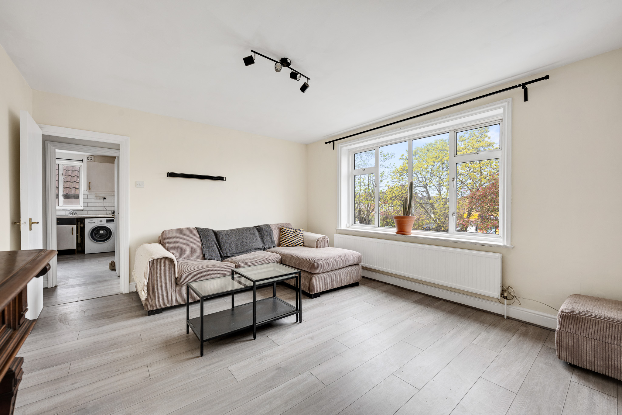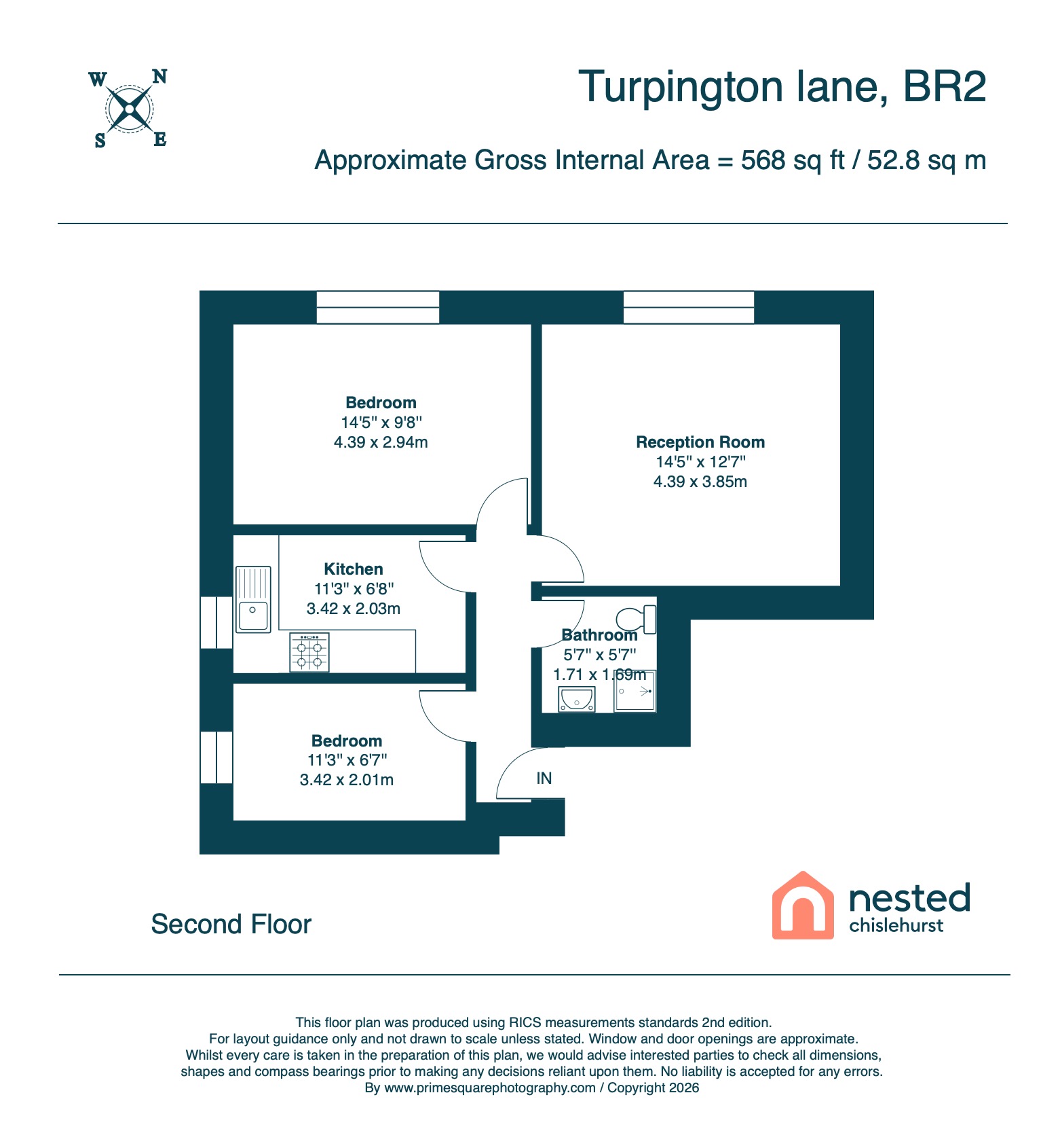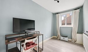 The property provides a thoughtfully arranged 568 sq ft (52.8 sq m) of living space, creating an ideal setting for first-time buyers, professionals, or buy to let investors. The welcoming entrance hall leads to a bright and spacious reception room, featuring generous proportions and ample natural light, making it perfect for both relaxing and entertaining. The separate kitchen is well-appointed, offering a range of fitted units and work surfaces, with space for appliances and a pleasant outlook. Both bedrooms are well-sized, with the principal bedroom fitting a king size bed, while the second bedroom presents a versatile option for guests, a home office, or nursery. The modern bathroom comprises a three-piece suite, with shower, wash basin and WC.