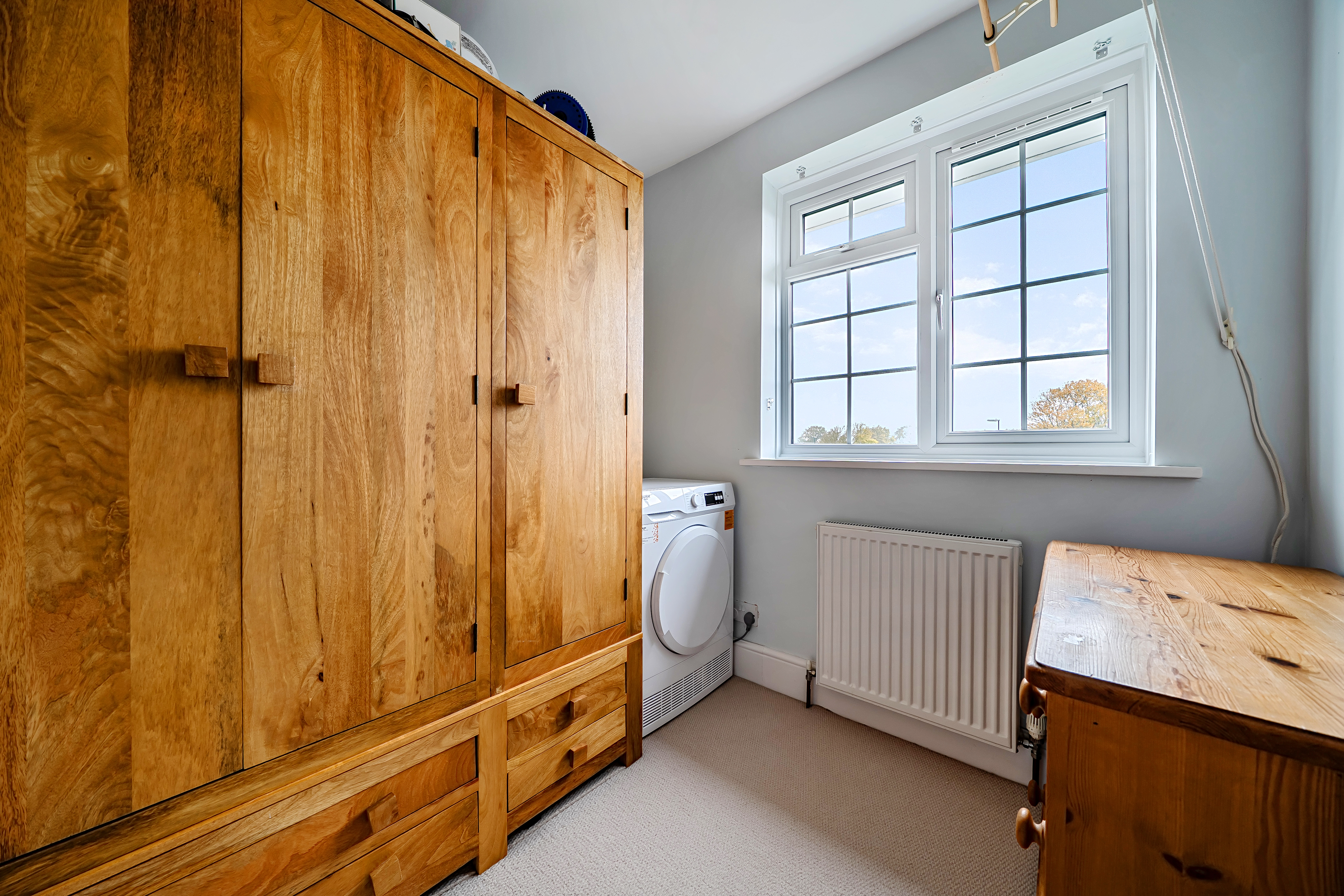On the first floor, there are three well-proportioned bedrooms, two of which include fitted wardrobes, together with a contemporary family bathroom designed with clean lines and modern finishes.