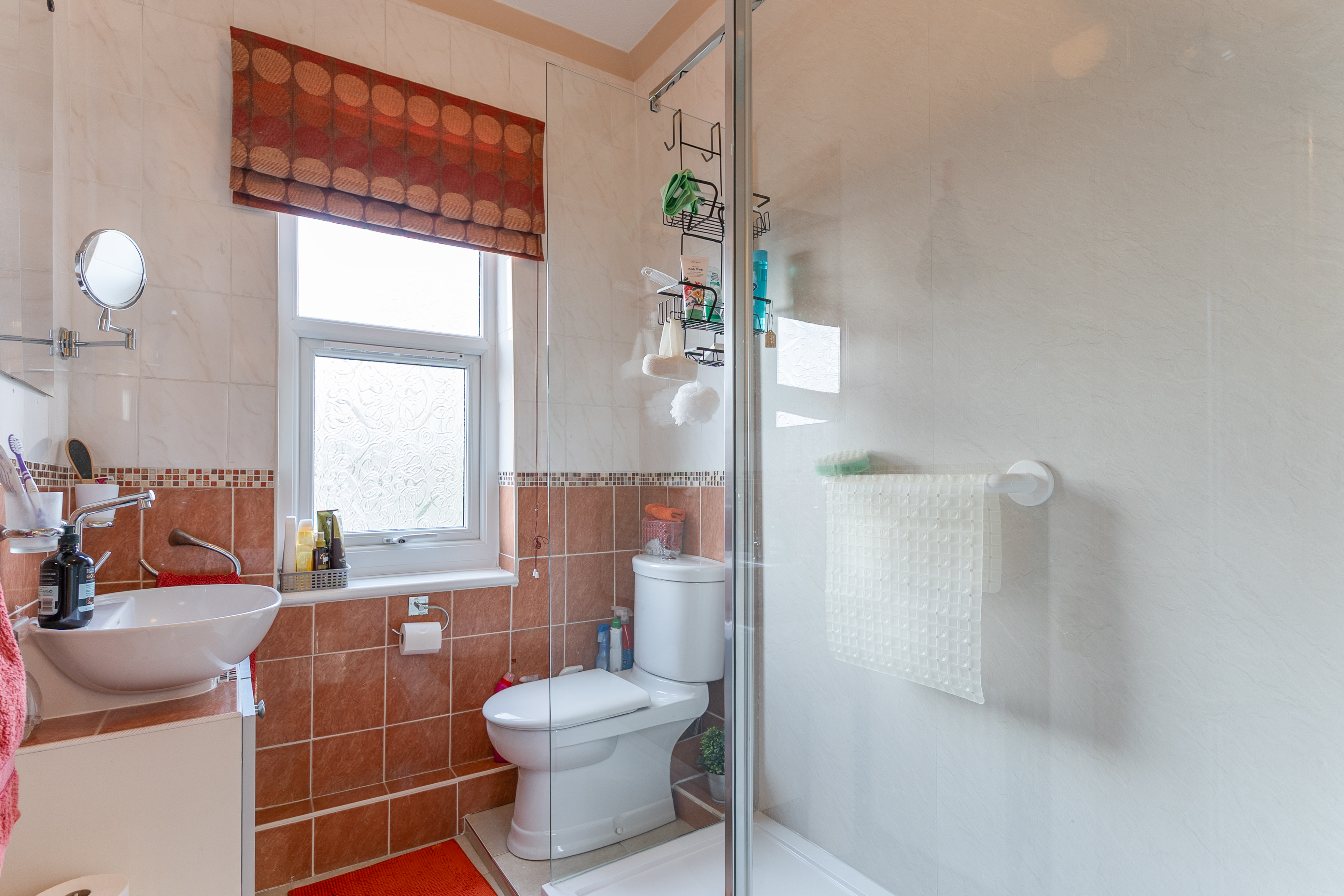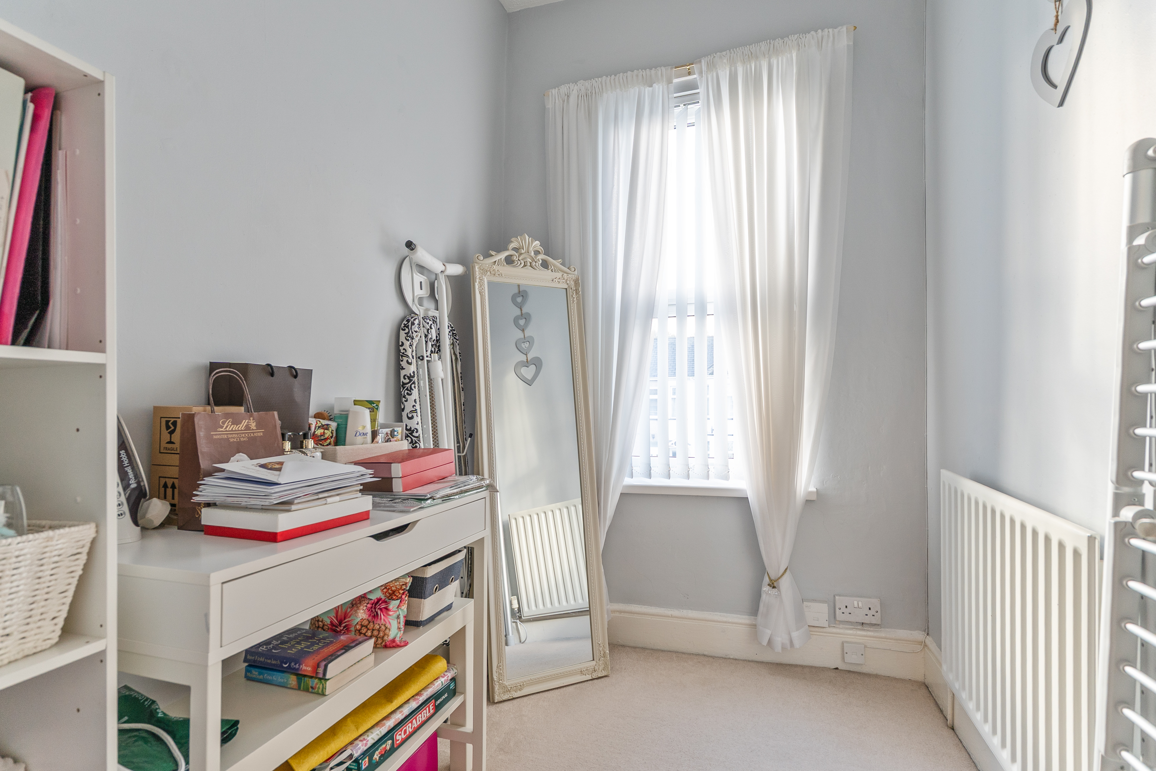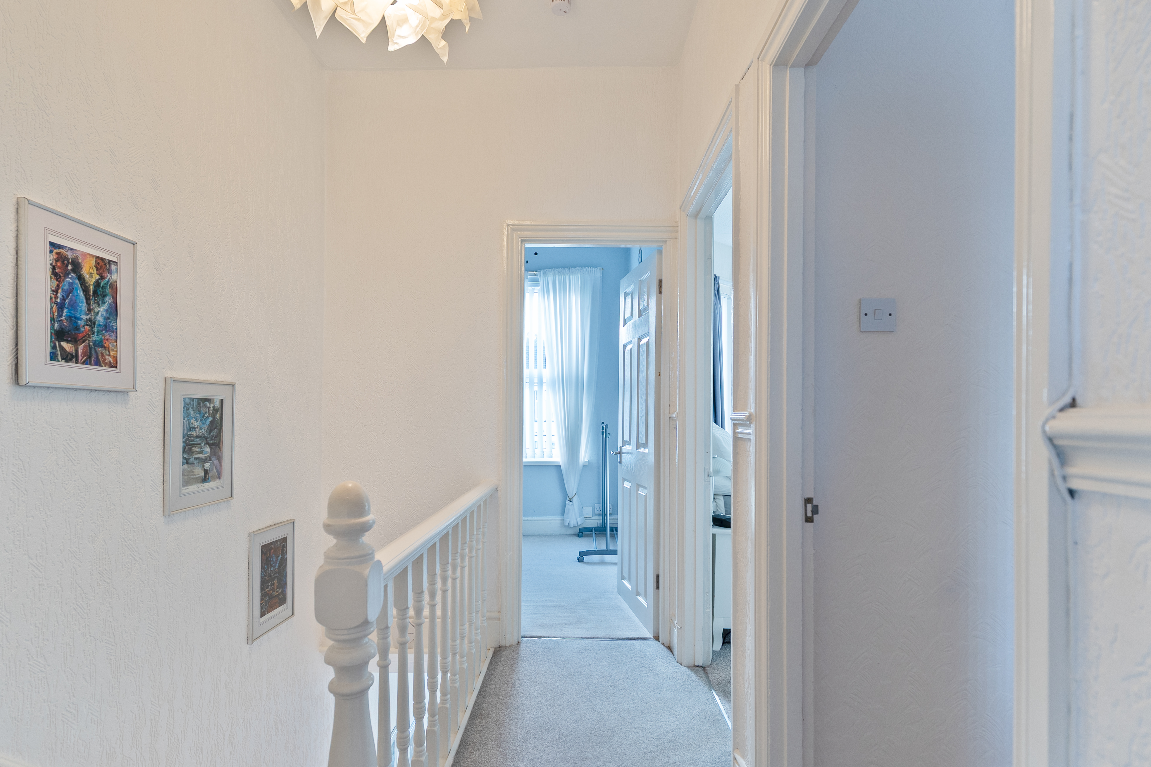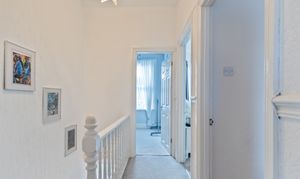 On the first floor are three bedrooms, consisting of two generous double rooms and a single bedroom that could serve as a home office, nursery or guest room. Completing this level is the family bathroom, fitted with a white suite.