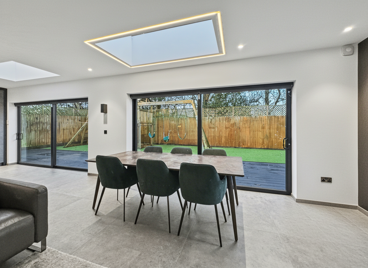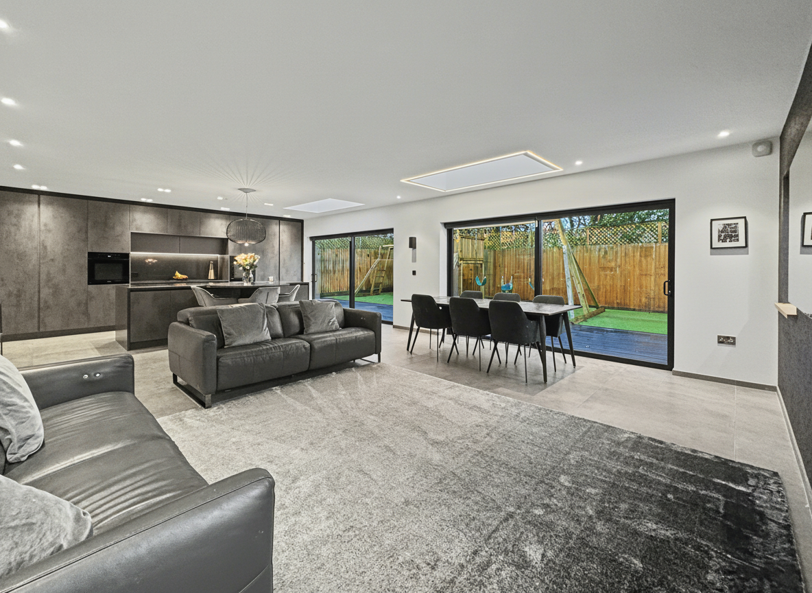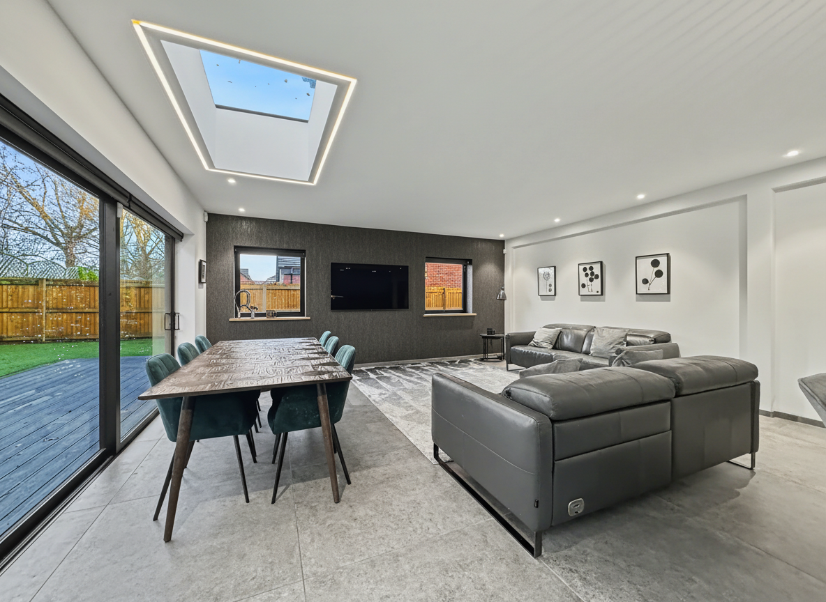 - Stunning open-plan kitchen, dining and living space with bi-fold doors and skylights