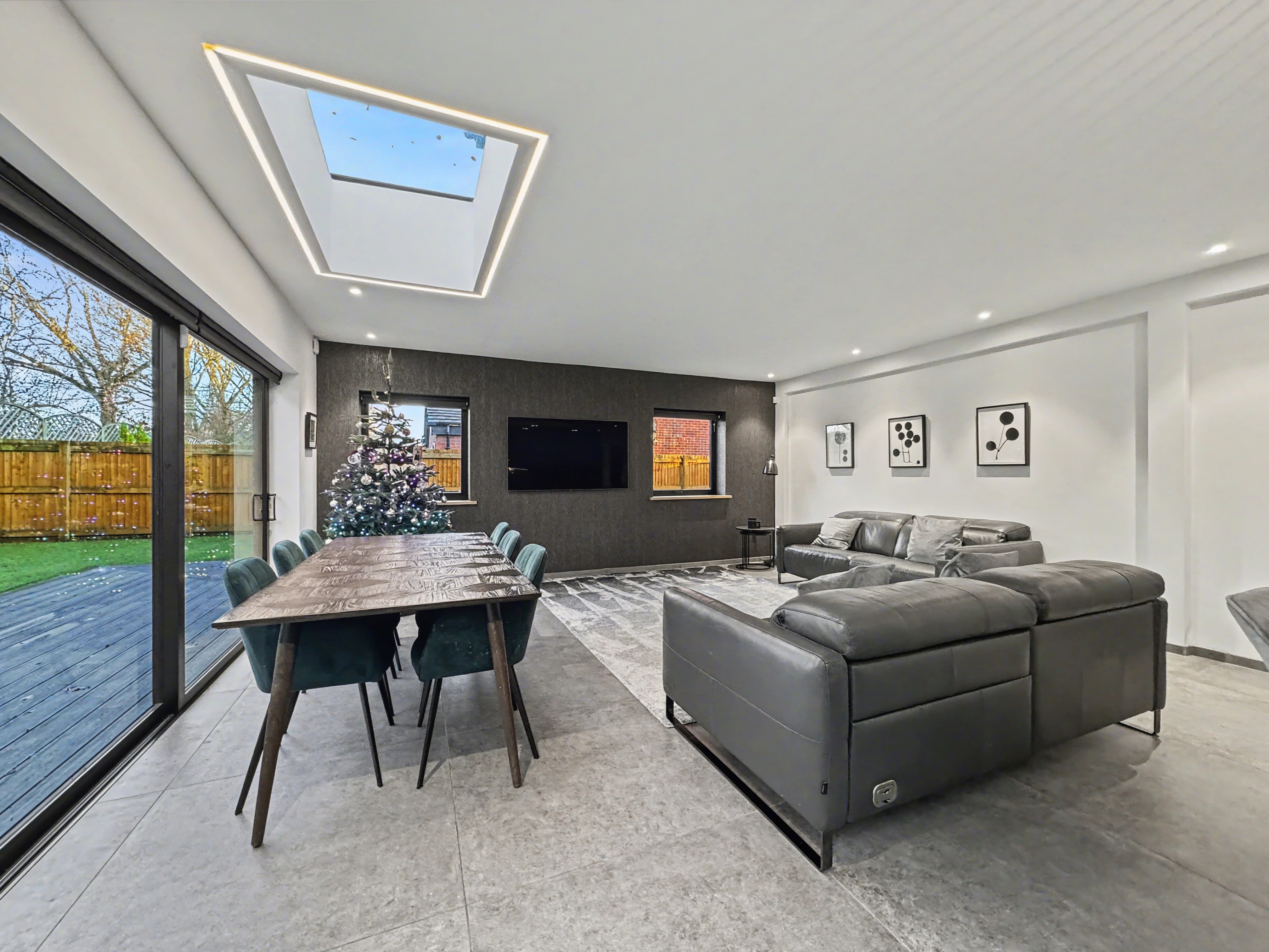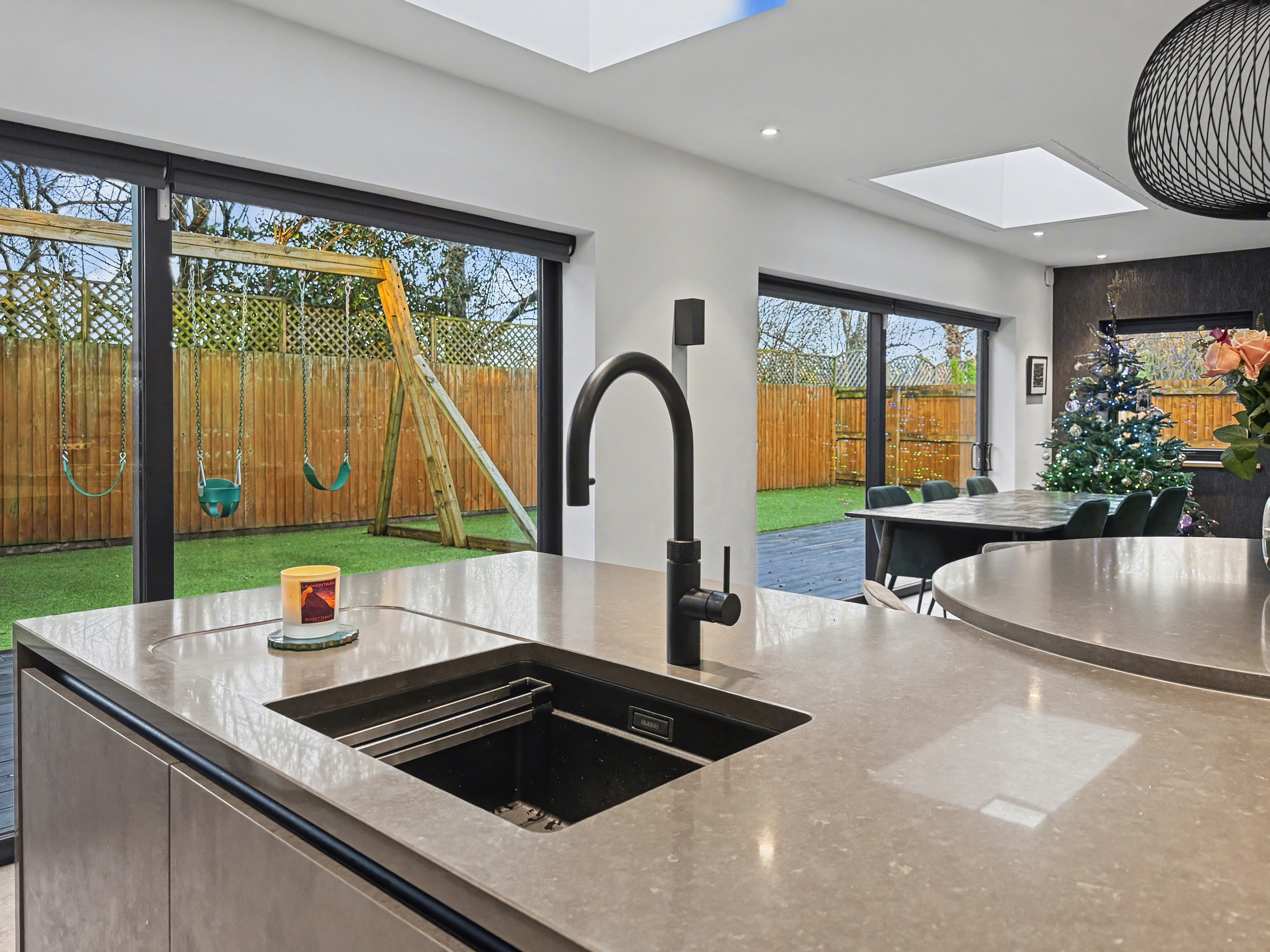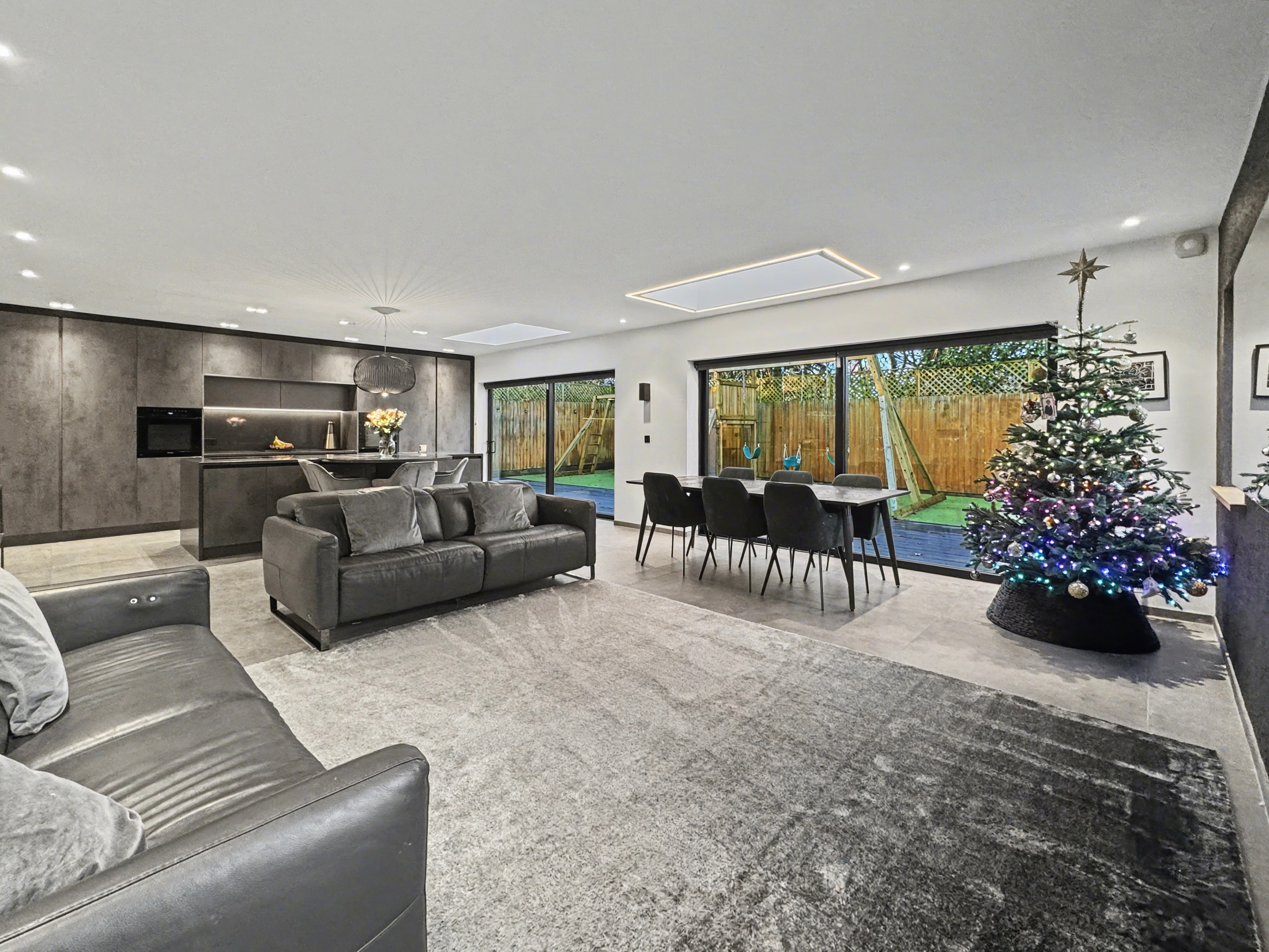 - Stunning open-plan kitchen, dining and living space with bi-fold doors and skylights