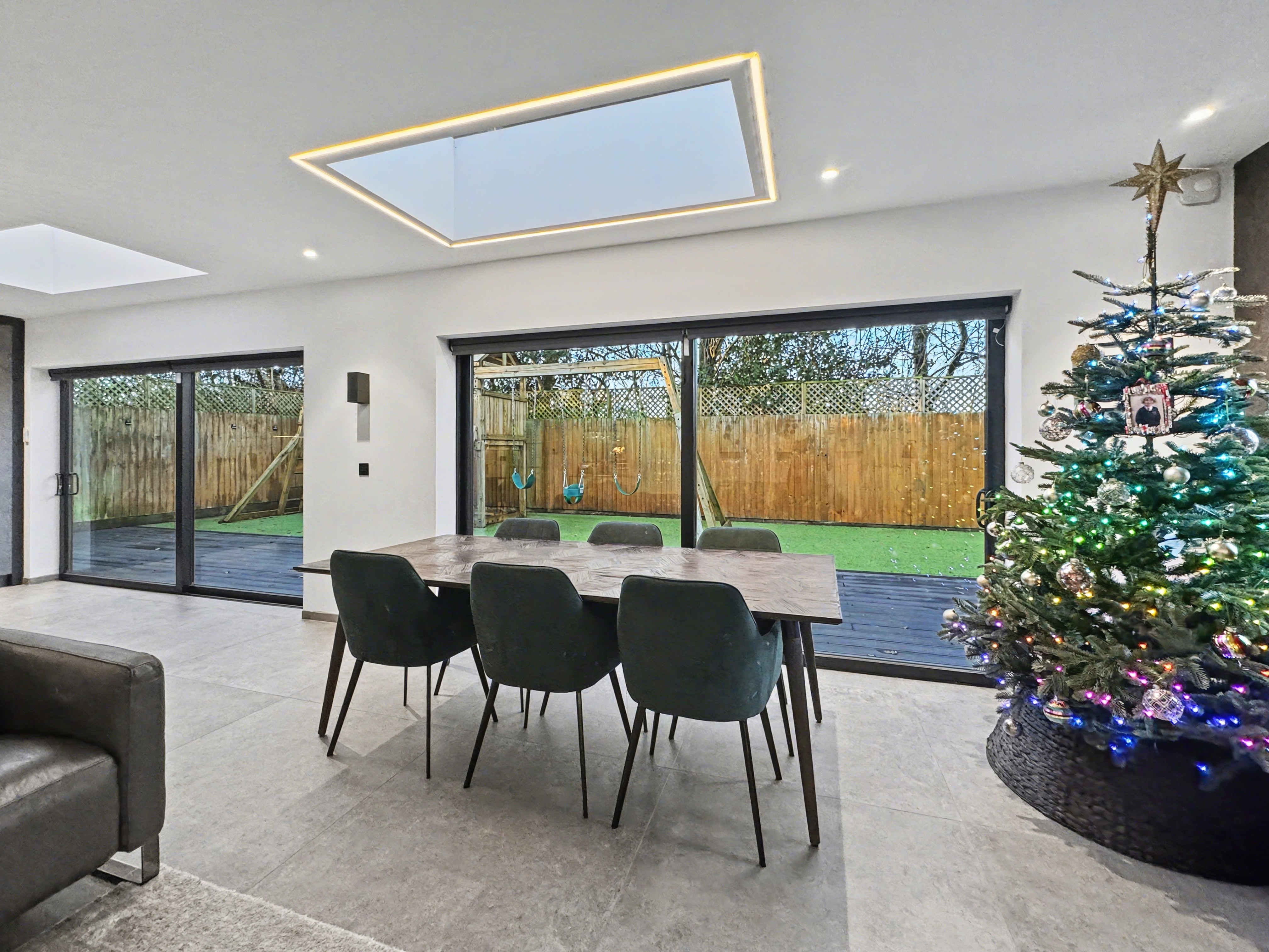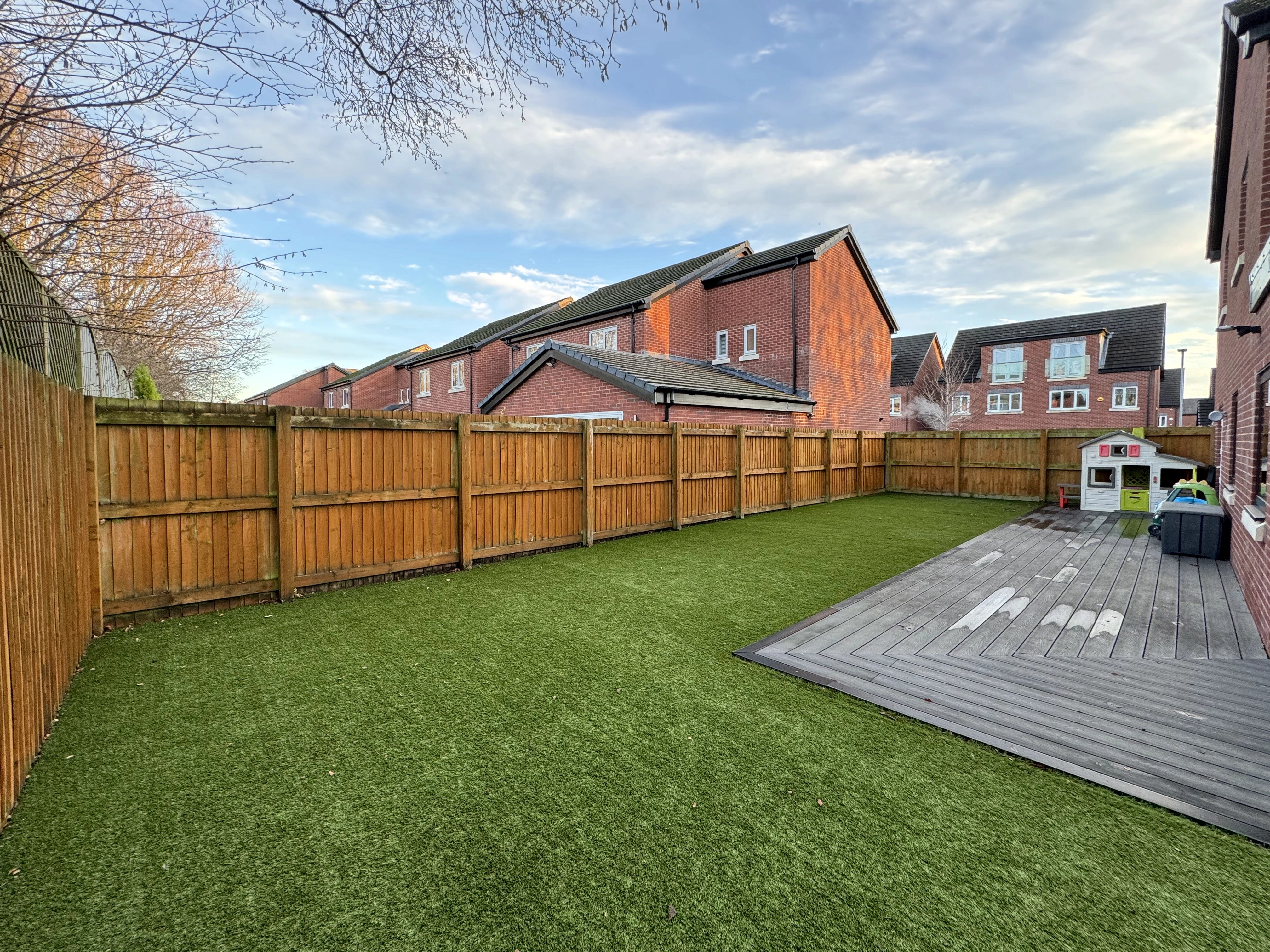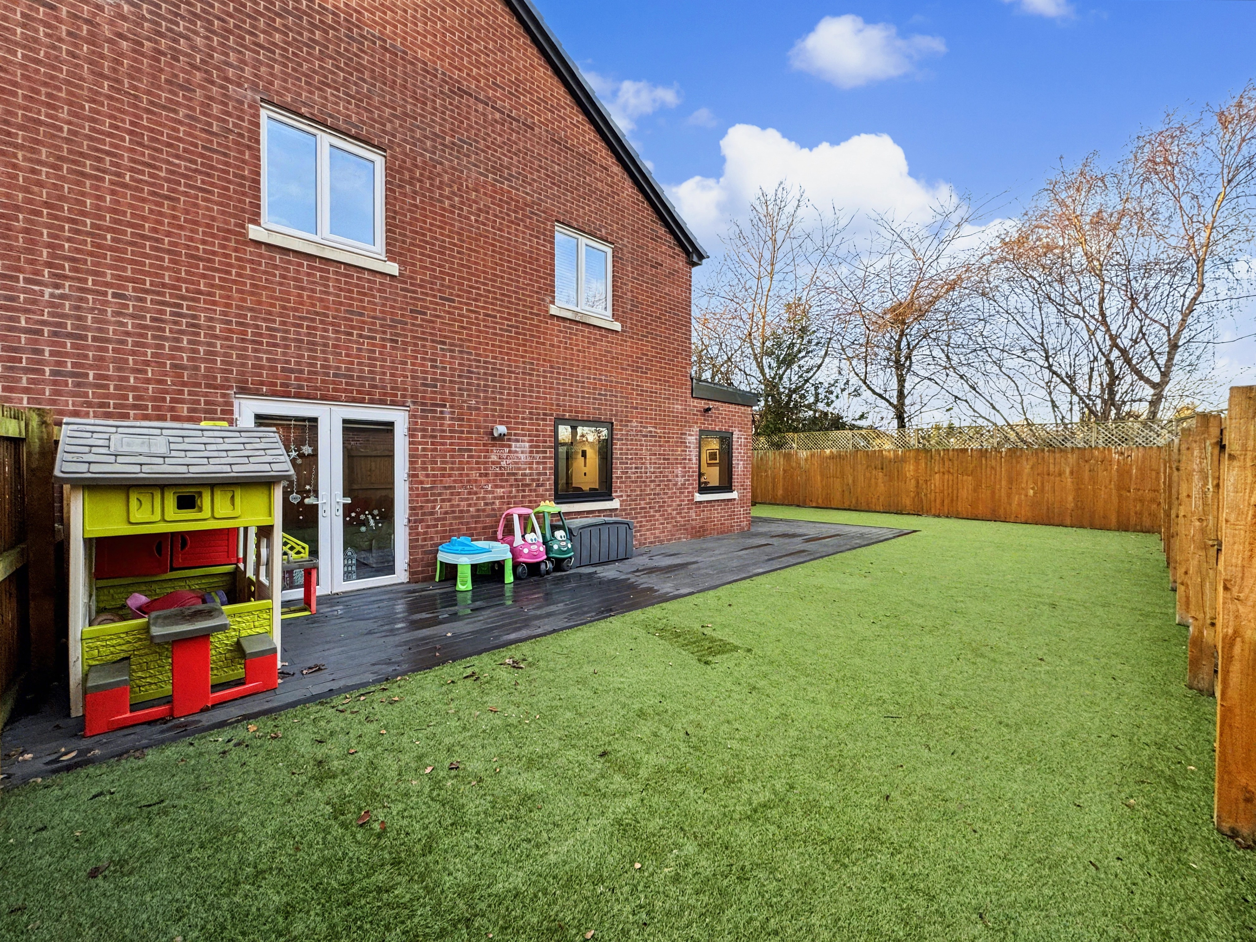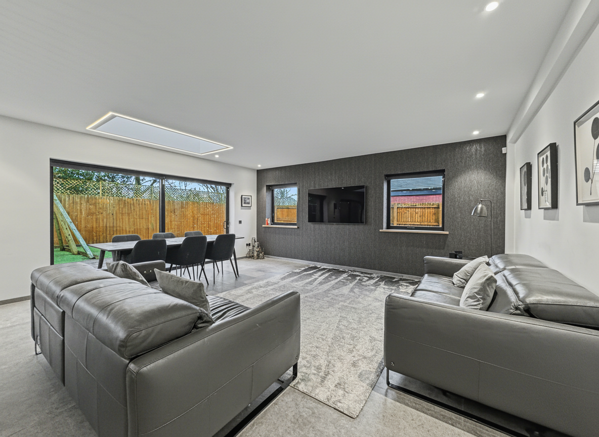 To the front of the property are two additional reception rooms, including a cosy snug and a second lounge currently used as a TV room, which also benefits from access to the rear garden with Astroturf, offering flexible living options for growing families.