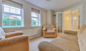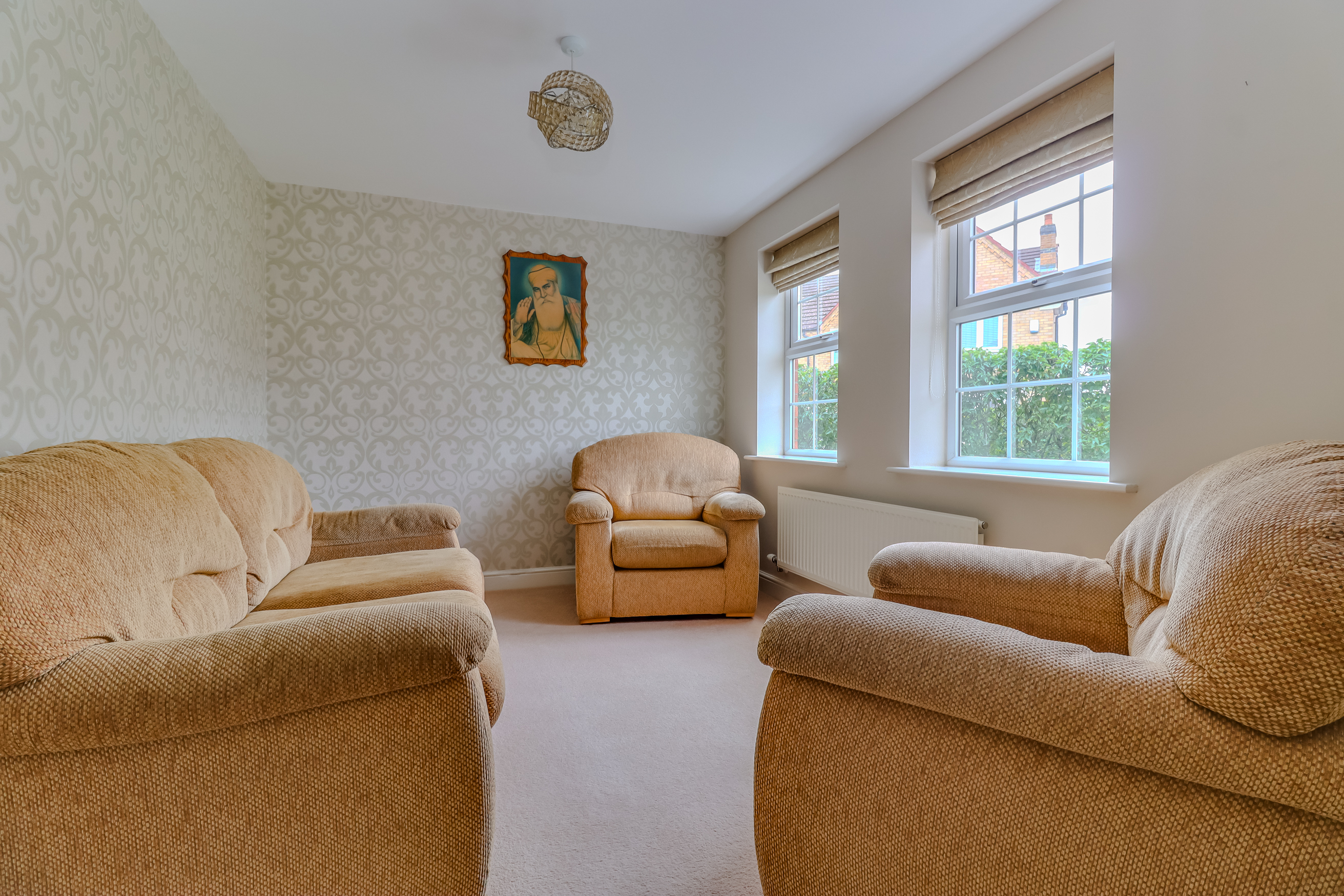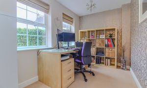 At the front of the home, there are two versatile reception rooms — one currently used as a sitting room with dual aspect windows, and the other ideal as a home office or study.