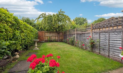 The rear garden is designed for ease of care with an artificial lawn, side access and space to entertain.