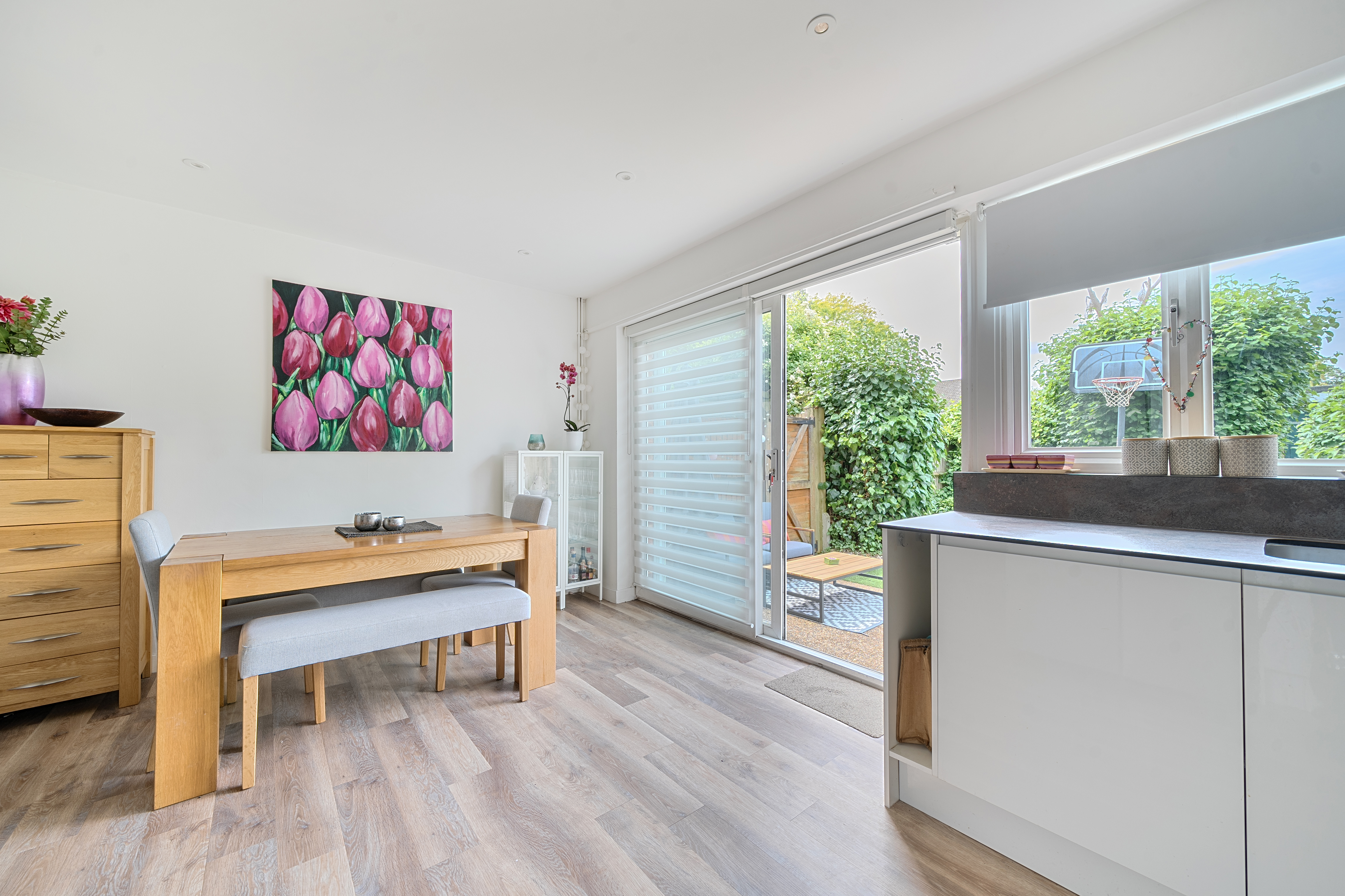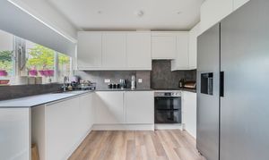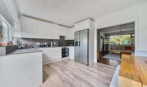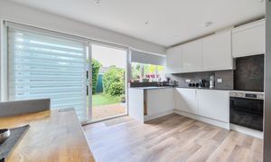 - Refurbished kitchen/diner with Karndean flooring, integral double oven, induction hob, dishwasher and washer dryer. Doors to patio and garden.