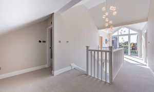 From the moment you step into the double-height hallway, the sense of volume and light is unmistakable. The vaulted landing, framed by a feature window, brings an airy grandeur that carries throughout. Underfloor heating runs beneath every room, maintaining comfort and efficiency, while a 10-year NHBC guarantee provides total peace of mind.