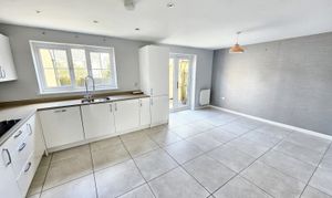 Electric hob with extractor over, eye height fan oven, fridge/freezer, stainless steel one and a half bowl sink with mixer tap overlooking the garden to rear, built in dishwasher and range of wall and low level storage cupboards. Utility cupboard housing the boiler and washing machine. French doors to garden. UPVC windows, two radiators.