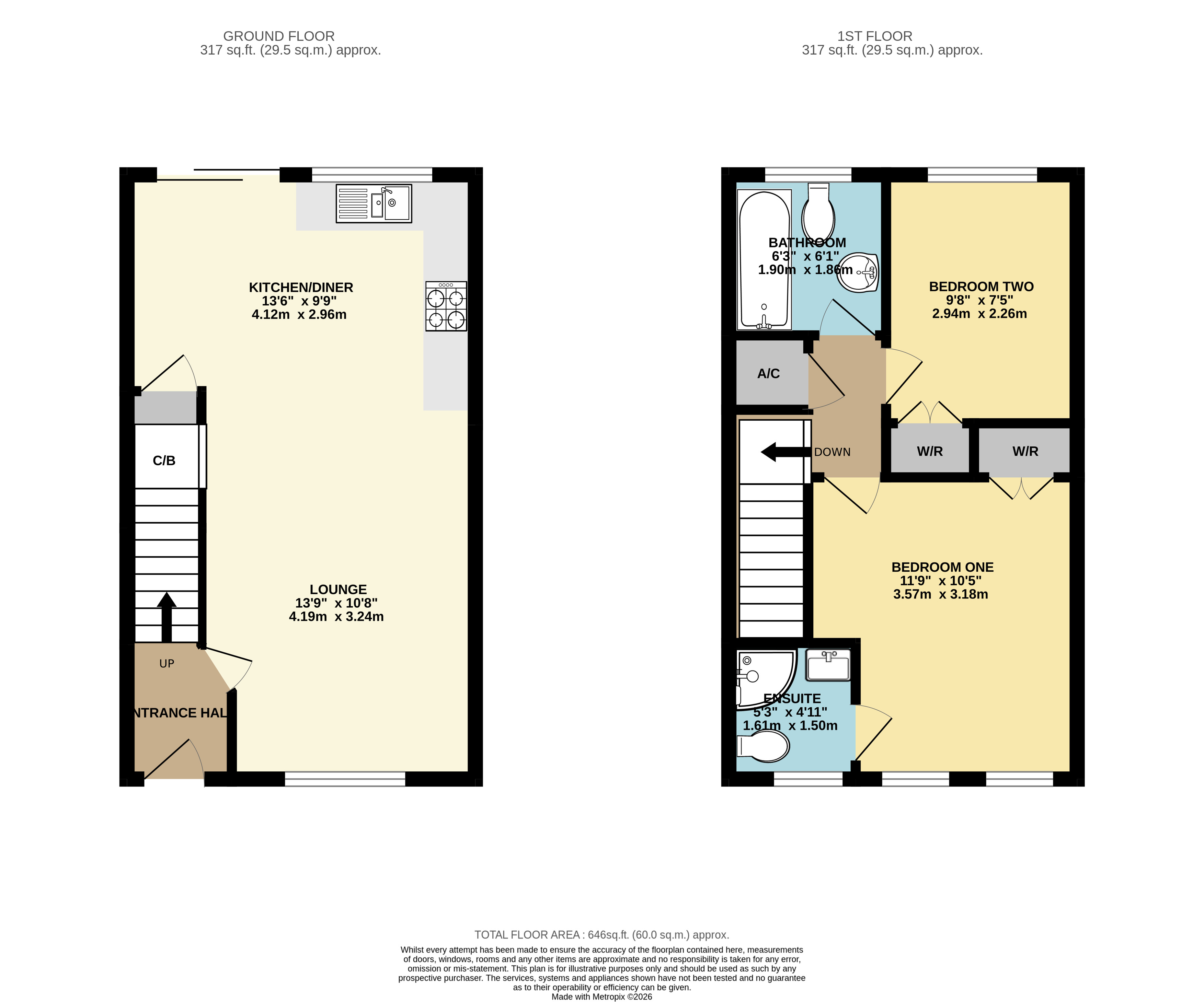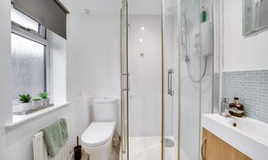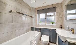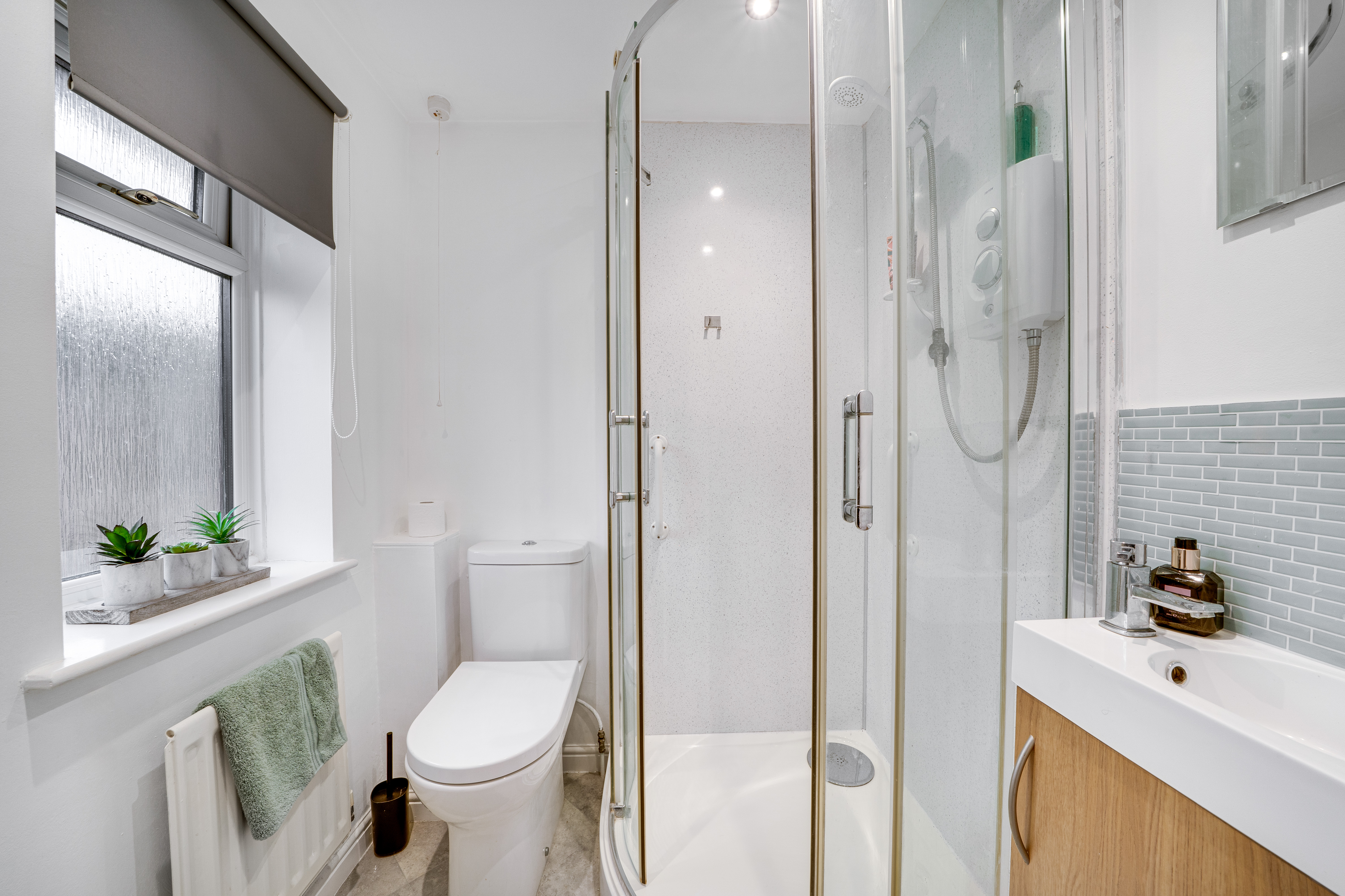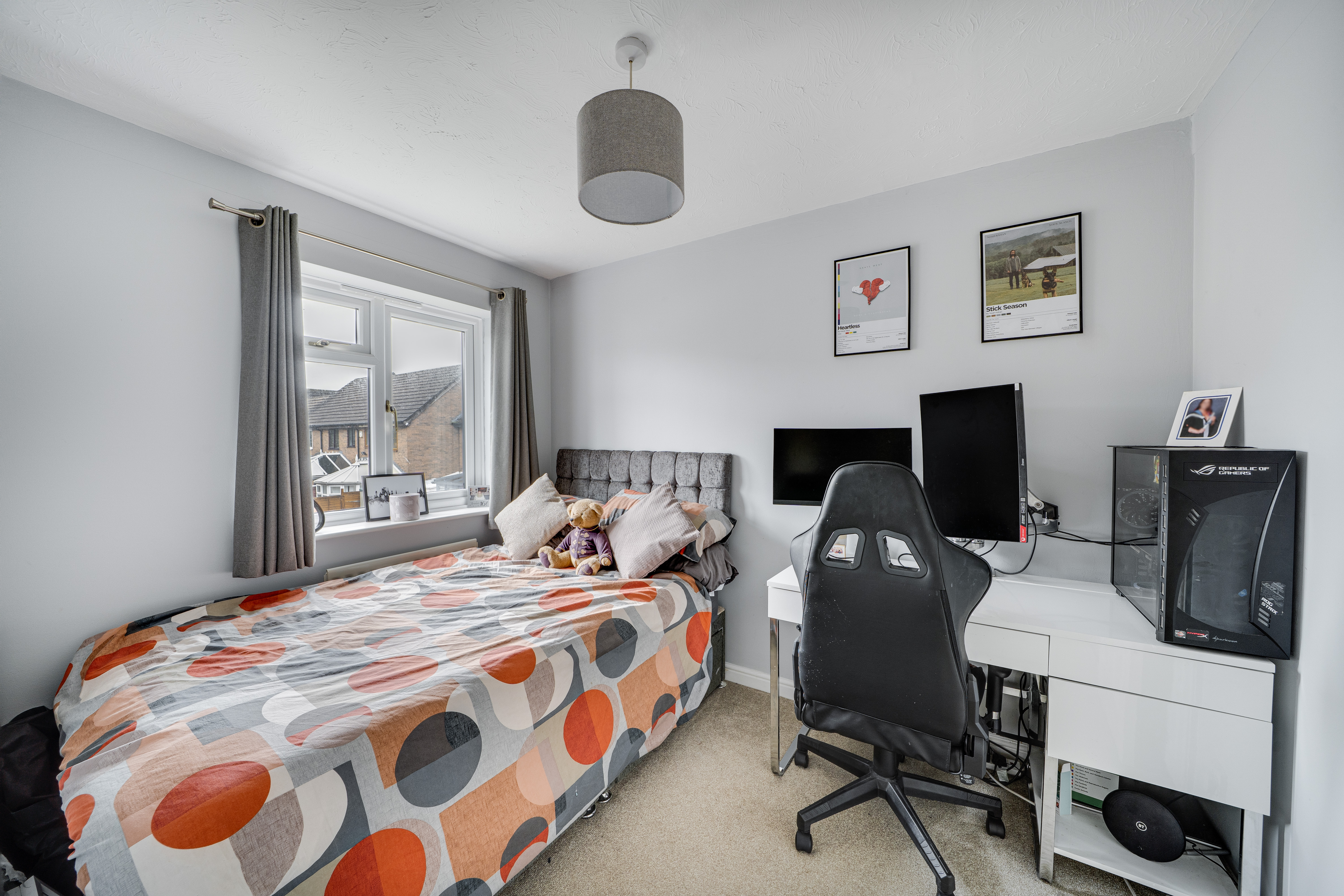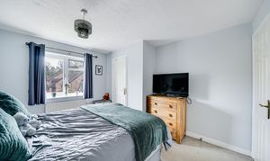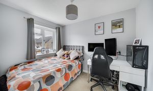 Upstairs, there are two well-proportioned bedrooms, both offering comfortable accommodation with flexibility for home working or guests. The main bedroom benefits from the added convenience of an en-suite, while the additional bathroom serves the rest of the first floor, creating a practical arrangement for everyday use.