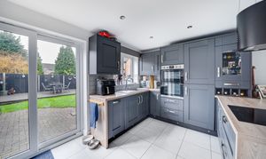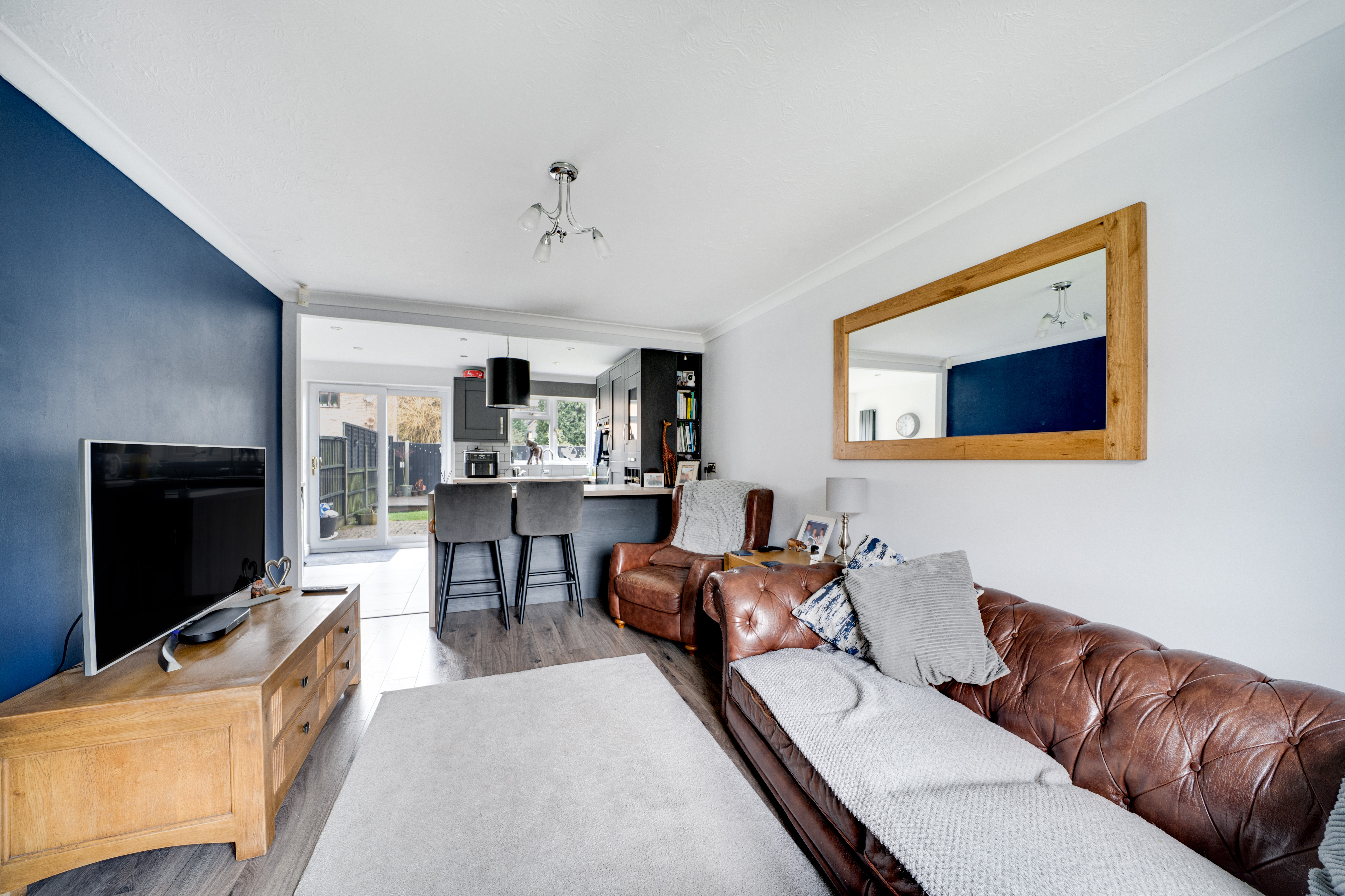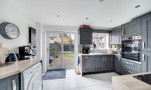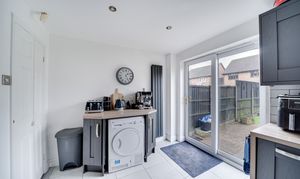 A welcoming entrance hall leads through into a bright, open-plan living space that makes excellent use of the ground floor. The lounge sits comfortably to the front, creating an inviting area to unwind, while the space flows naturally into the kitchen and dining area at the rear, perfect for modern lifestyles. The kitchen is sleek and fully integrated, offering a clean, streamlined finish with appliances neatly built in, and there is ample room to enjoy meals or entertain friends with doors opening out to the garden, bringing in plenty of natural light.