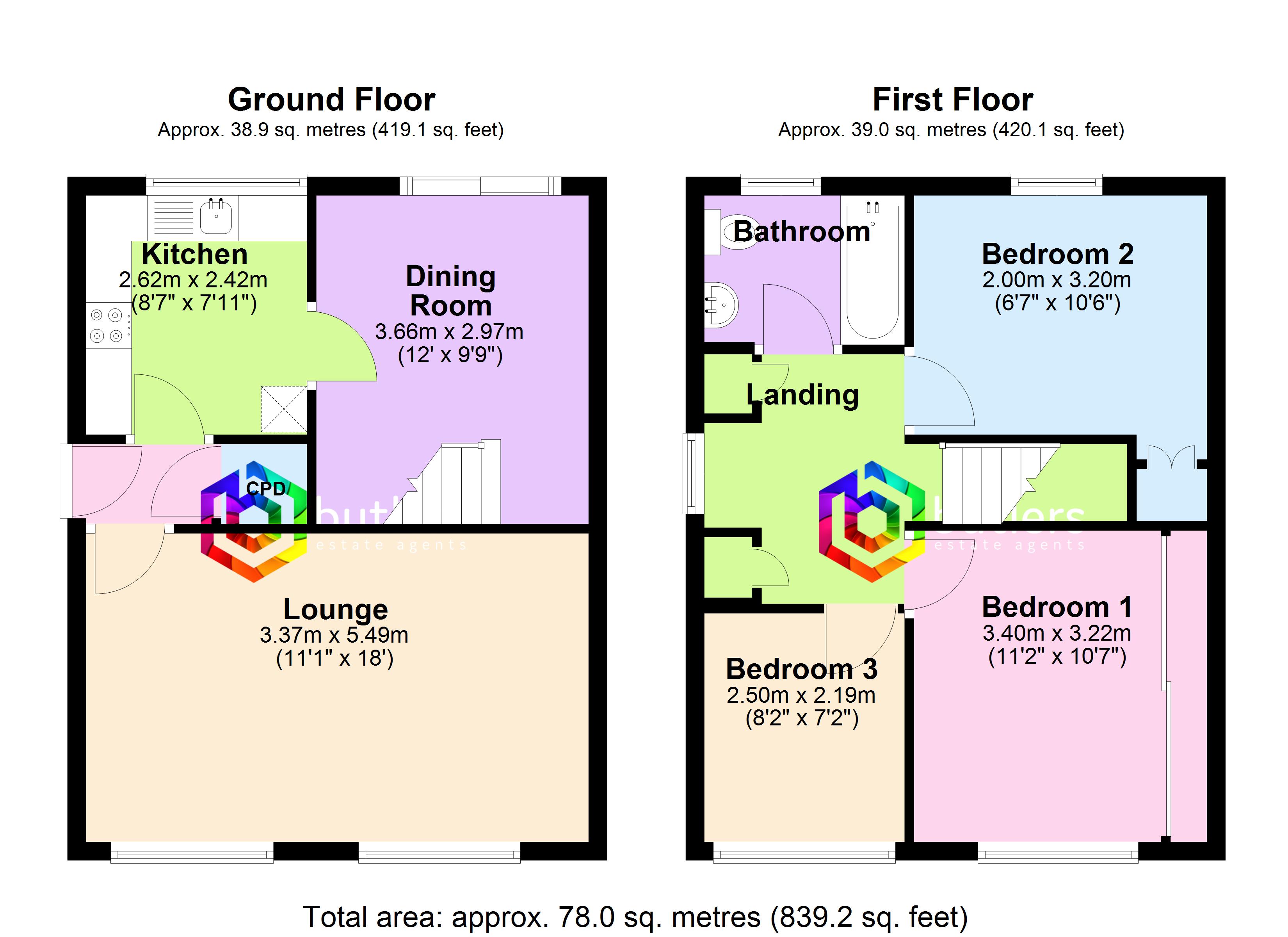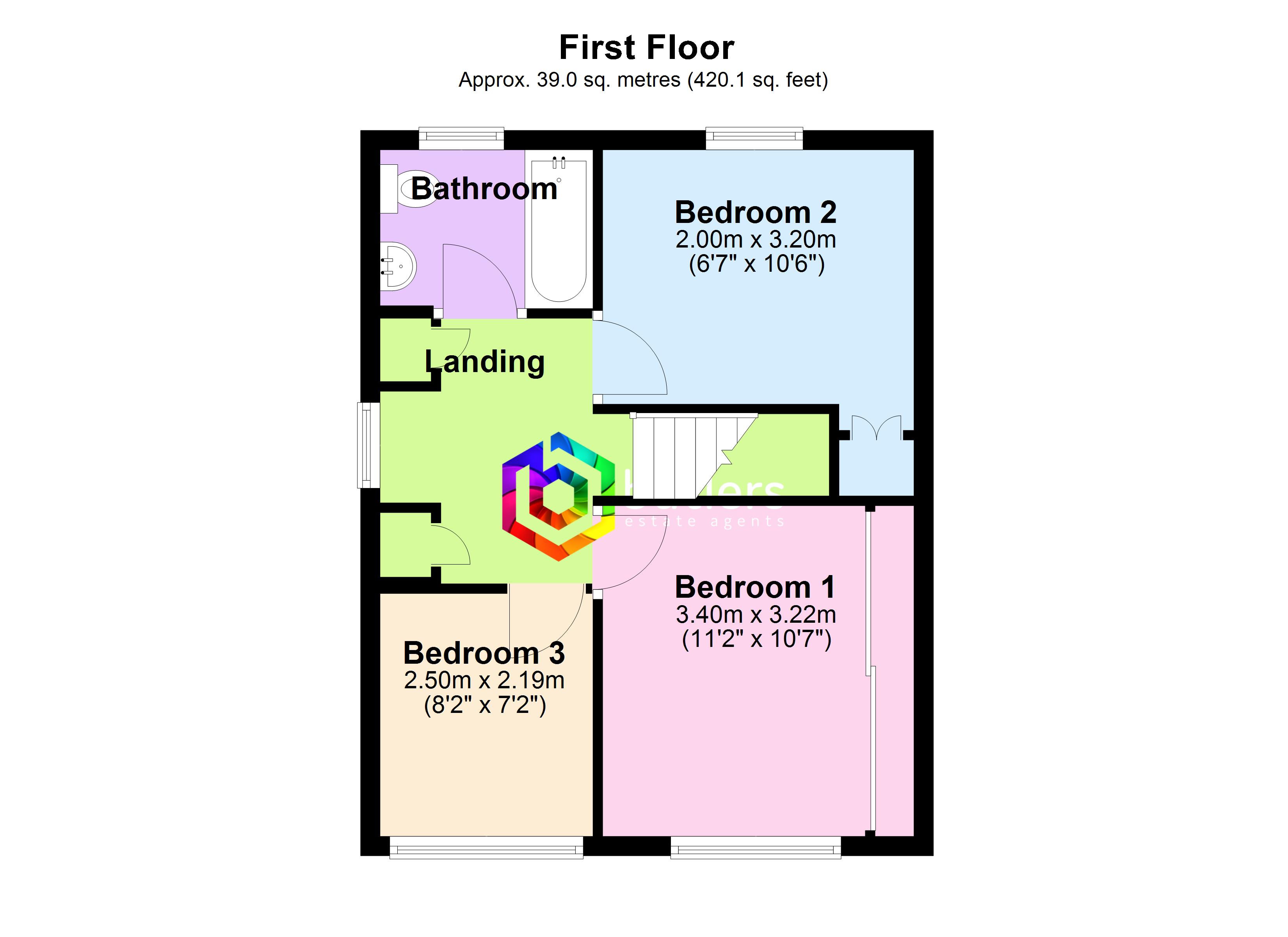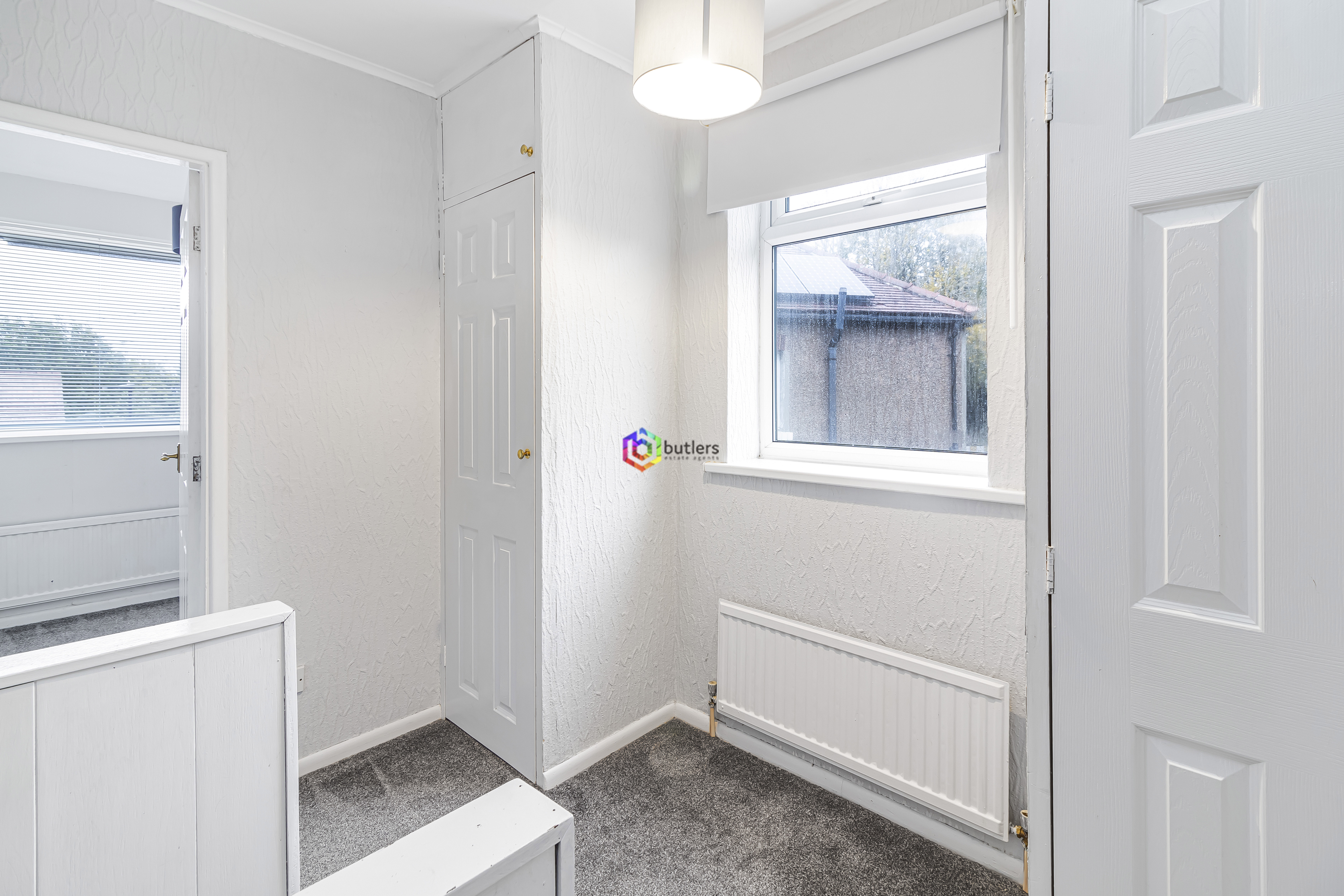 Providing access to all bedrooms and the bathroom. There are two useful storage cupboards surrounding the window to the side of the house.