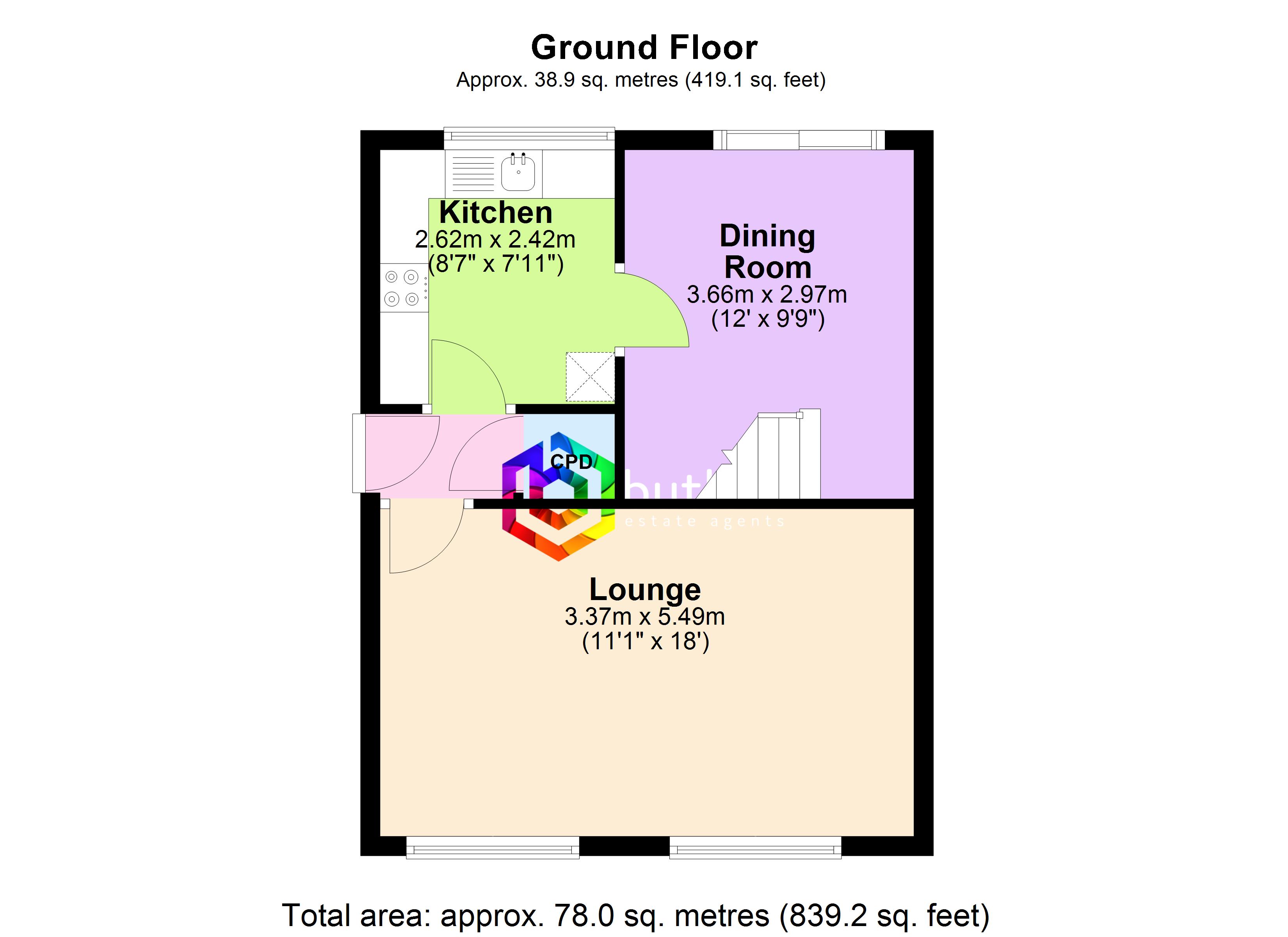The side door opens into the Hall which has doors to the Lounge and Kitchen. There is a useful under-stairs storage cupboard.