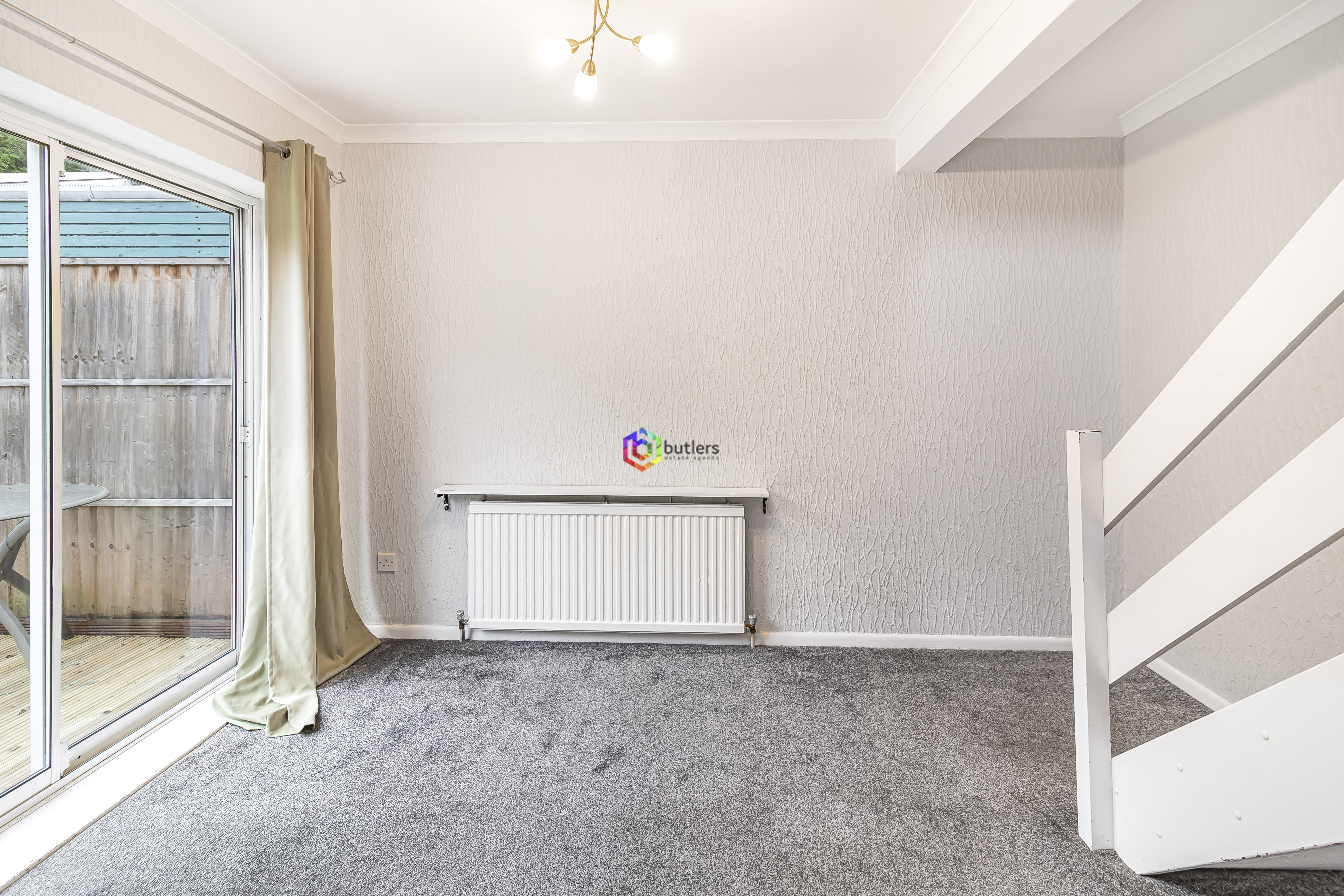 This reception room has stairs to the first floor and a sliding patio door providing access to the rear decked area. A doorway leads through to the adjacent kitchen.
