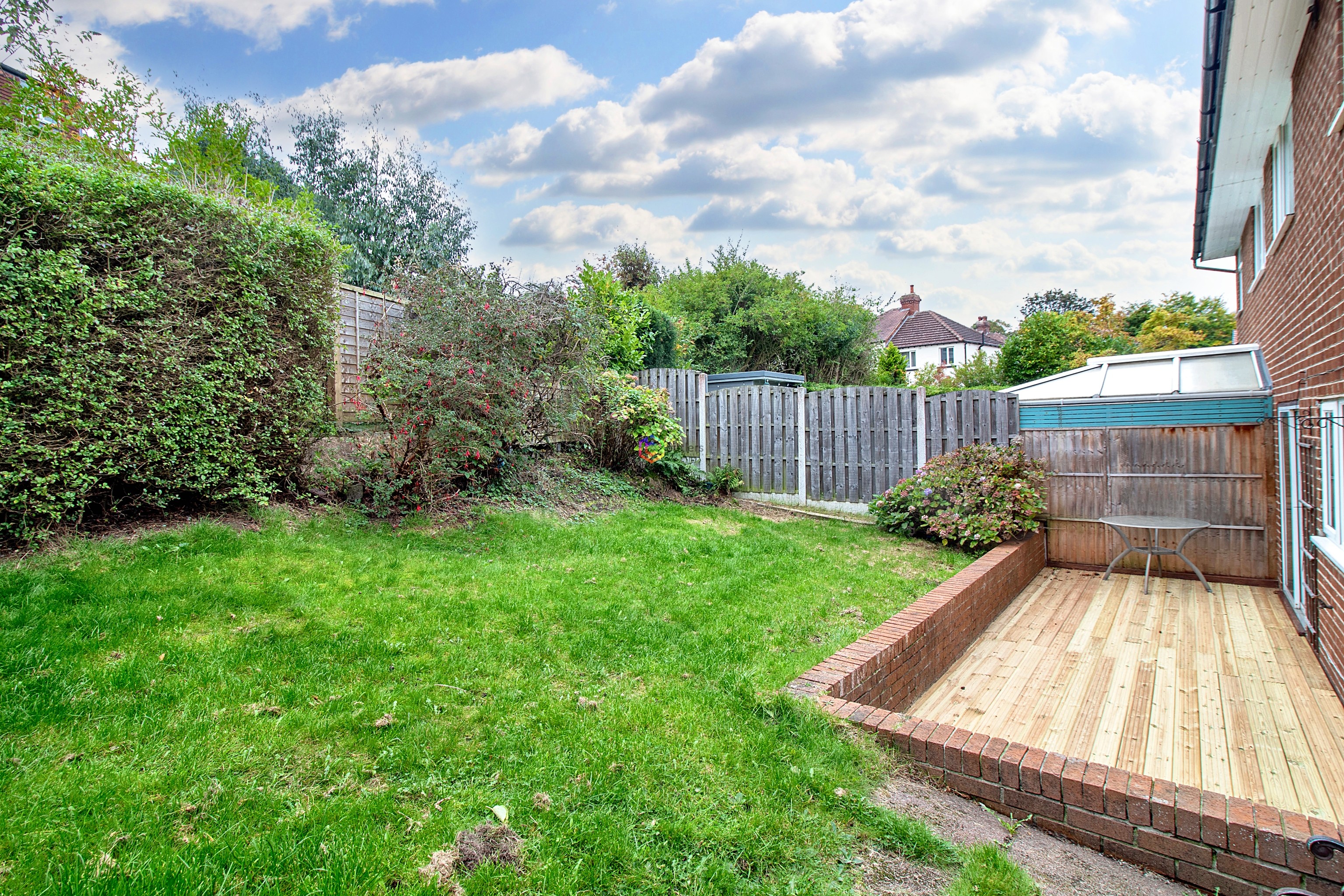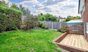The driveway leads you to a gate, through which the side of the house has a shed and a block-paved area for your bikes, etc. A recently installed decked area leads around to the rear of the house, providing a great space for entertaining. The path leads you to the lawned areas, which are surrounded by plants and shrubs, providing a great space for play or gardeners alike.