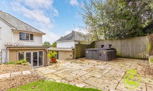 The rear garden is on two levels and has been landscaped to provide various seating areas together with lawn areas and raised flower bed borders. The garden is almost completely secluded due to mature trees and has a hard standing area at the top of the garden which can be utilised for the storage of a boat/canoe/wood (this can also be accessed via Cherry Close). There is a double length garage and driveway which provides off road parking for several cars/vehicles/boat/motor home.