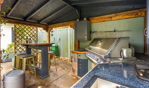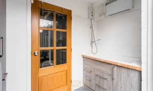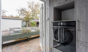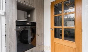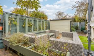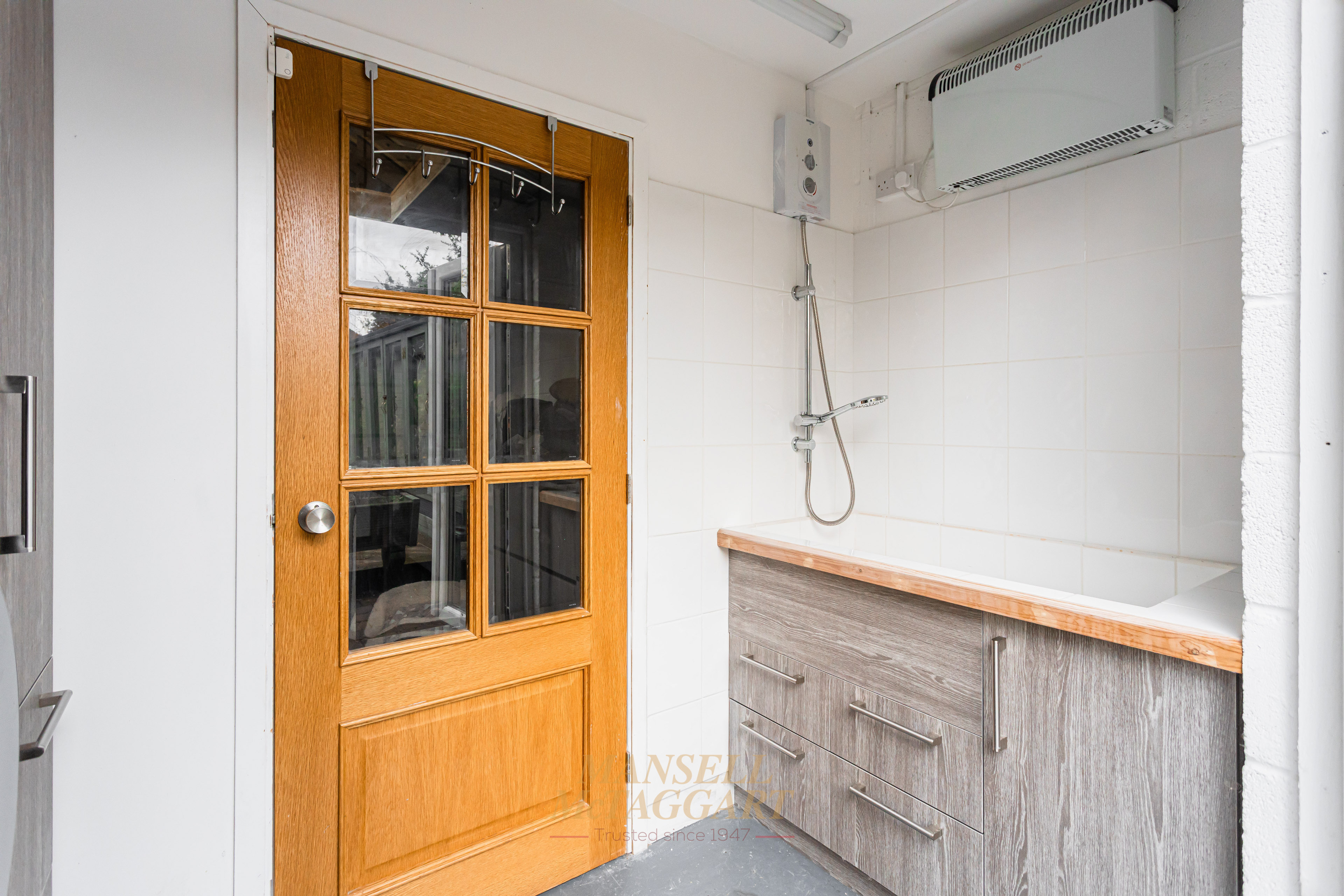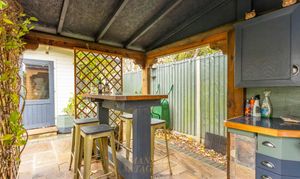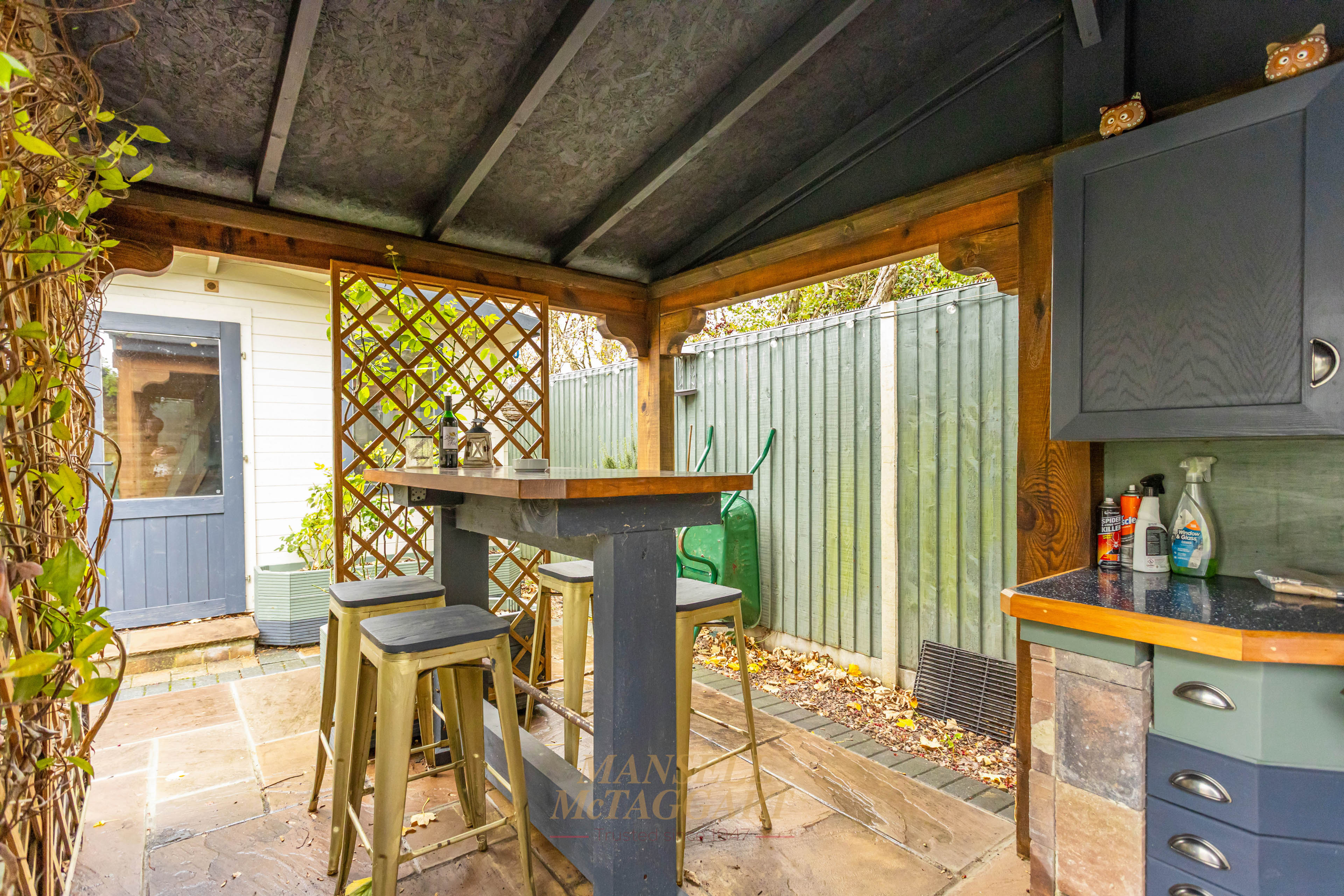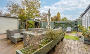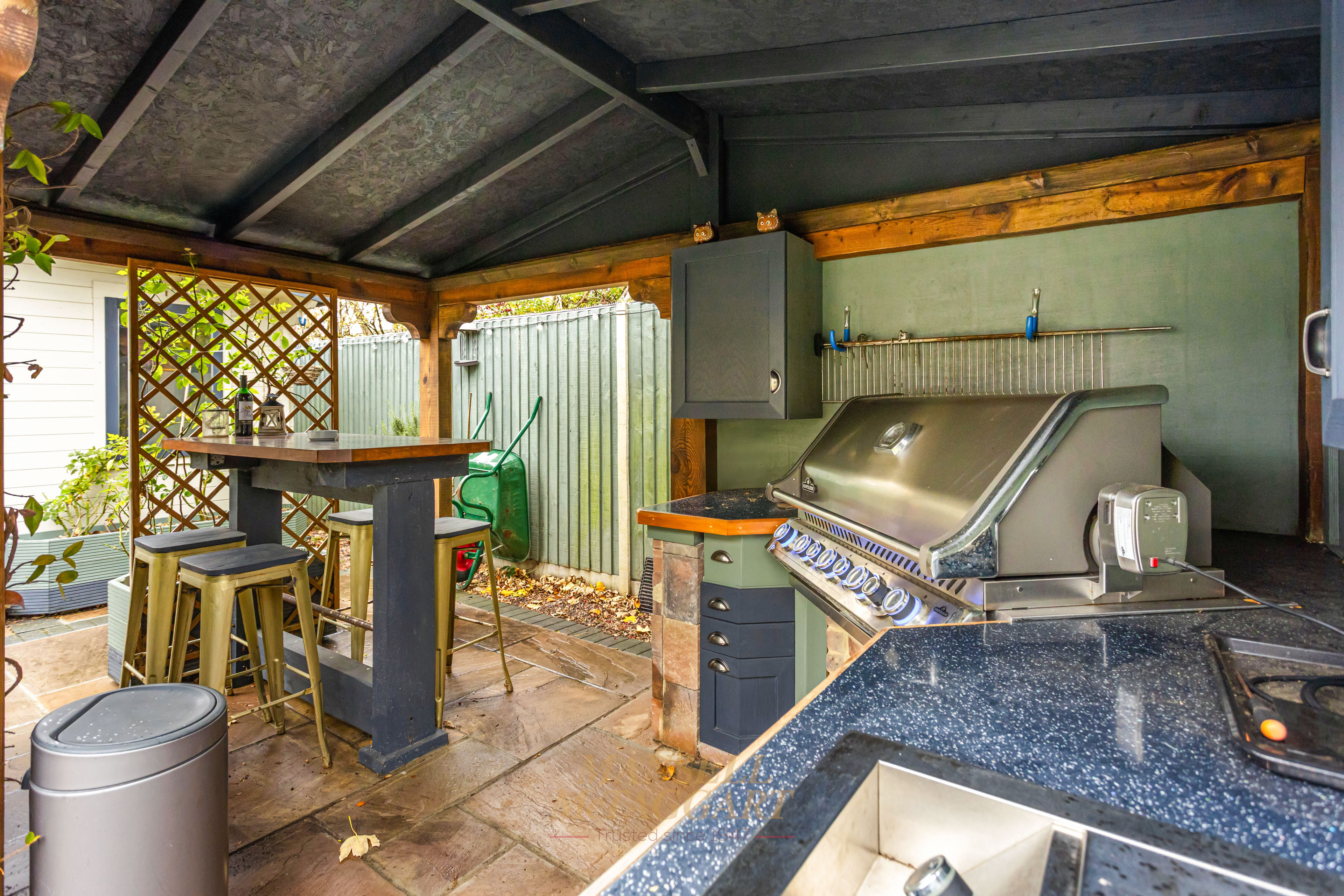 Outside to rear, is the private garden. This has been meticulously landscaped by the current owners with tasteful patio and decked areas, alongside low maintenance astro turf. There is also a large garden room, barbeque area and fitted greenhouse units completing the tranquil space. This also has access to the utility room and garage. here there is a large sink/ dog washing station, white goods and the garage which is primed for a conversion currently housing storage units and electric up and over doors.