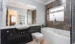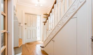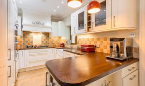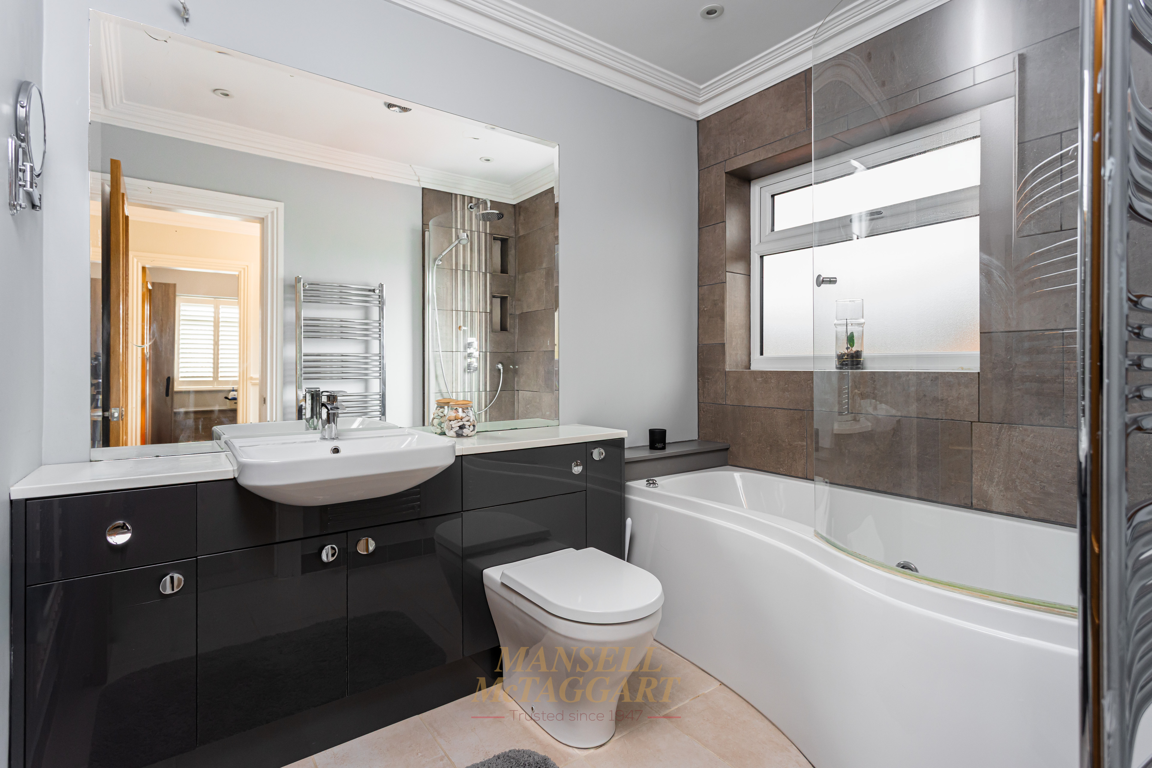 Upstairs, a spacious landing gives access to 3 good sized bedrooms, 2 very large rooms with king size beds and fitted units, and the last a small double. The family bathroom has been refitted to a high standard, being fully tiled and hosting modern sanitaryware.