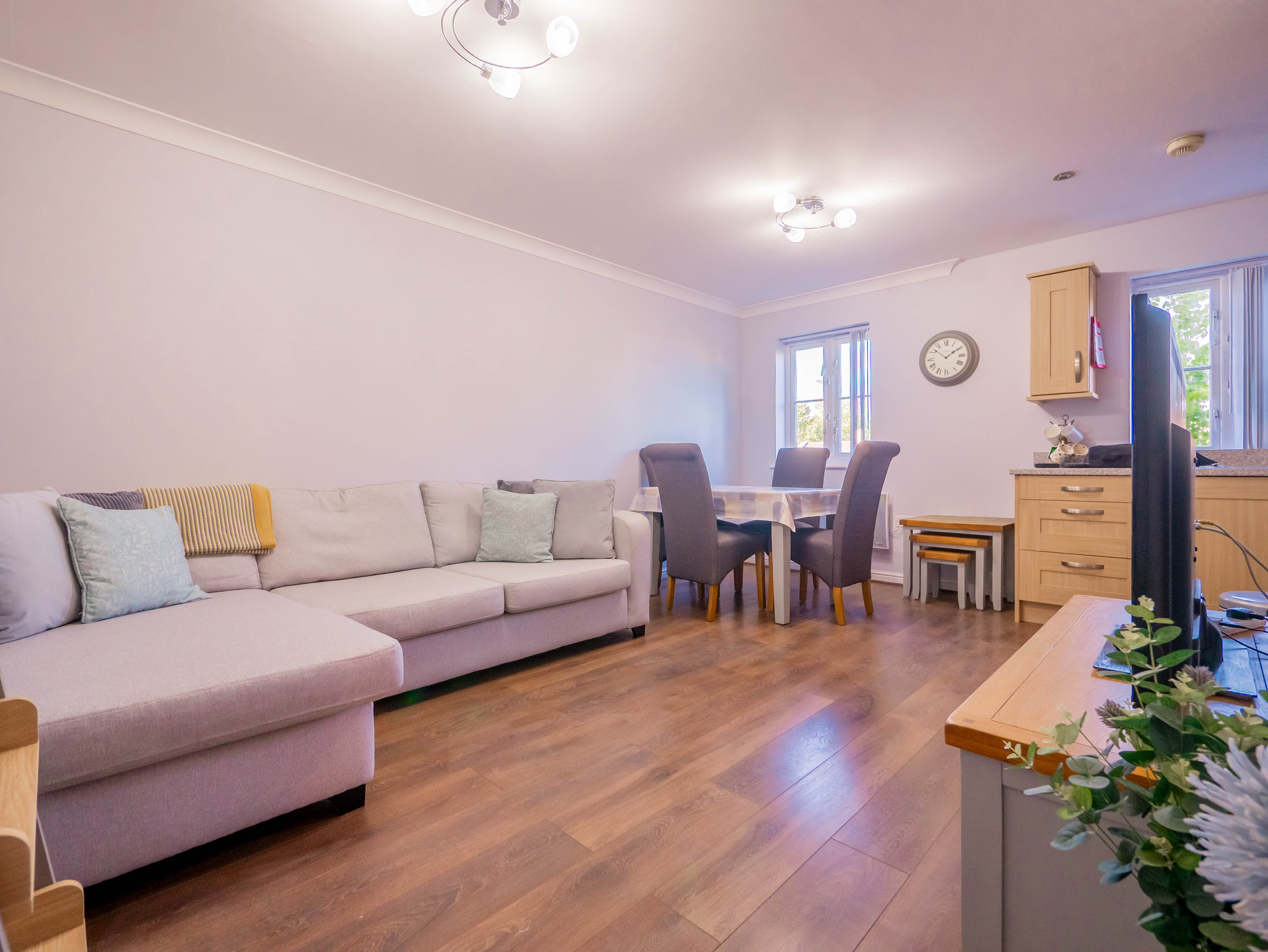 Step inside to a bright, open-plan living space where the lounge, kitchen, and dining area flow effortlessly together – ideal for entertaining or unwinding after a long day. Large windows and a neutral décor create a light-filled, airy atmosphere throughout.