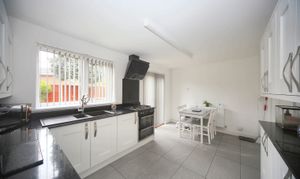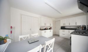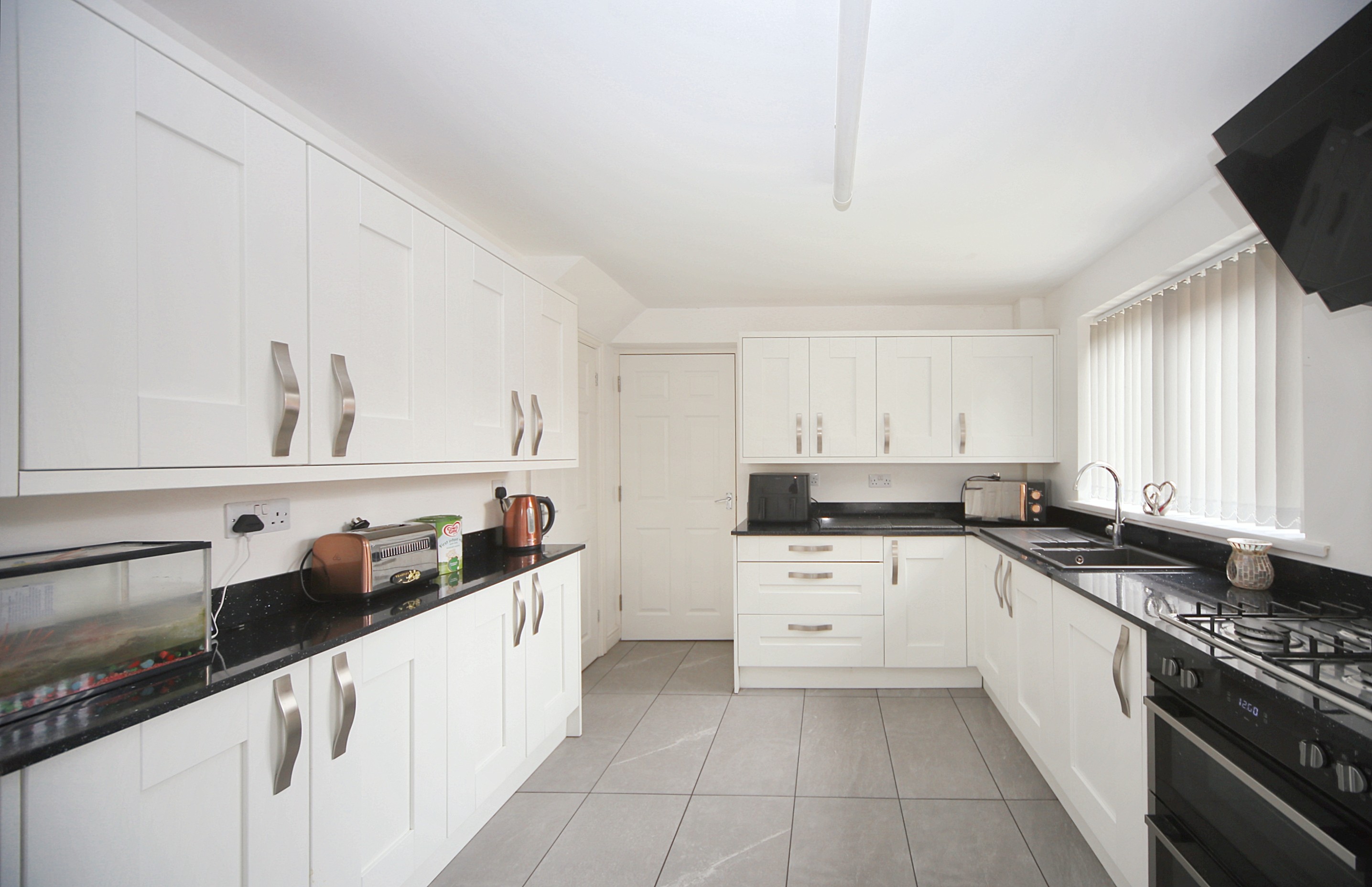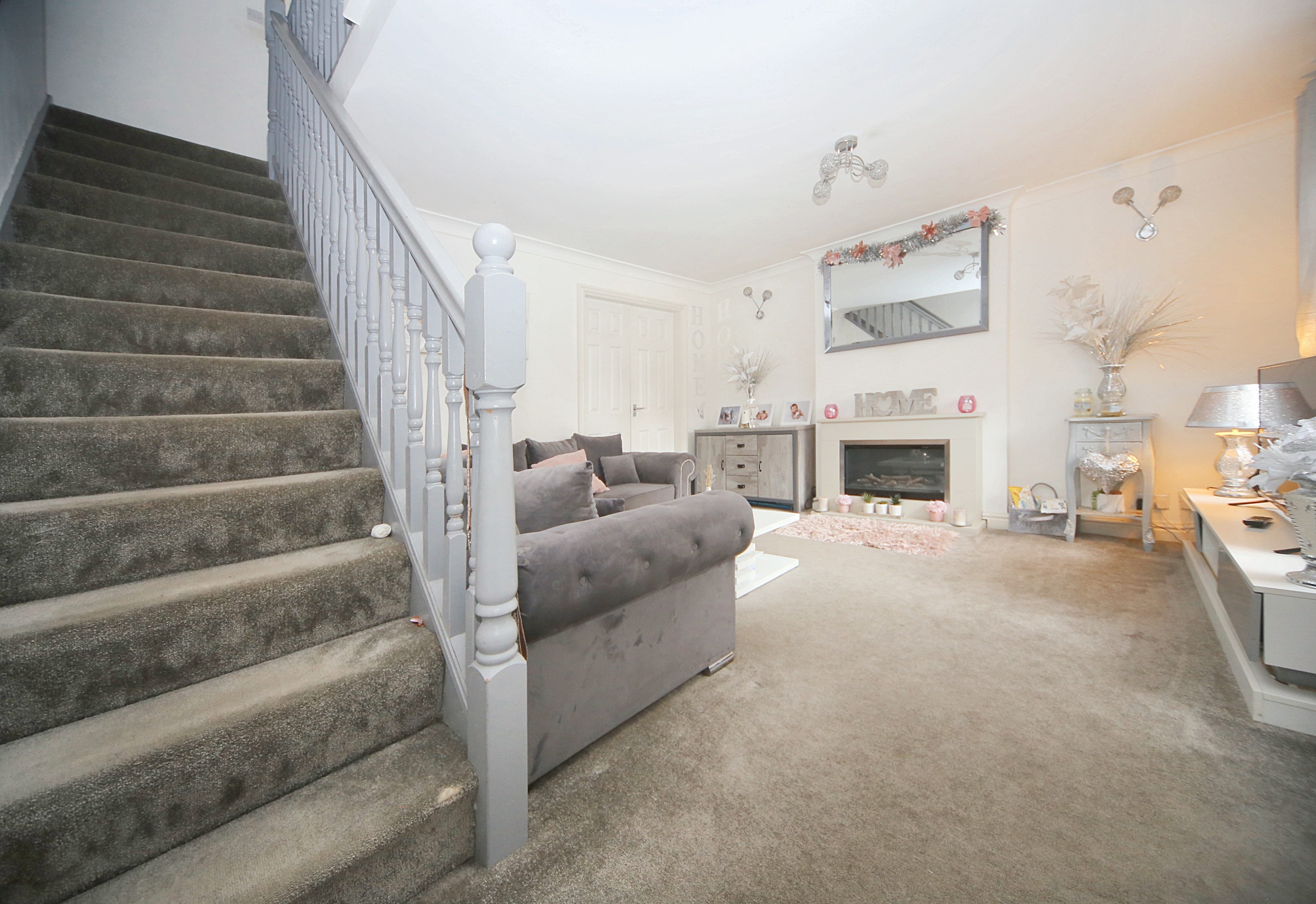 The ground floor comprises a bright and comfortable lounge with an electric fireplace, creating a cosy and inviting space. The modern kitchen with dining area is well proportioned and finished to a high standard, ideal for family meals and entertaining. A large separate utility room adds extra convenience and storage.