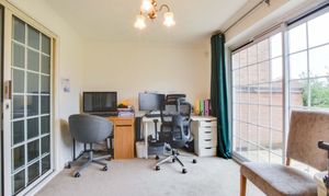 Double-glazed patio door to the rear elevation and one to the front elevation, carpet, and a radiator.