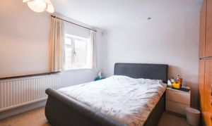 Two double glazed windows to the front elevation, carpet flooring, and a radiator.