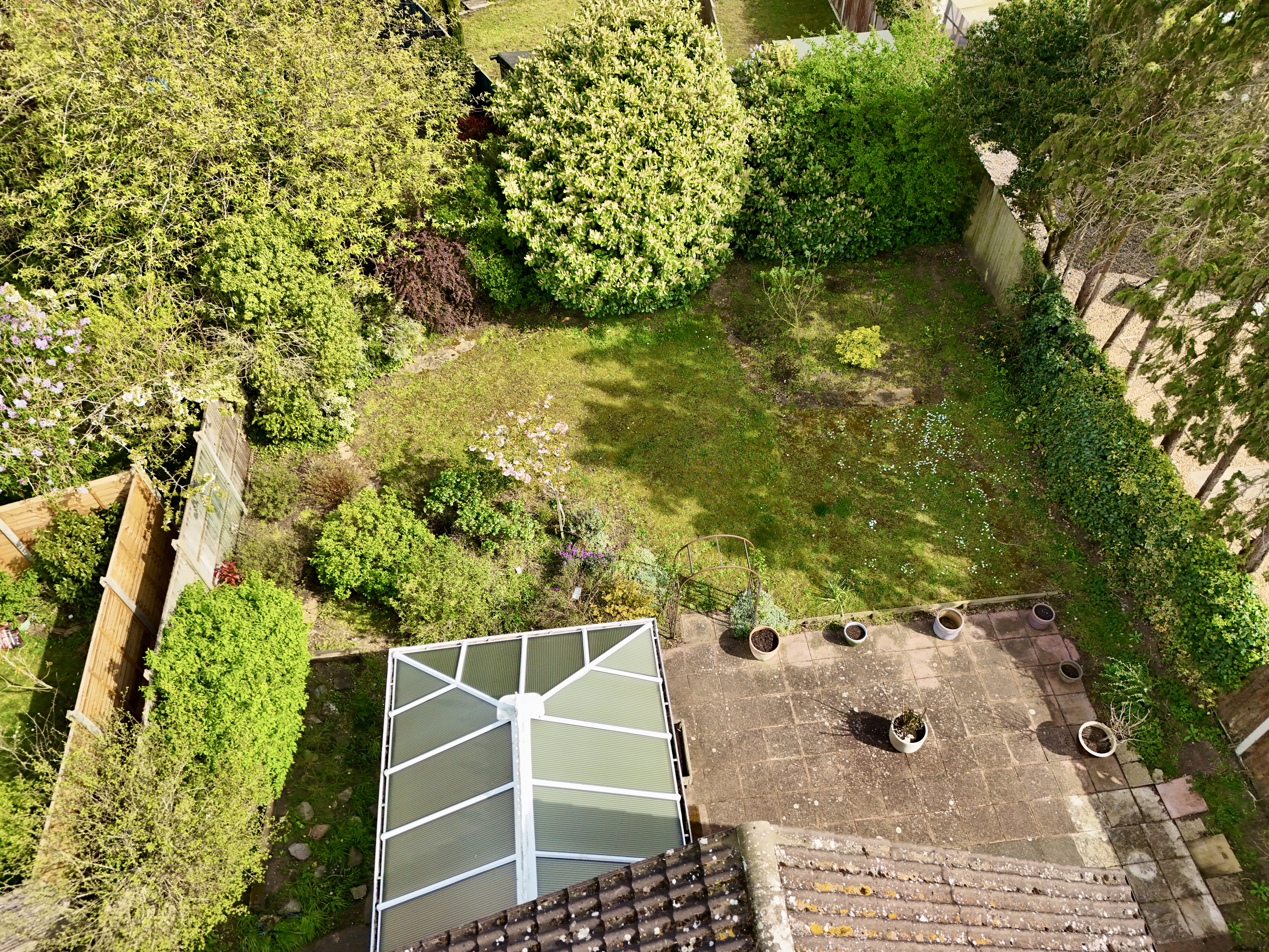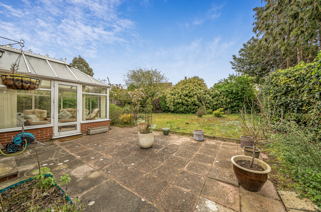 Outside is where this one really comes into its own. The garden wraps around the property, creating a good sense of space and privacy, with a large patio area, lawn, and a mix of established trees, shrubs and planting that give it a really settled feel.