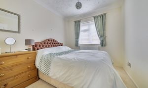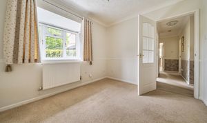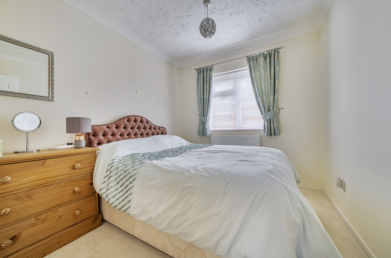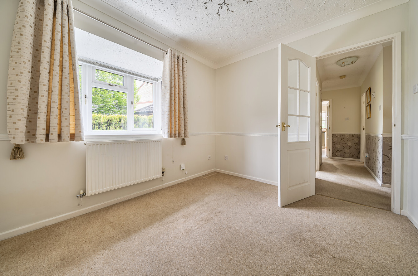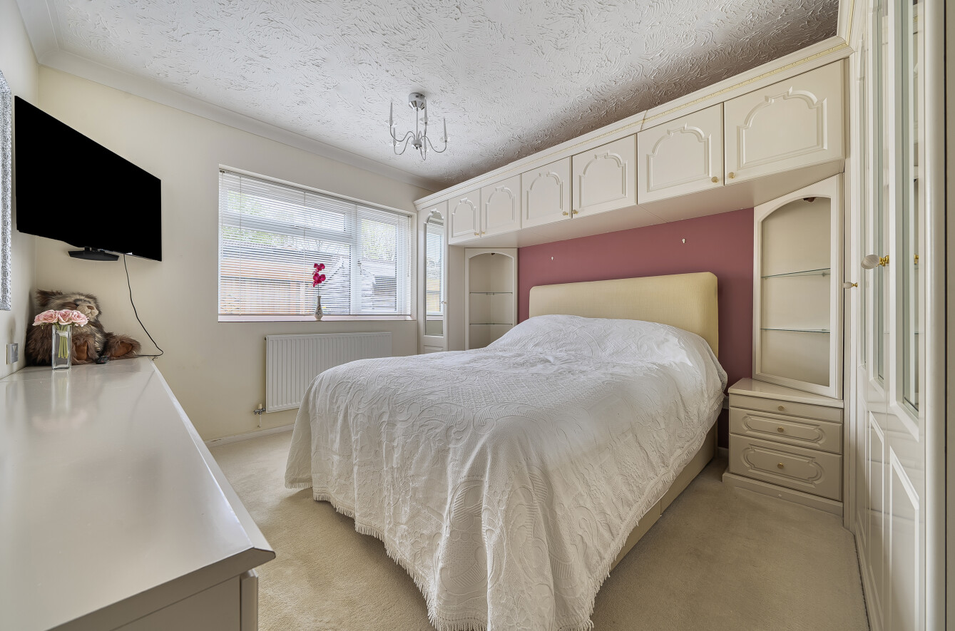 The layout is flexible depending on how you want to live. There are three double bedrooms, although the front bedroom, with its box bay window, is often used as a separate dining room or second reception if that suits better. The principal bedroom sits quietly to the rear and includes fitted furniture, while the second bedroom also benefits from built-in wardrobes.