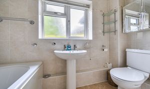 - Modern bathroom with shower over bath and separate cloakroom