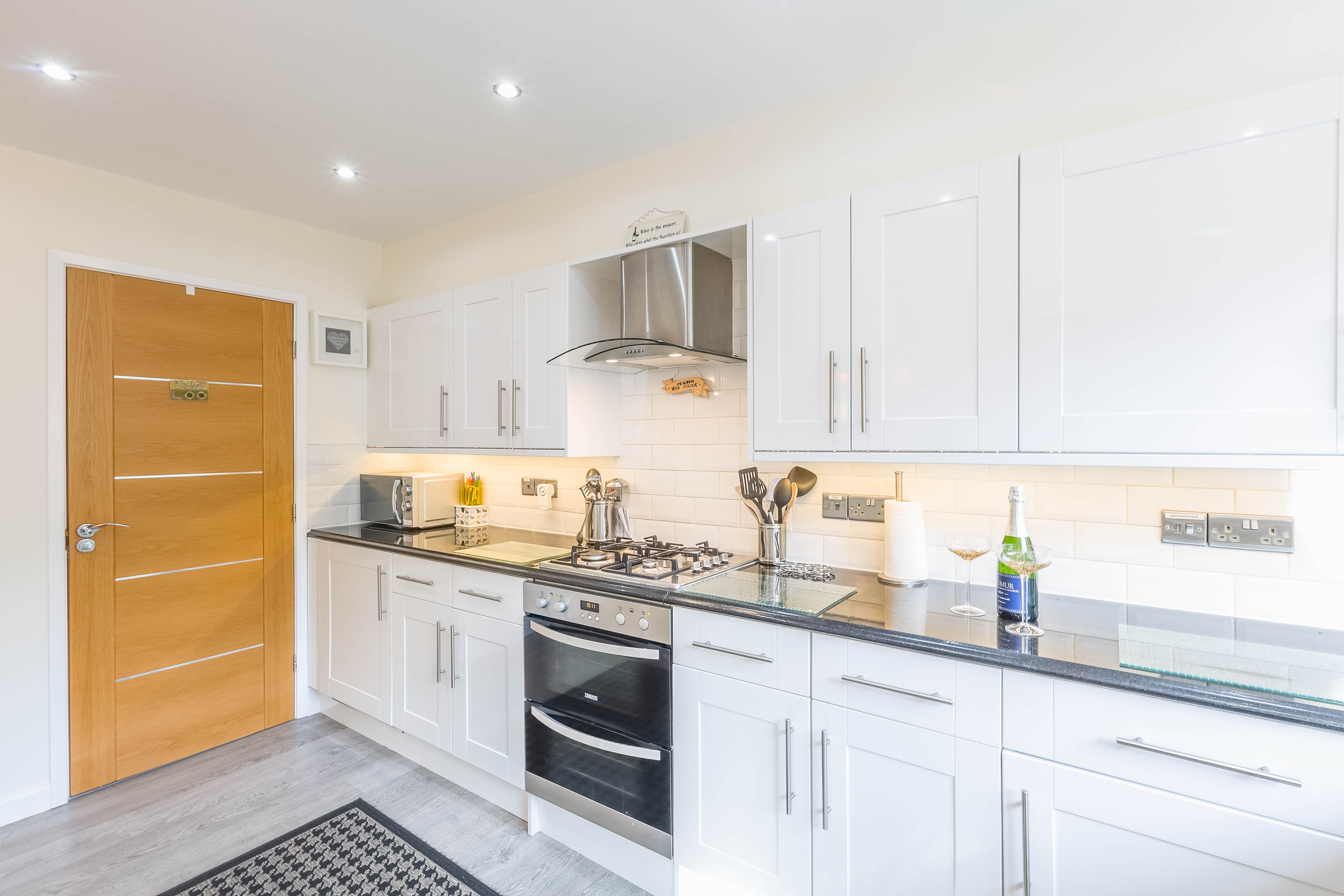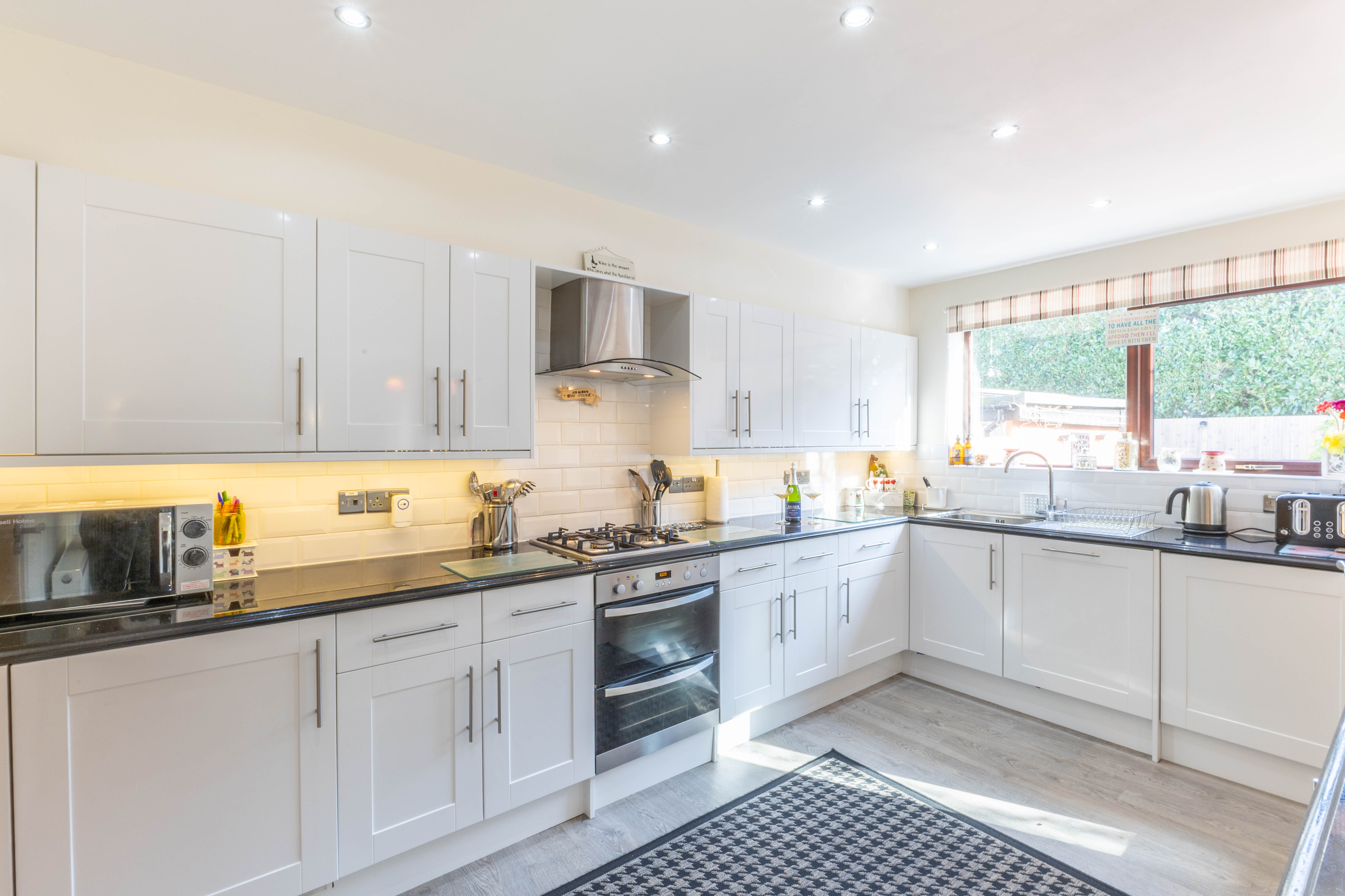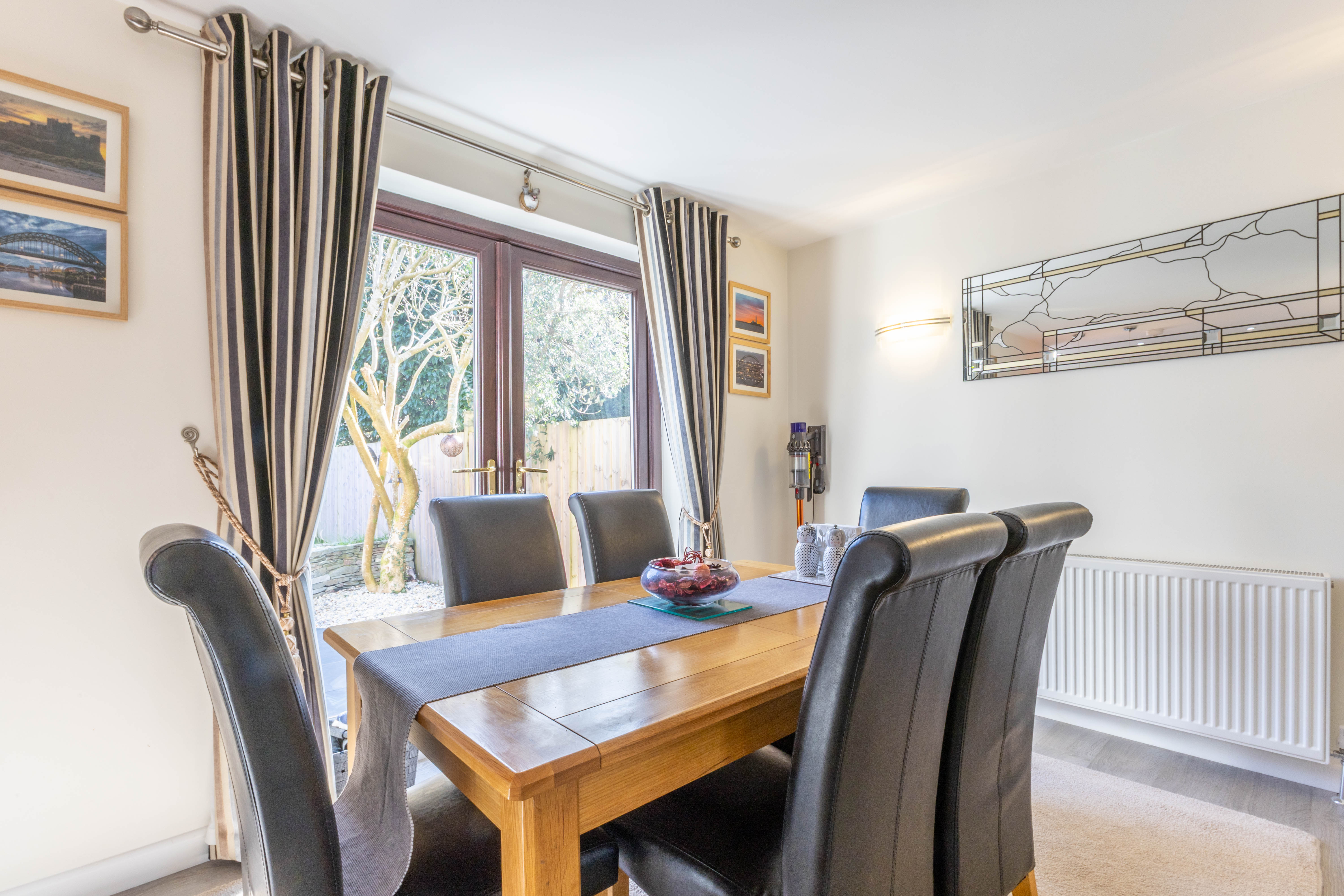 The accommodation is well proportioned and presented throughout. A generous living room opens onto a balcony, perfectly positioned to take in the views. The dining room provides a great space for entertaining and connects through to the modern kitchen, which is fitted with integrated appliances and offers good storage and workspace. Upstairs there are three well sized bedrooms, all of which are comfortable doubles, along with a contemporary four piece bathroom and a separate shower room, providing flexibility for family living or visiting guests.