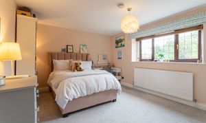 On the first floor is the elegant main bedroom boasting built in wardrobes a fitted en-suite shower room and wonderful views over the garden and countryside beyond.
