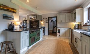 At the heart of the home lies an open plan fitted kitchen/dining room, complete with a central island and range-style cooker, an ideal space for family life and entertaining.