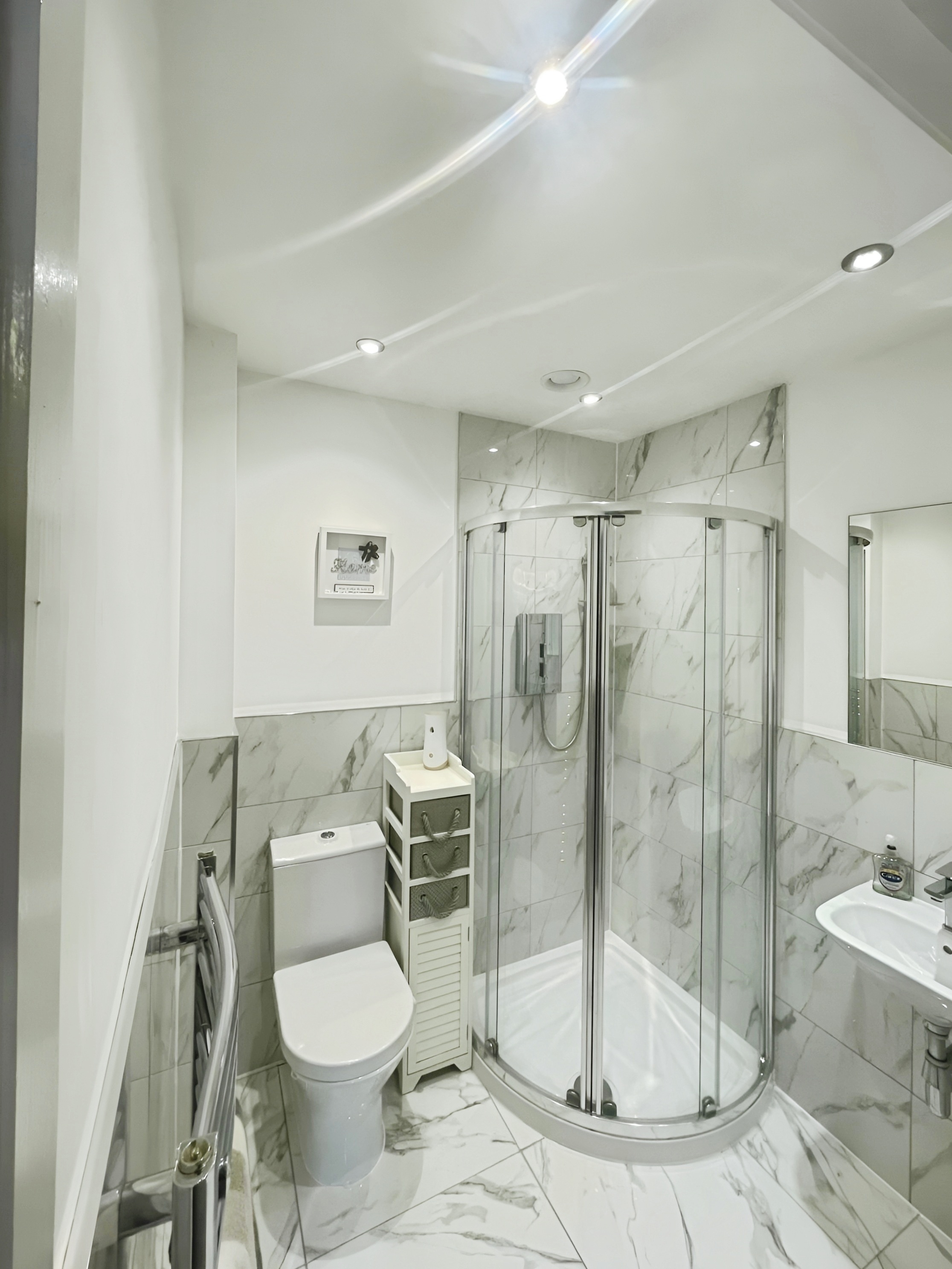 Upstairs, there are three generously sized double bedrooms, each with built-in storage, along with a contemporary family bathroom featuring a shower over the bath. The property also benefits from generous storage on both floors.